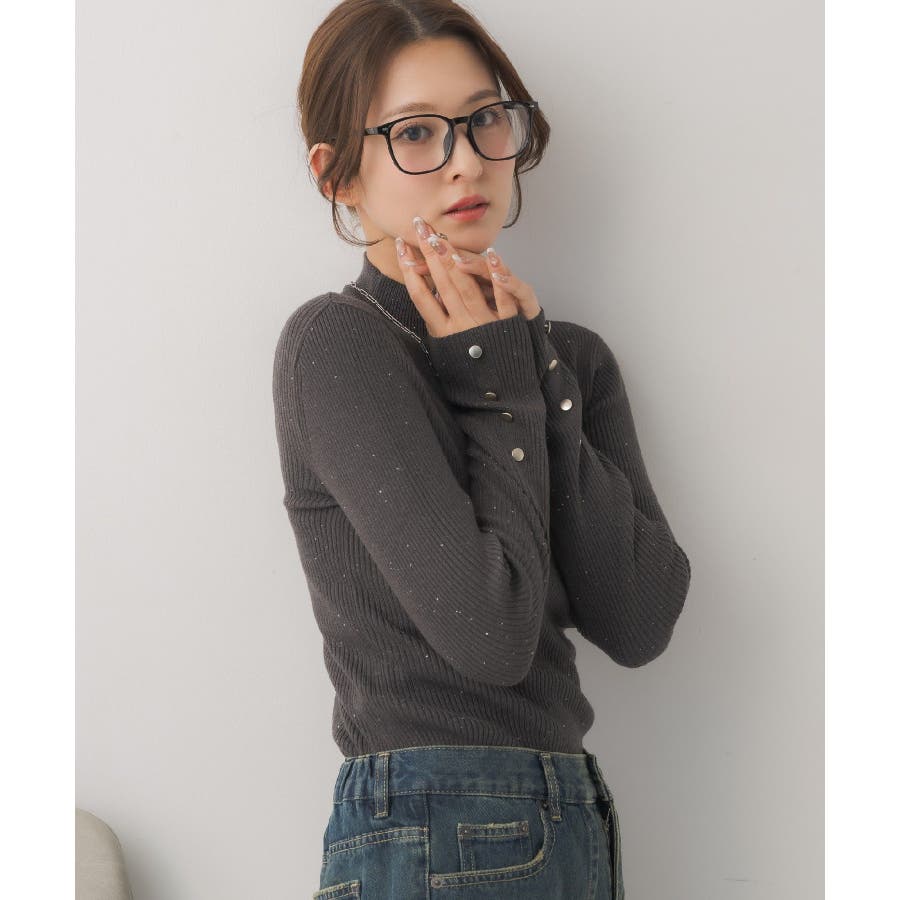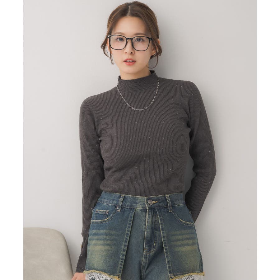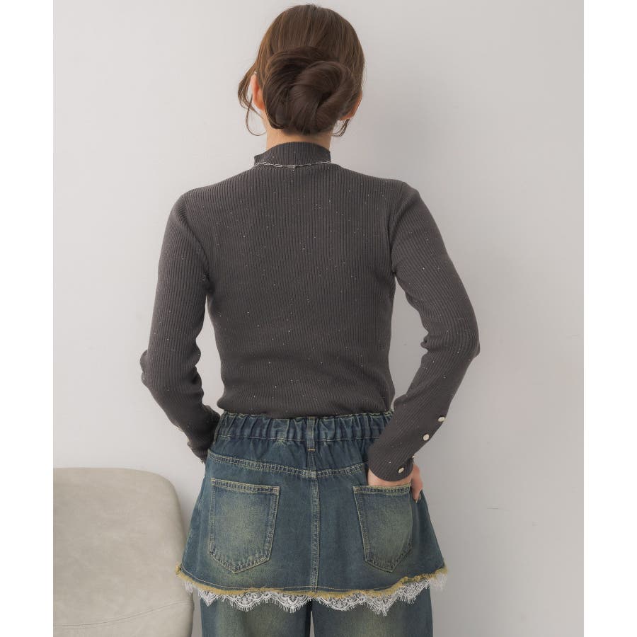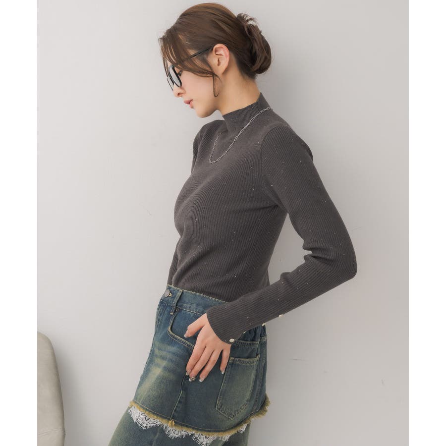 【WEB限定カラー追加】スパンコールリブハイネックNT