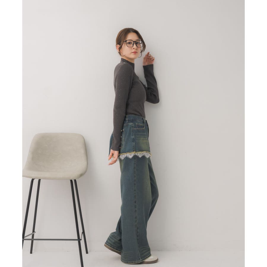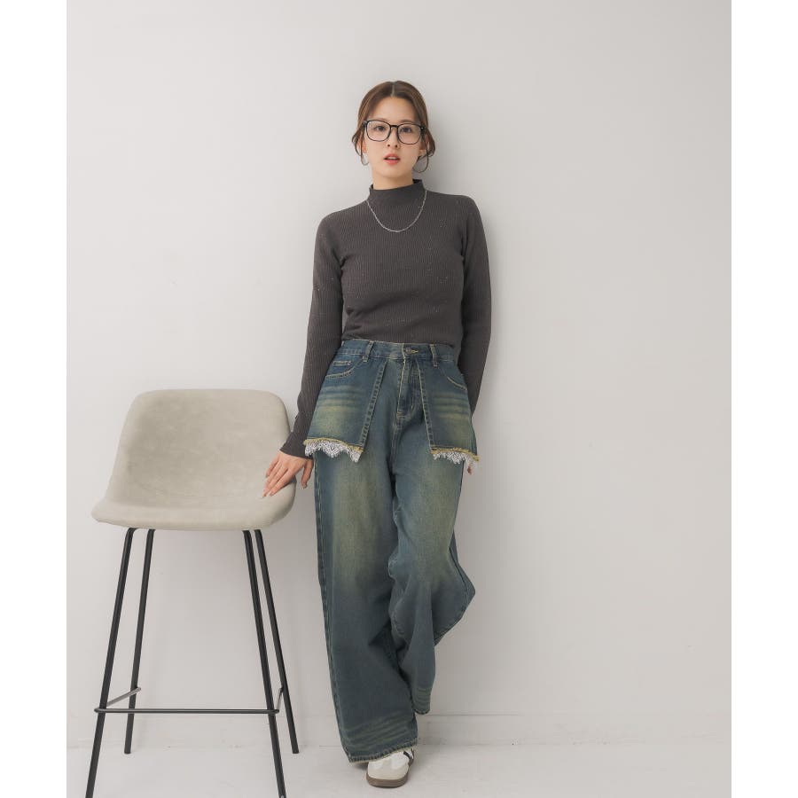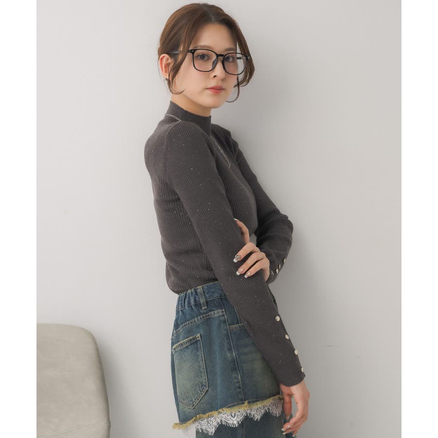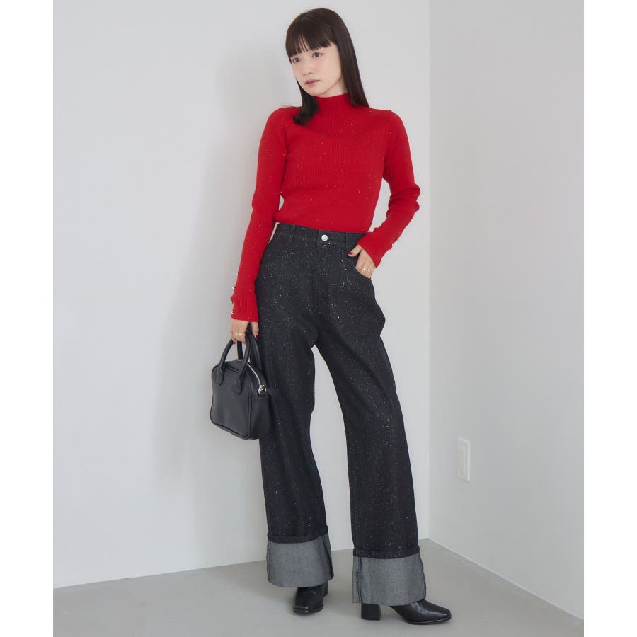 【WEB限定カラー追加】スパンコールリブハイネックNT