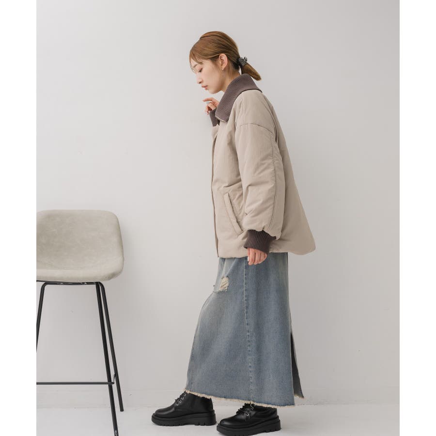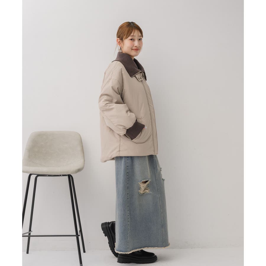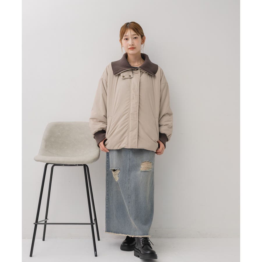 〈リブ襟がアクセントになる中綿ジャケット〉▼デザイン昨年も大好評をいただいたモンスタージャケット。今年はミディアム丈になって登場しました♪ゆったりとしたシルエットなので、厚手のニットやカーディガンの上からでも嵩張らずに着用できます◎リブでデザインされた襟はかなり大きめで、スタンドネックにすればマフラーいらずの暖かさ!▼コーディネートシンプルなデザインで、着回し力抜群!カラーもベーシックな3色展開で、デニムパンツや柄のスカートなどどんなボトムとも合わせやすいアイテムです。------------------------------生地感:厚め伸縮性:なし透け感:なし裏地:ある------------------------------▼ブランド紹介RETRO GIRL (レトロガール)自分らしい“ベーシックアイテム”と新しい自分の”トレンドアイテム”が見つかる場所今らしいファッションを楽しむ女性のためのブランド#中綿 #ブルゾン #モンスタージャケット #アウター▼注意事項※撮影環境やモニター環境によって実際の商品とお色味が多少異なってみえる場合がございます。品番:RW557121T001 / 品名:襟リブショートモンスター