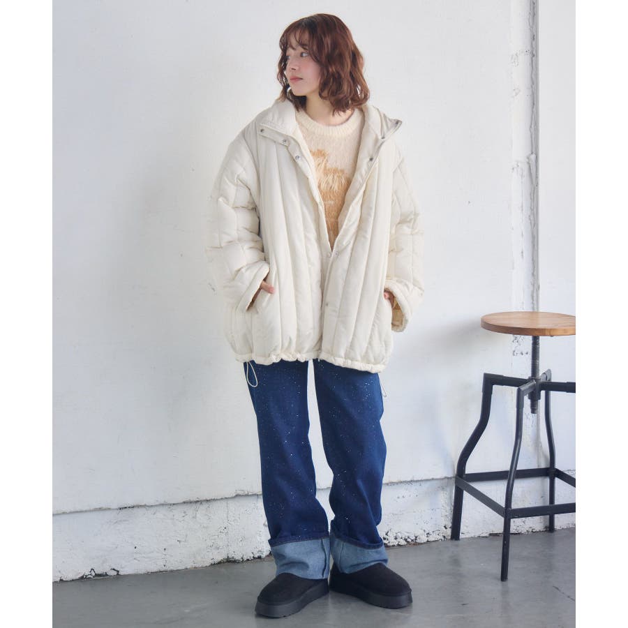 <キルティングデザインがカジュアルな中綿アウター>▼デザイン毎年大人気なキルティングアウター。しっかり中綿が入っていて、暖かいので冬にピッタリです。ハイネックになっていて、防寒力も高いアイテム。フロント部分はZIPとボタンで着脱可能◎裾は絞れるドロストデザインになっているので、シルエットのアレンジも可能です。▼コーディネートパンツ合わせでカジュアルに着こなして頂くのがおすすめ!ロングスカートやワンピースと合わせると一気に女性らしいコーデに!暖かいのにモコつかないので、ママさんにもおすすめ♪------------------------------生地感:普通伸縮性:なし透け感:なし裏地:あり------------------------------▼ブランド紹介RETRO GIRL (レトロガール)自分らしい“ベーシックアイテム”と新しい自分の”トレンドアイテム”が見つかる場所今らしいファッションを楽しむ女性のためのブランド#中綿アウター #キルティング #ビックシルエット #アウター #冬アウター▼注意事項※撮影環境やモニター環境によって実際の商品とお色味が 多少異なってみえる場合がございます。品番:RW580021T005 / 品名:中綿キルティングJK