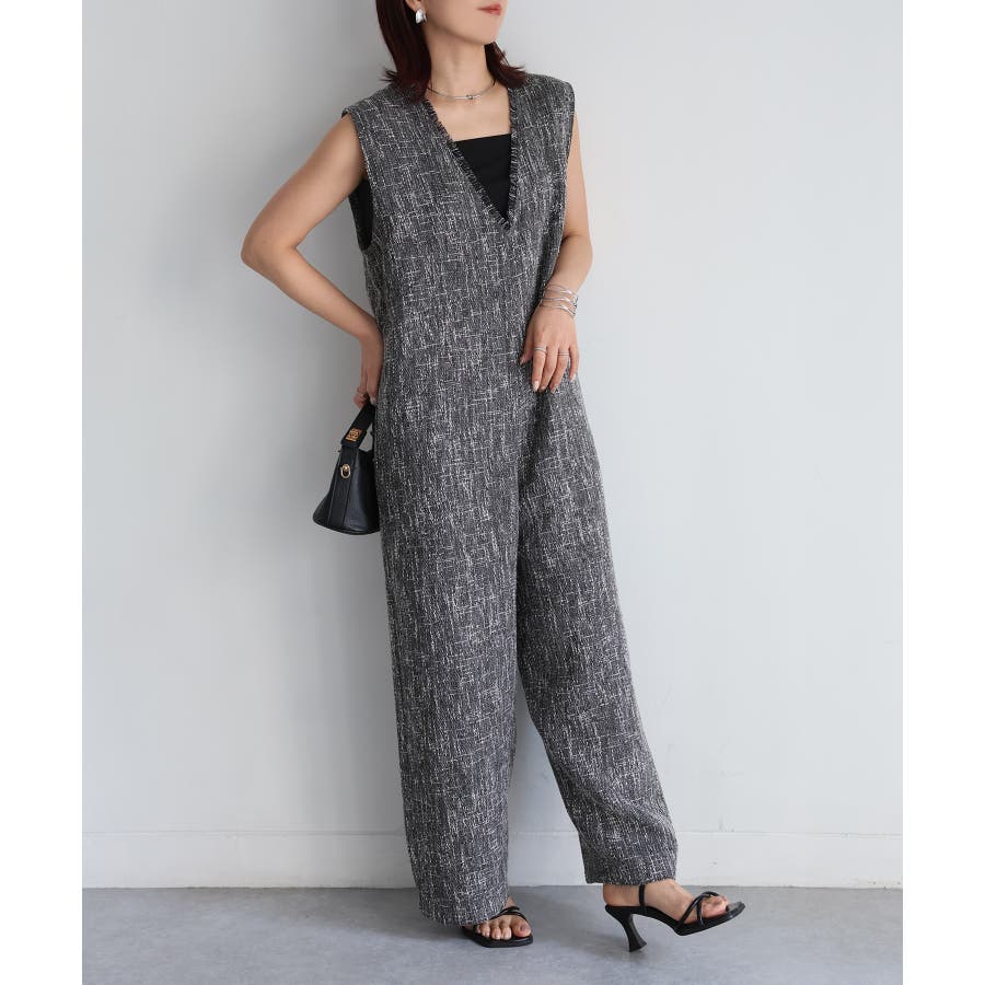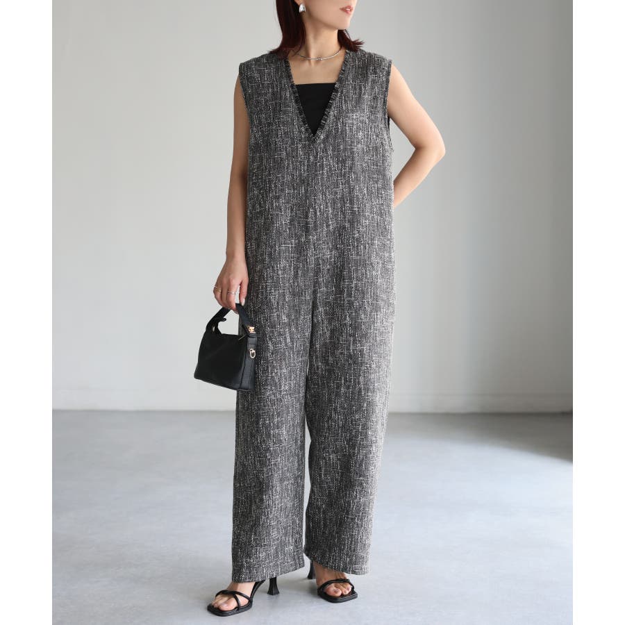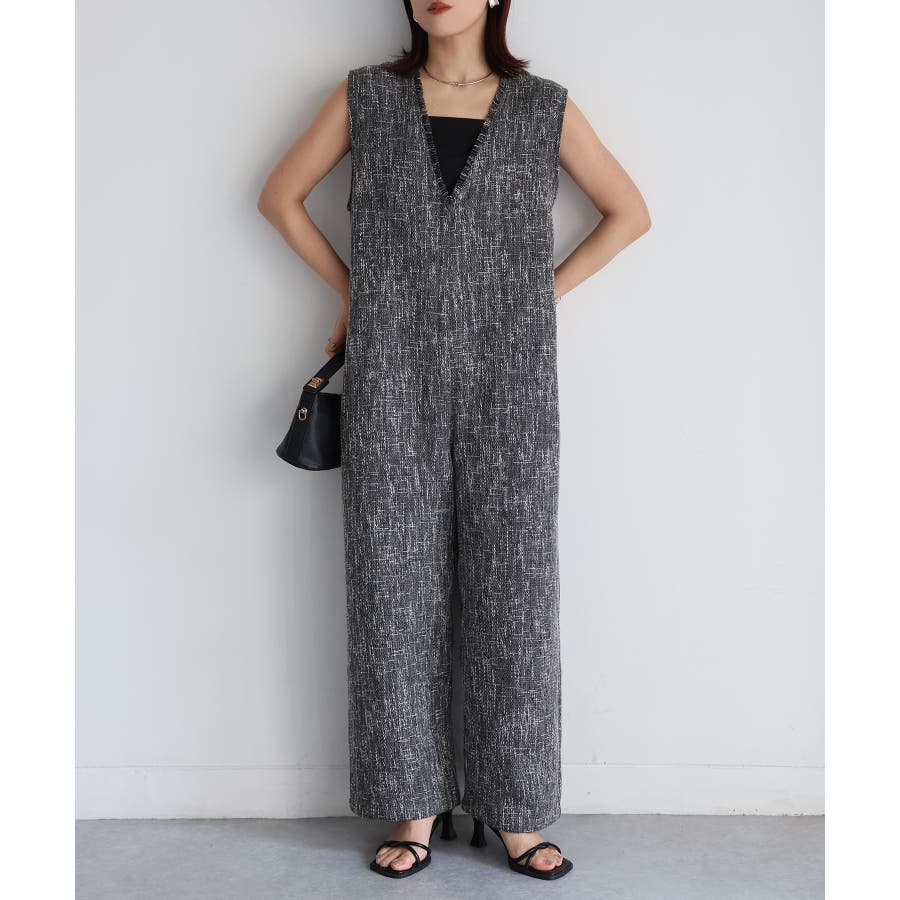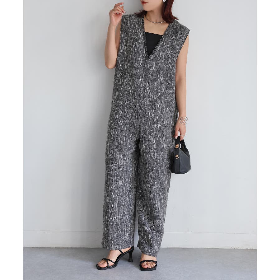 大人っぽいツイード素材がシーズンライクなVネックサロペット♪