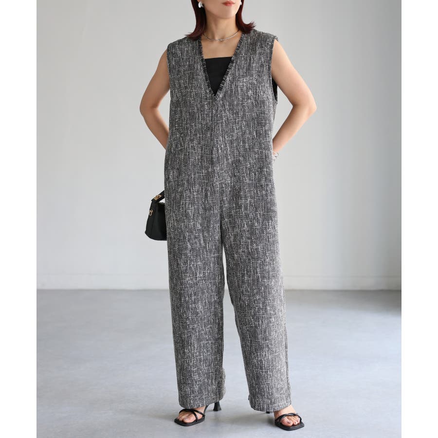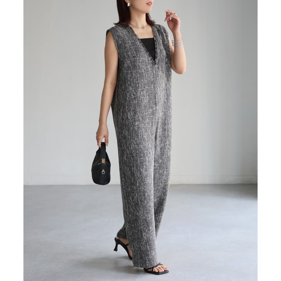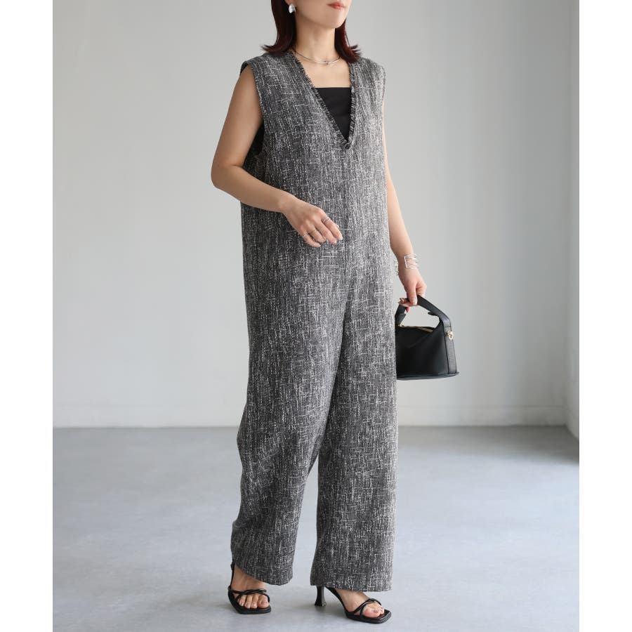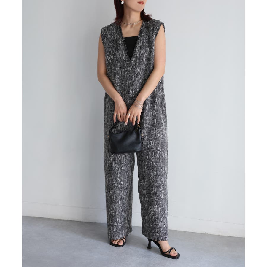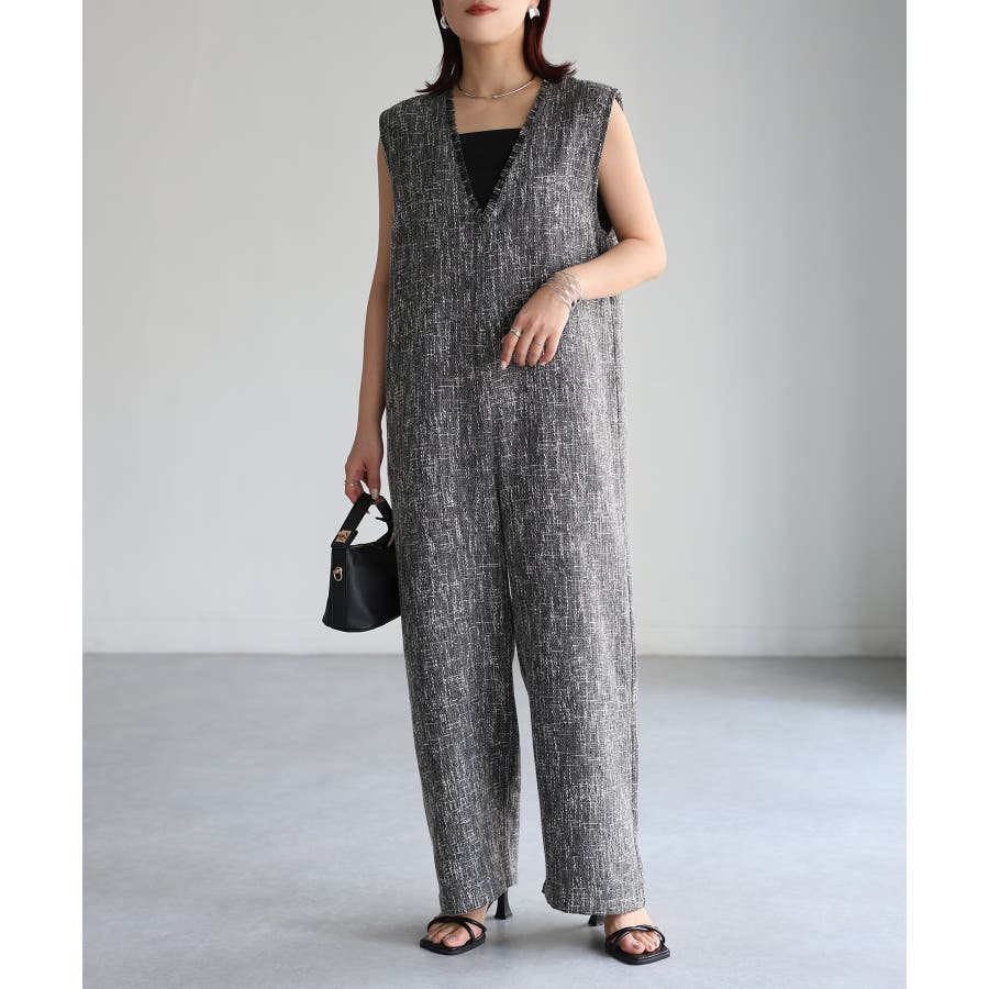 大人っぽいツイード素材がシーズンライクなVネックサロペット♪