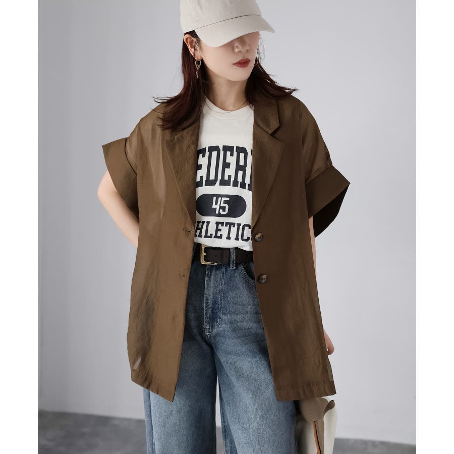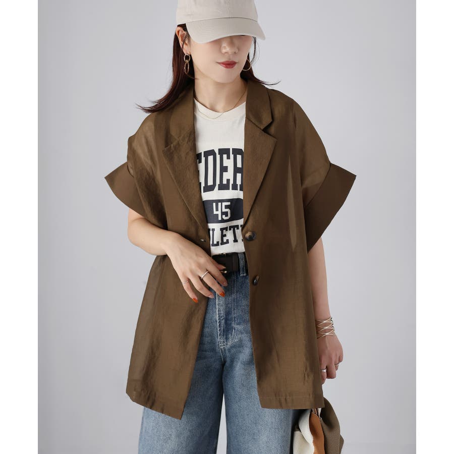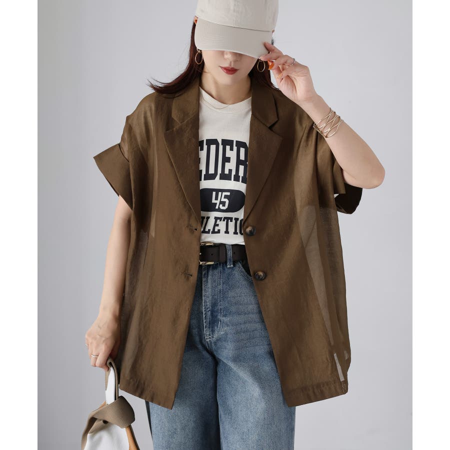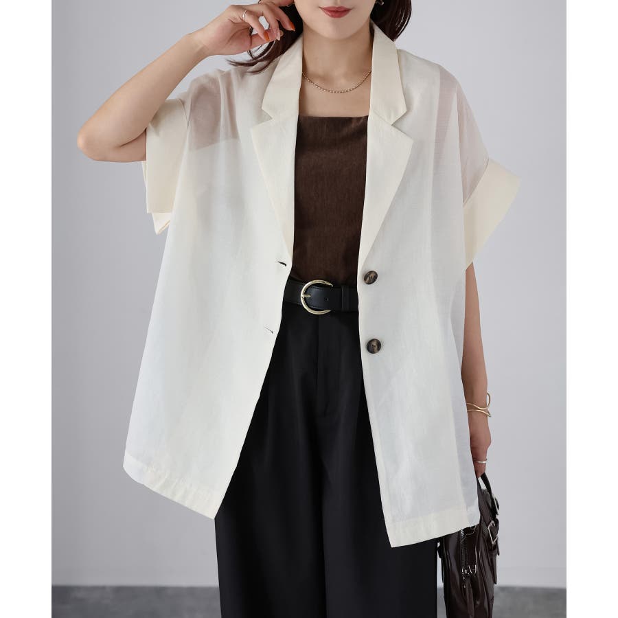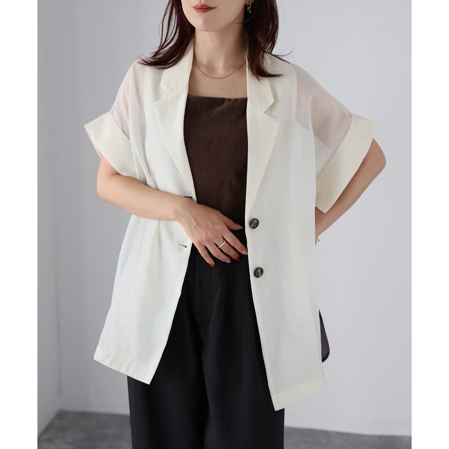 さらっと羽織れる、大人の半袖シアージャケット♪