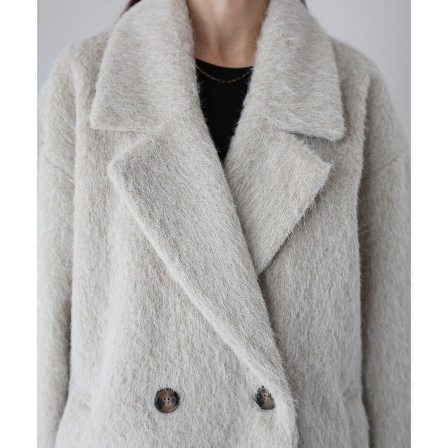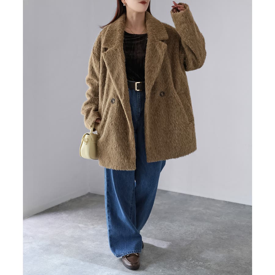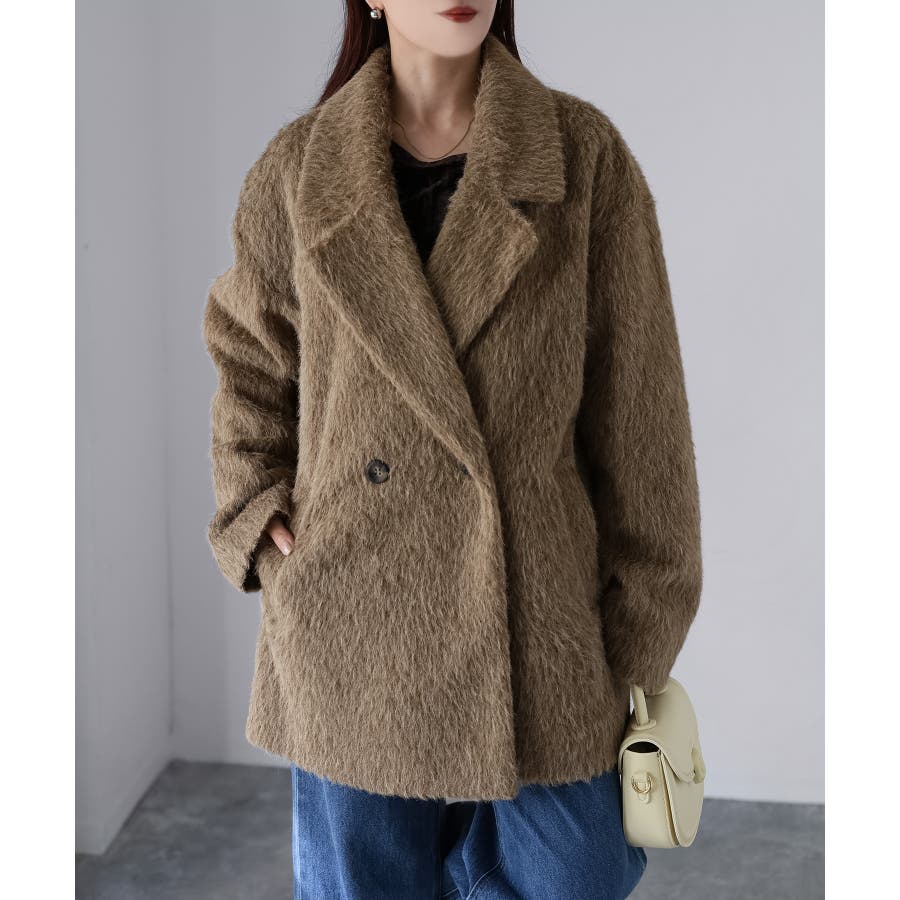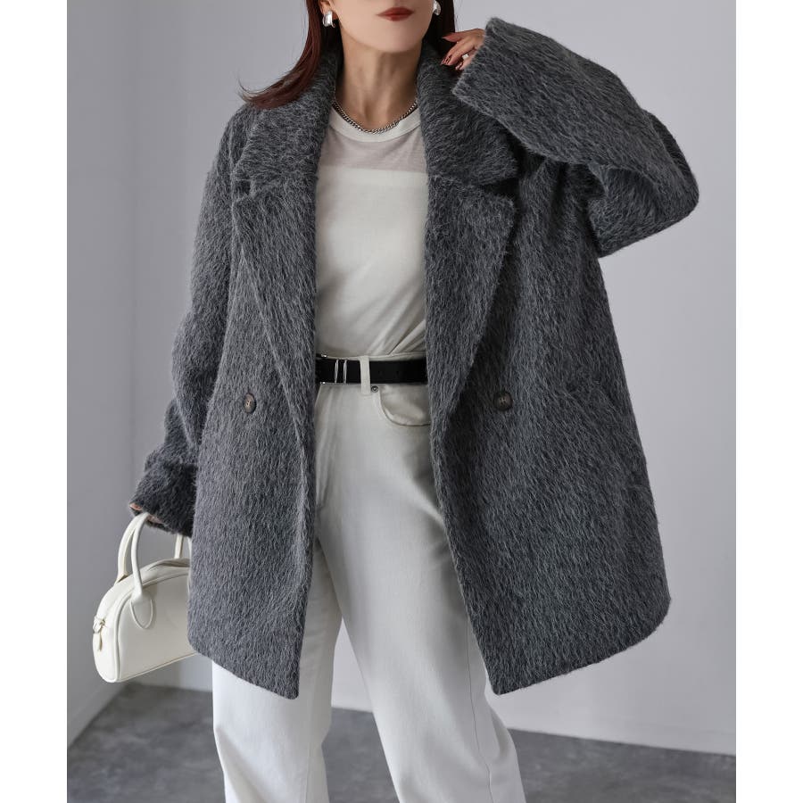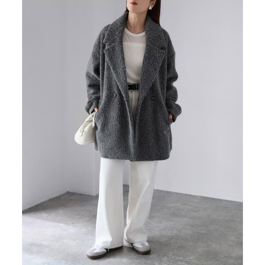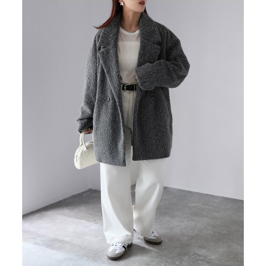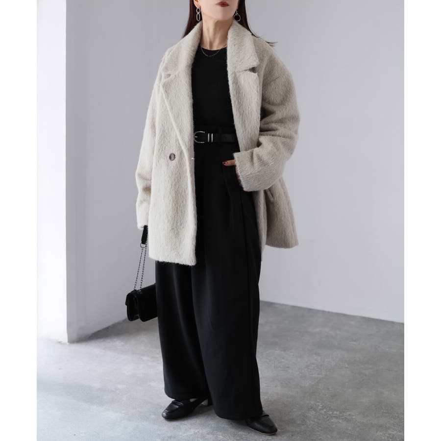 柔らかく起毛したシャギー素材が、シンプルながらも存在感のある着こなしを叶えてくれる、ミドル丈のダブルジャケットコートが登場しました。