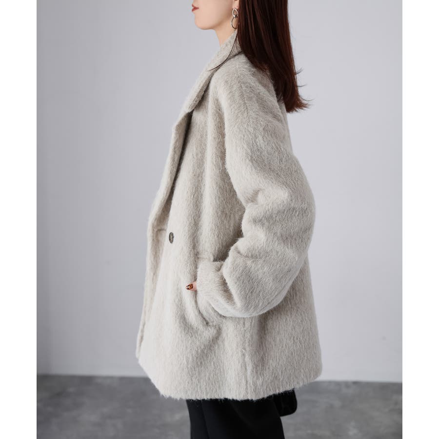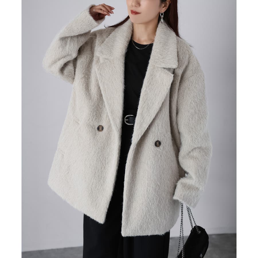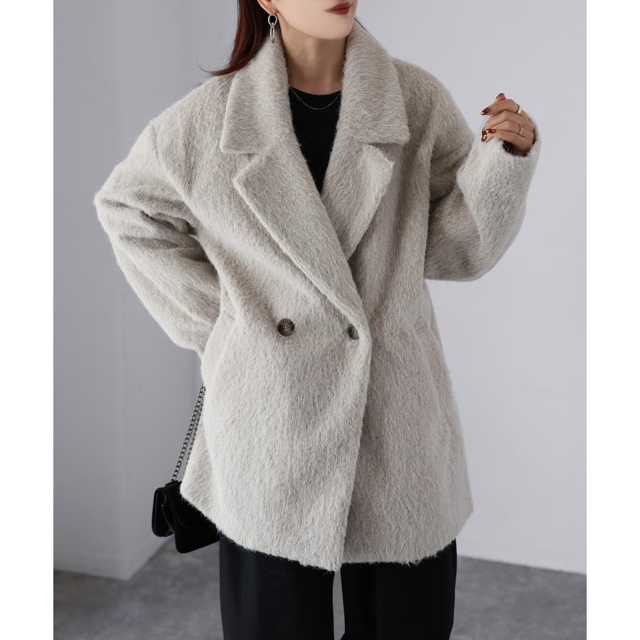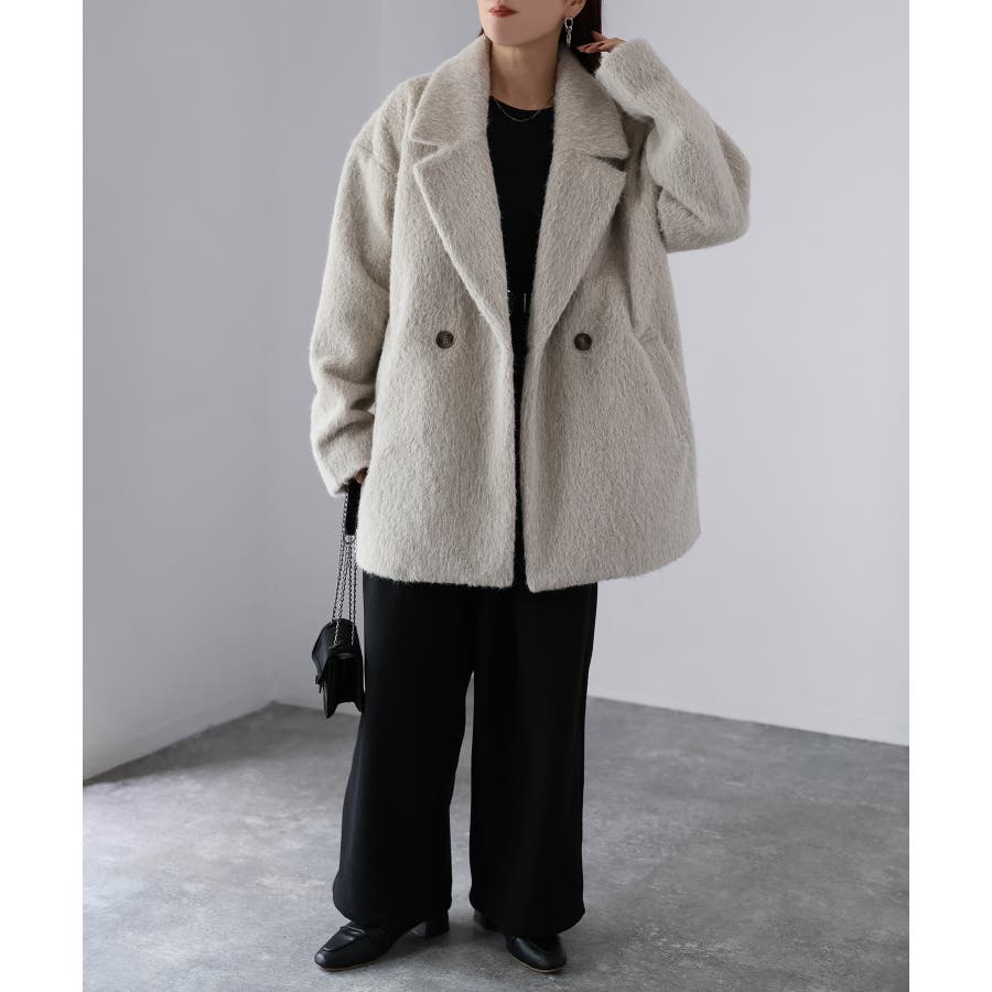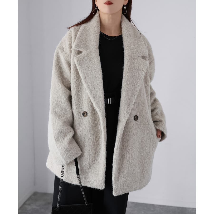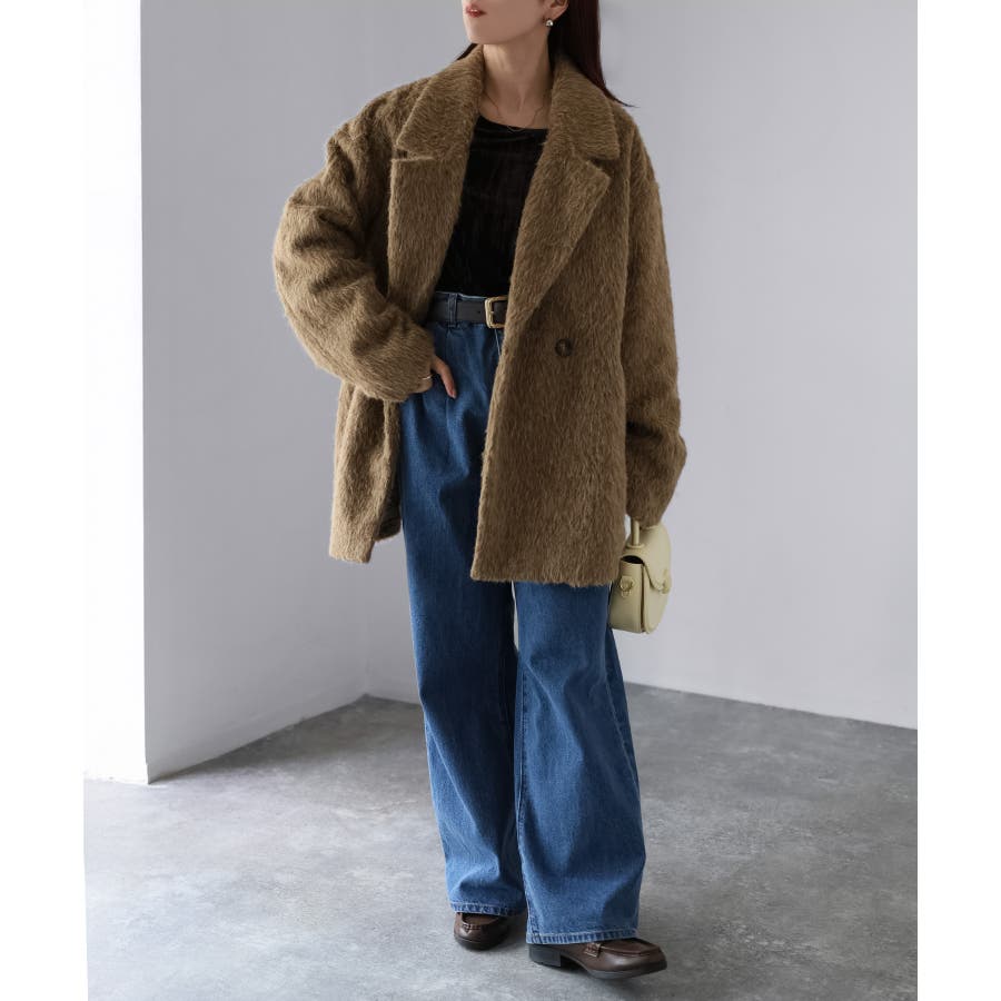 柔らかく起毛したシャギー素材が、シンプルながらも存在感のある着こなしを叶えてくれる、ミドル丈のダブルジャケットコートが登場しました。