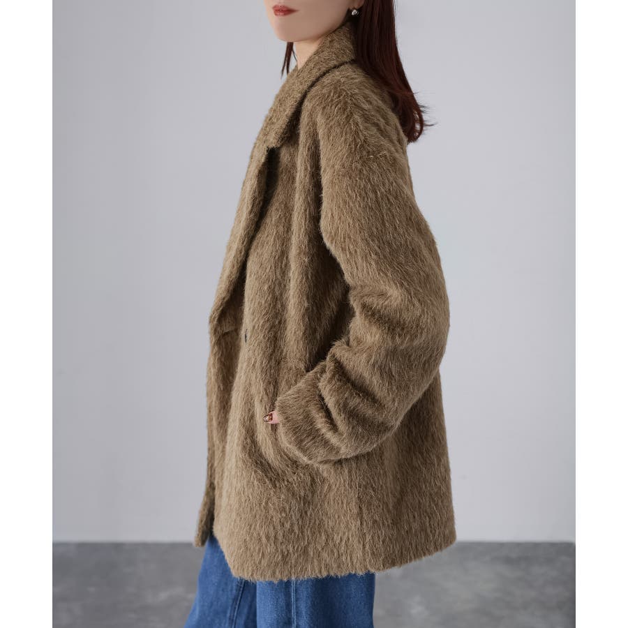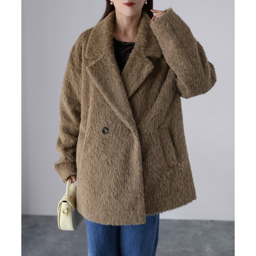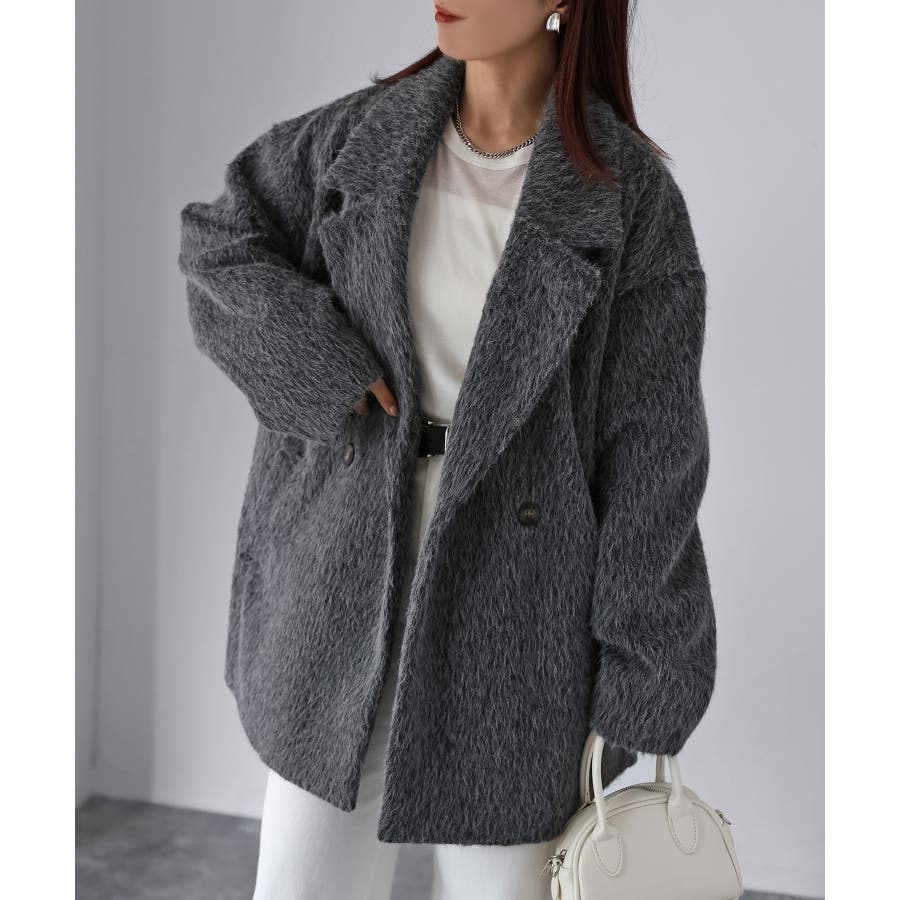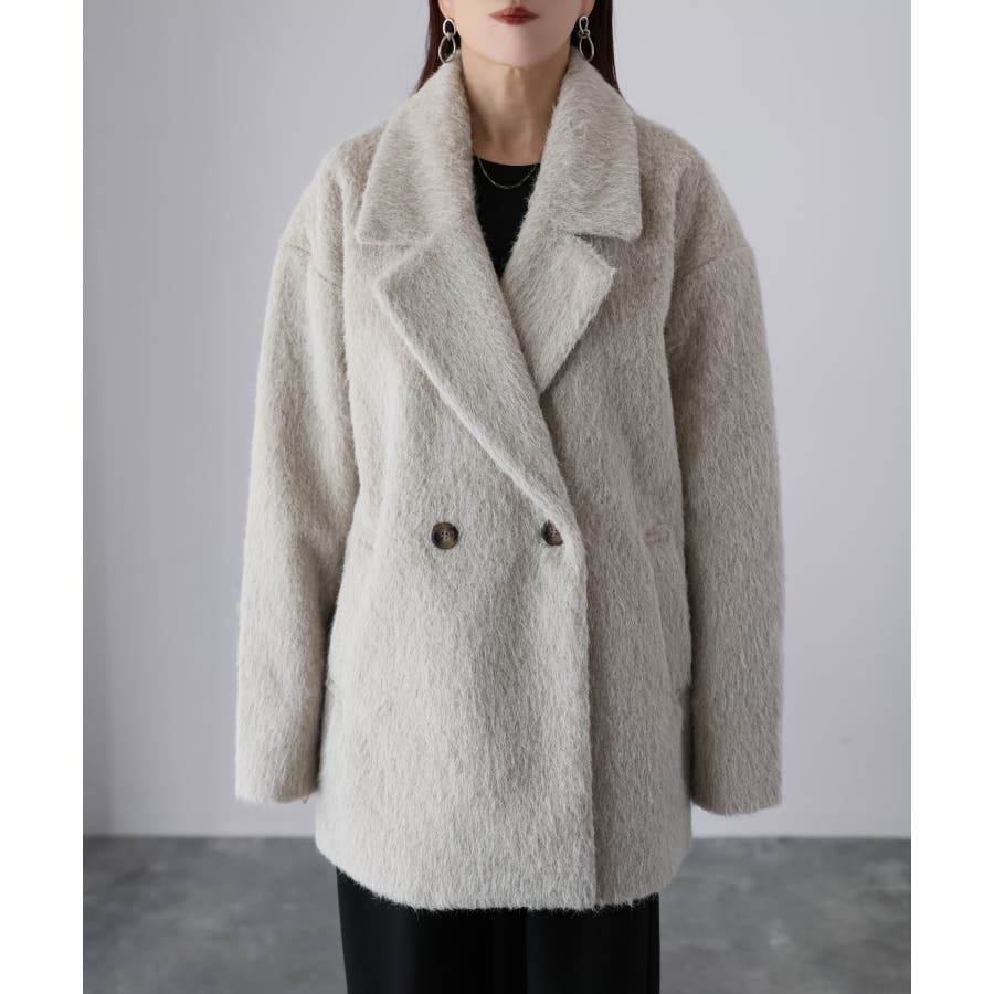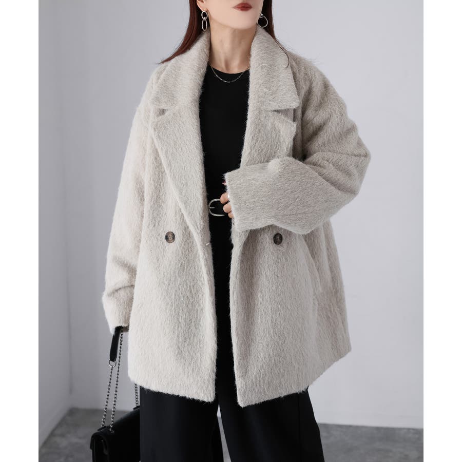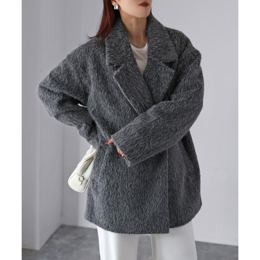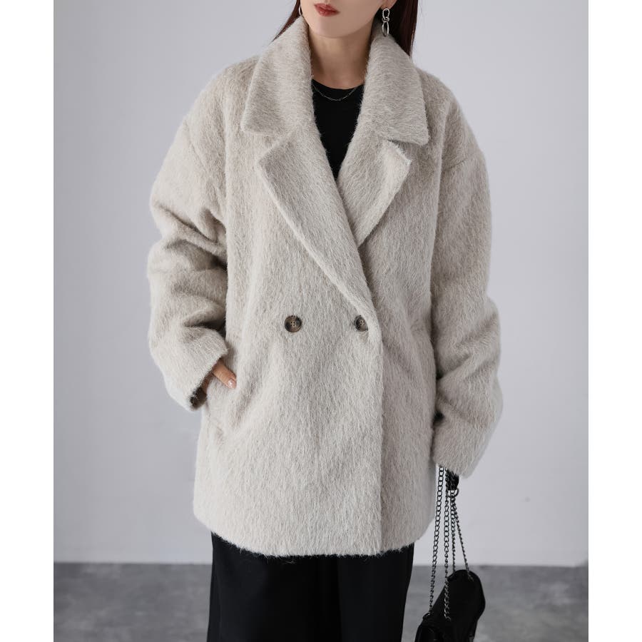 柔らかく起毛したシャギー素材が、シンプルながらも存在感のある着こなしを叶えてくれる、ミドル丈のダブルジャケットコートが登場しました。