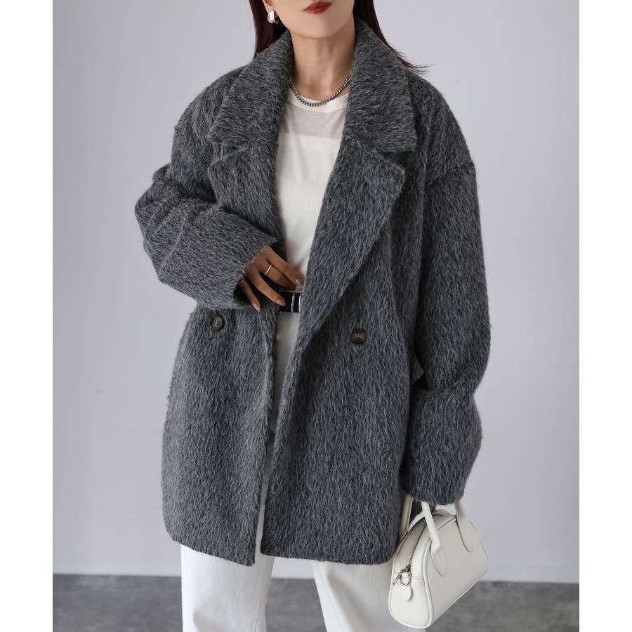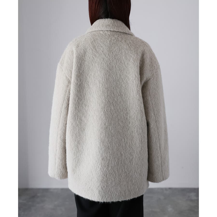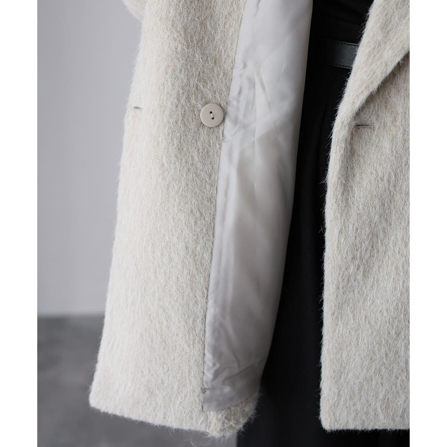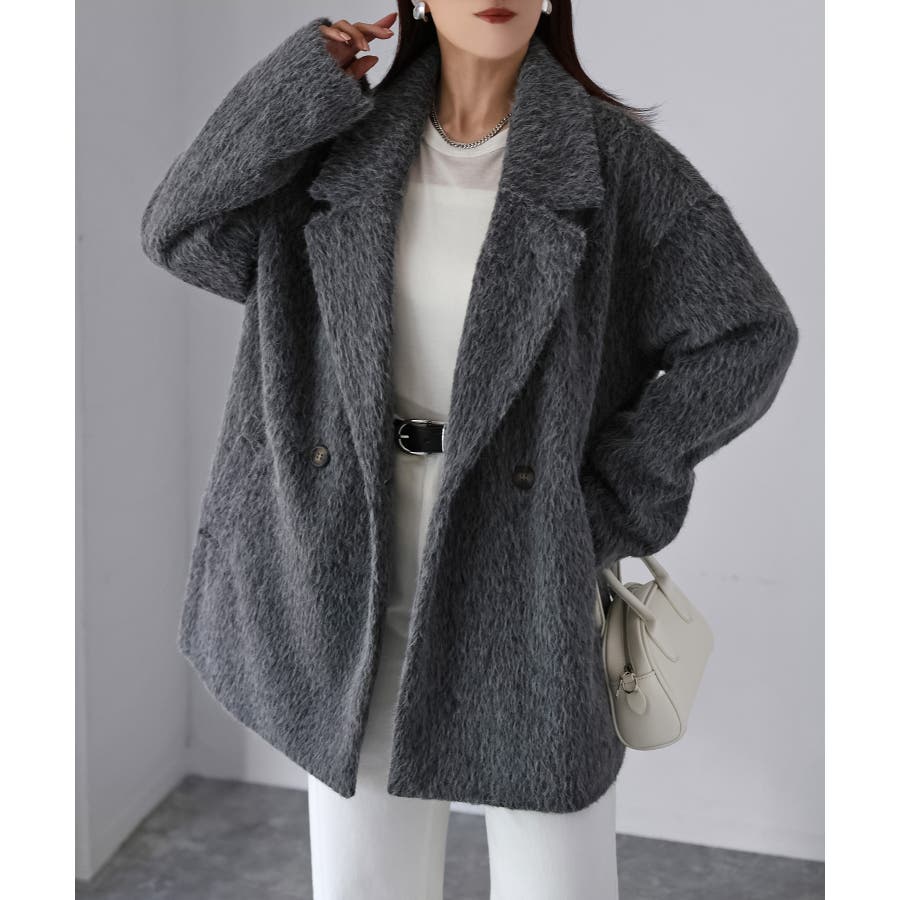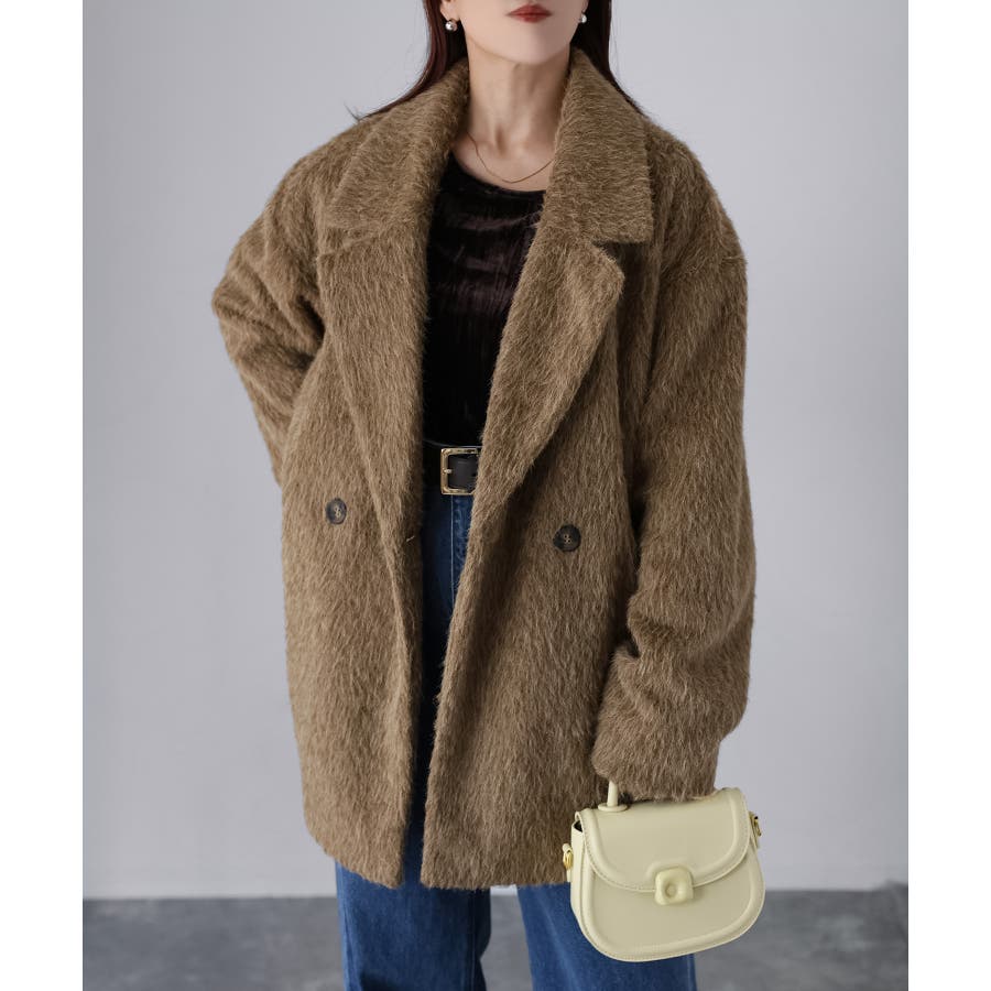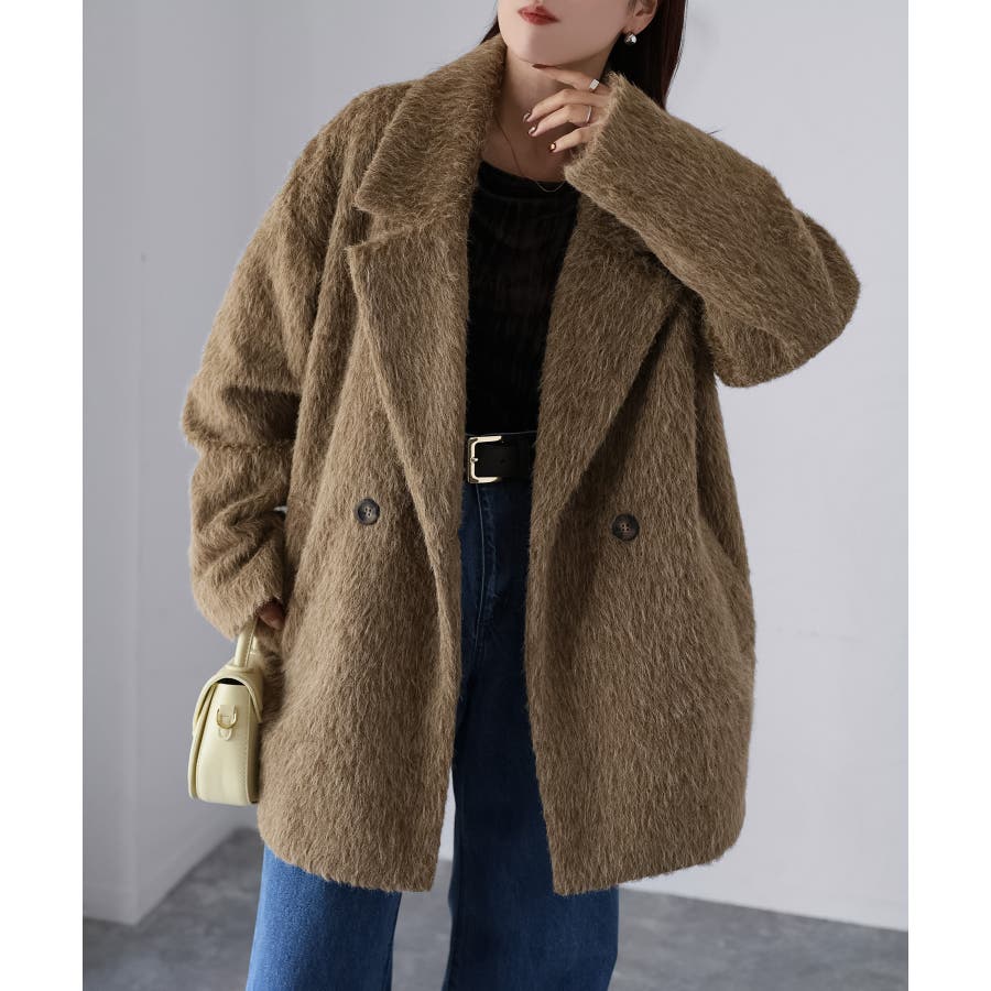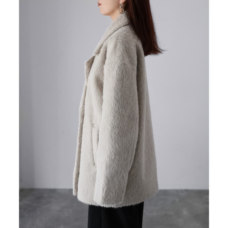 柔らかく起毛したシャギー素材が、シンプルながらも存在感のある着こなしを叶えてくれる、ミドル丈のダブルジャケットコートが登場しました。