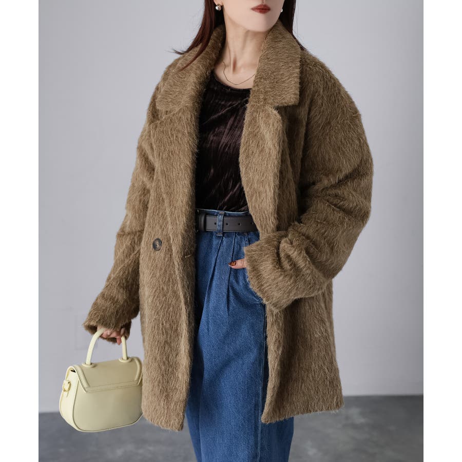ふわっと優しく包み込む、旬なシャギー素材のミドルコート♪