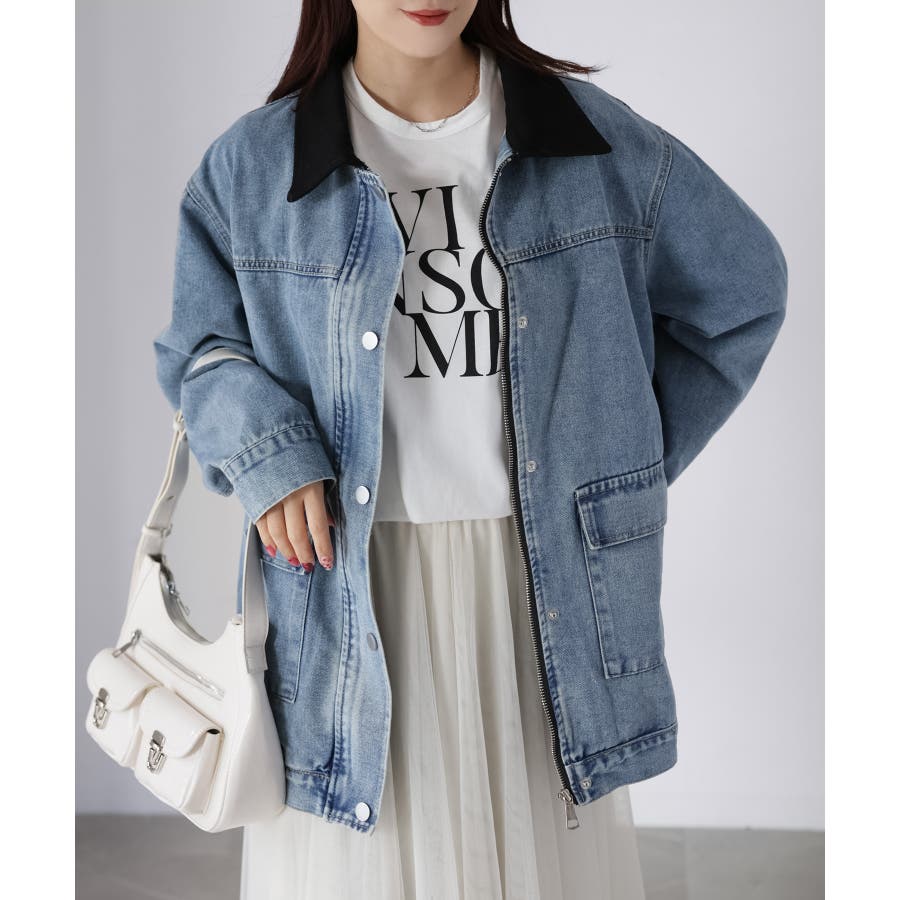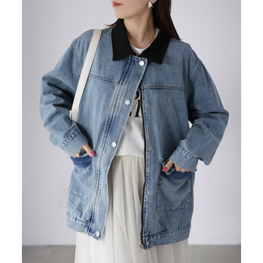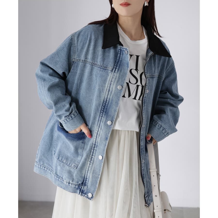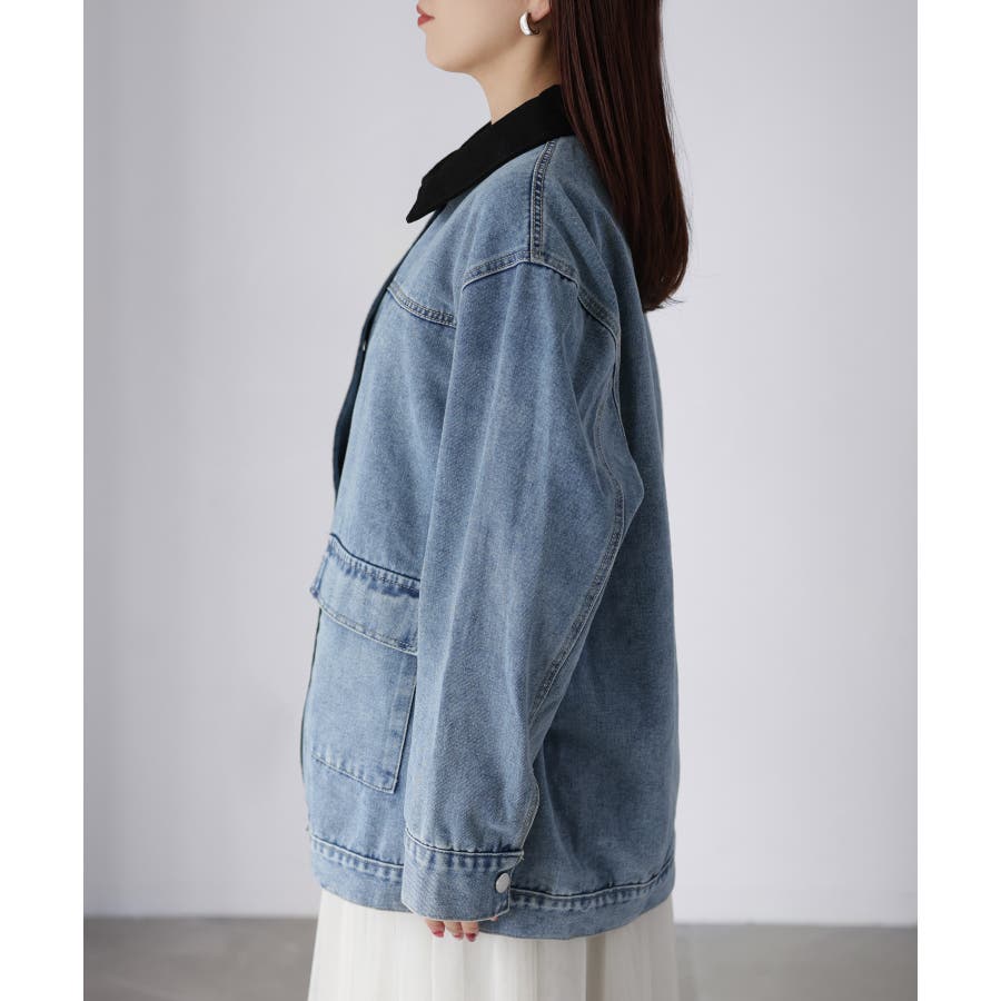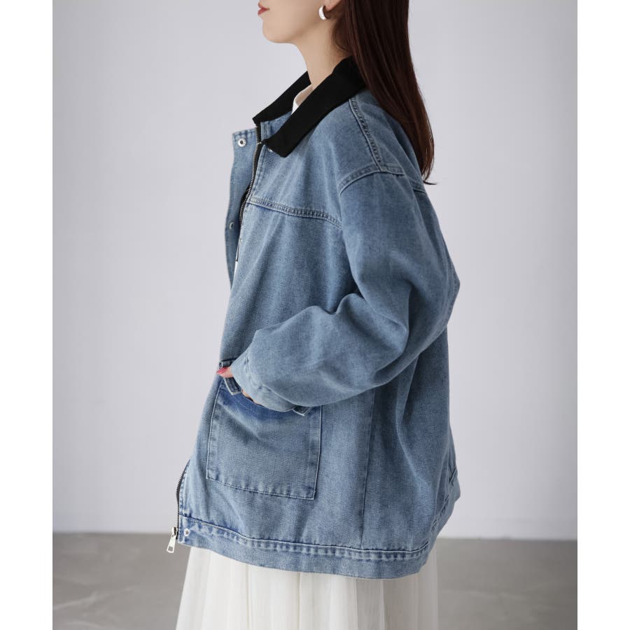 襟配色デニムジャケット