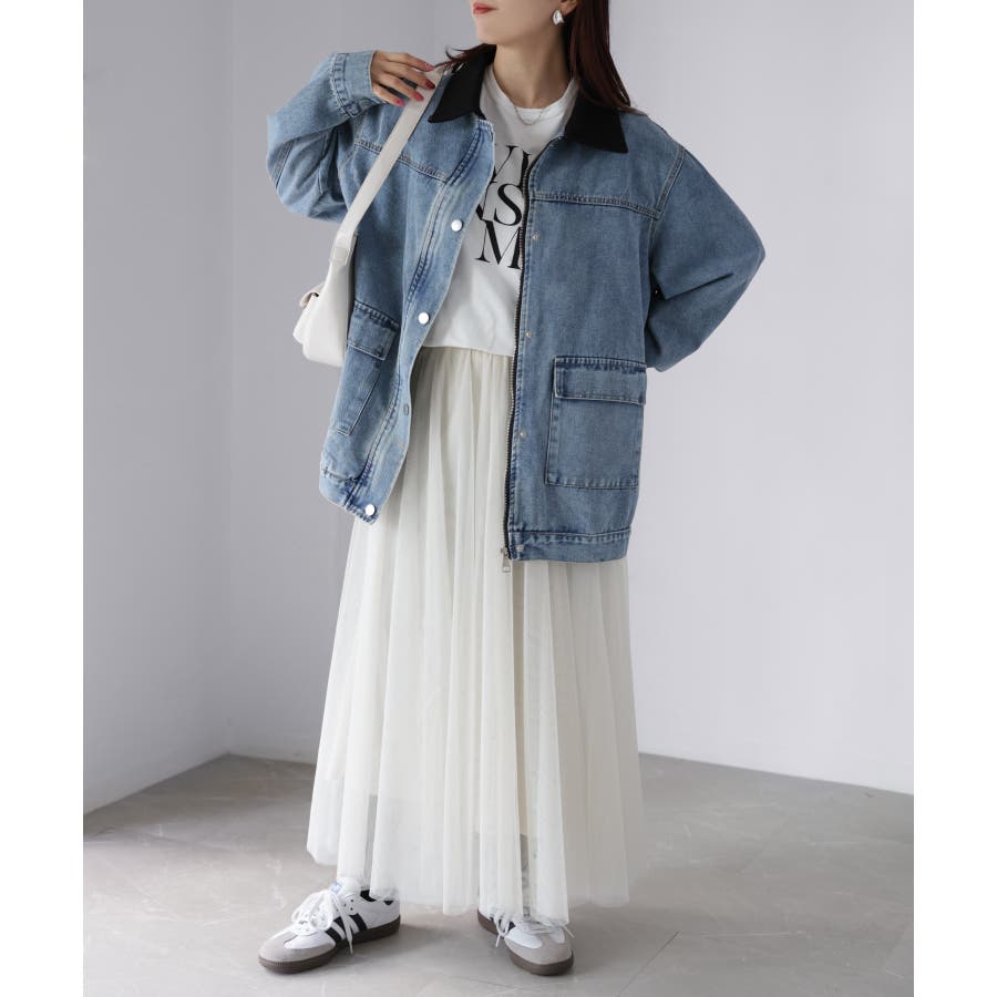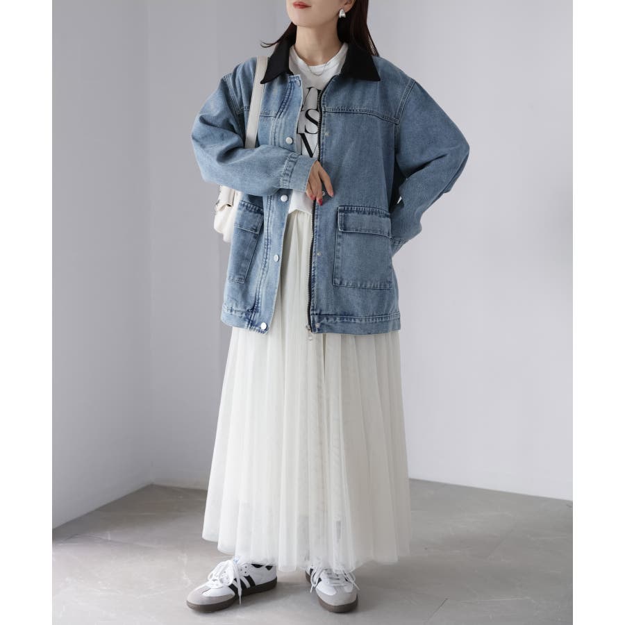 デニムパンツやカーゴパンツを合わせたカジュアルスタイルはもちろん、スカートやワンピースに羽織ってミックスコーデもおすすめ。
