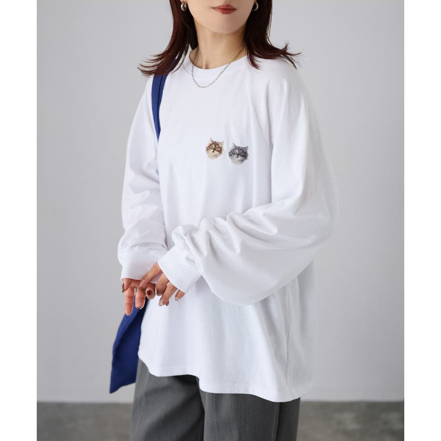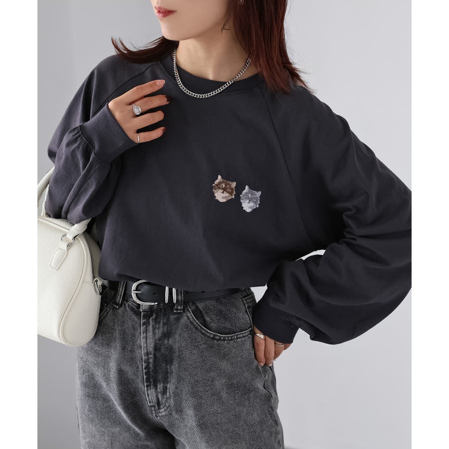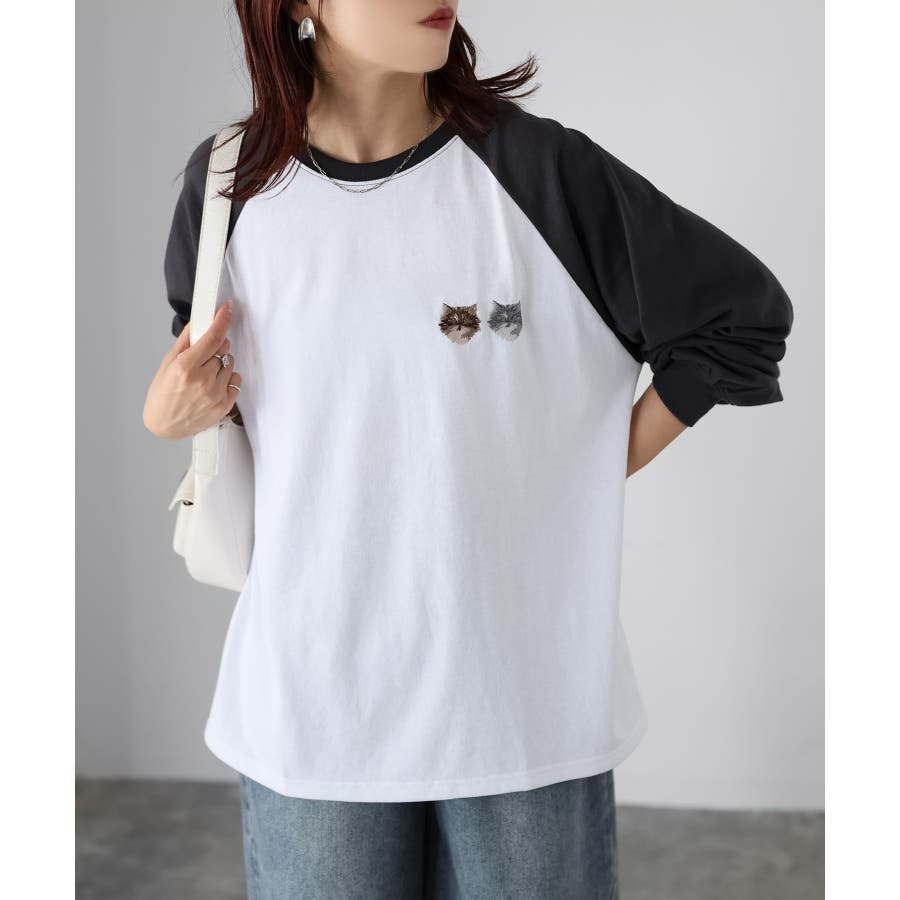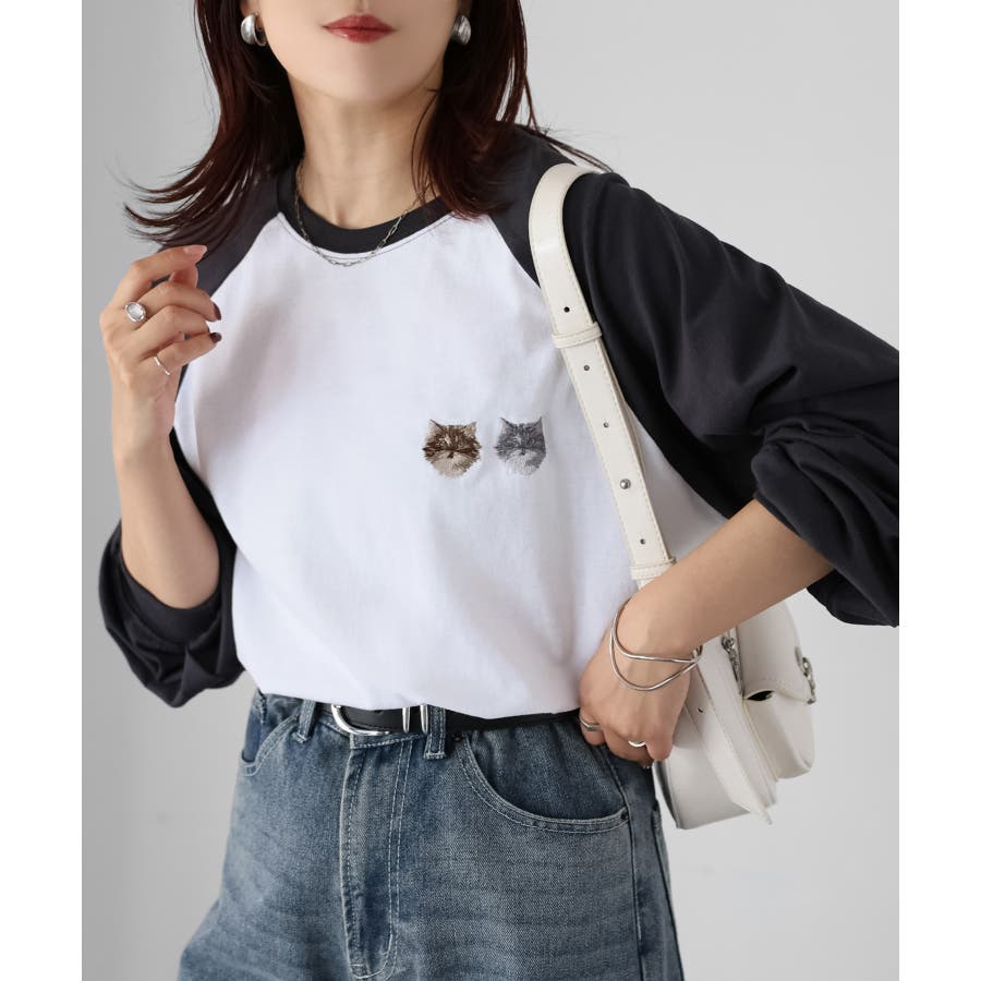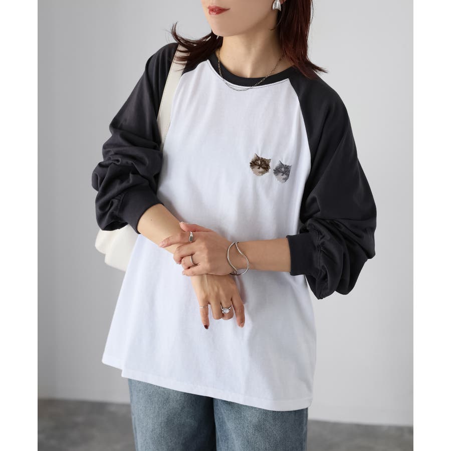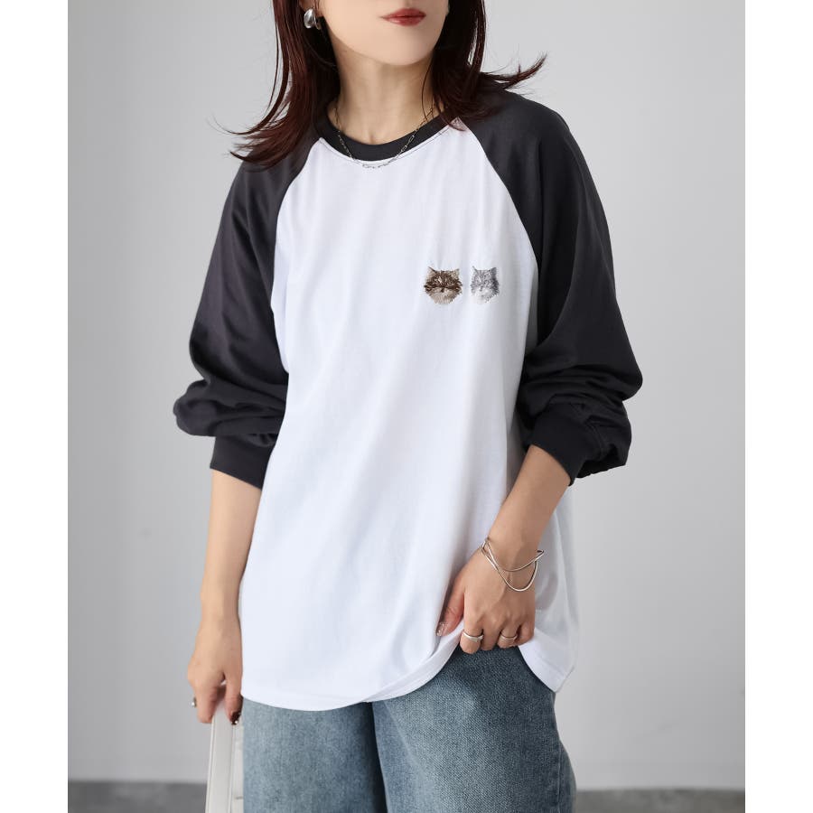 【Riberry ネコ刺繡ラグランロンT】