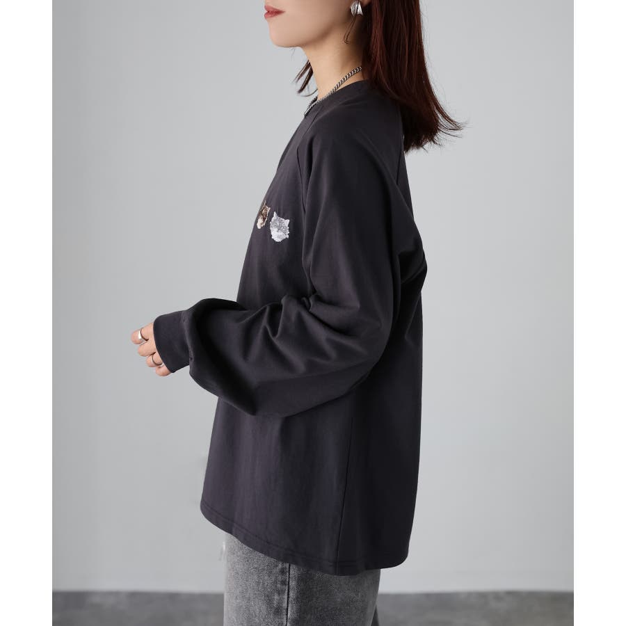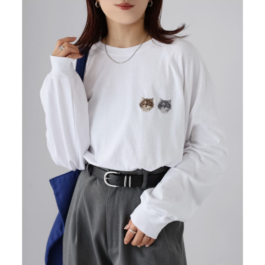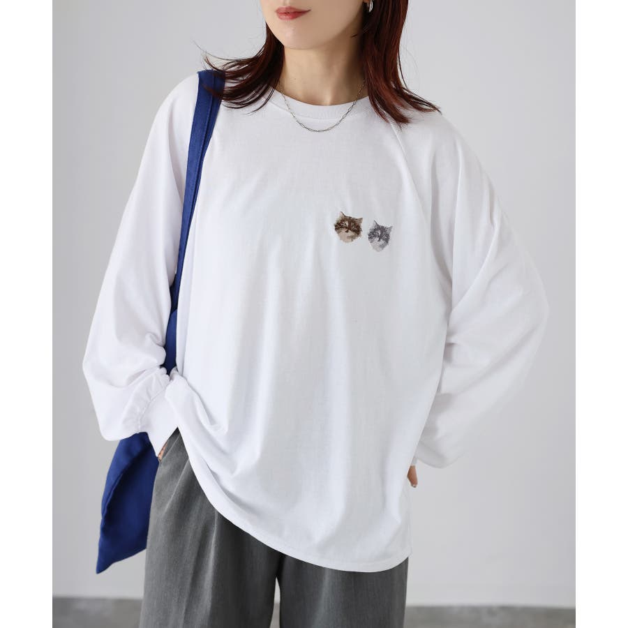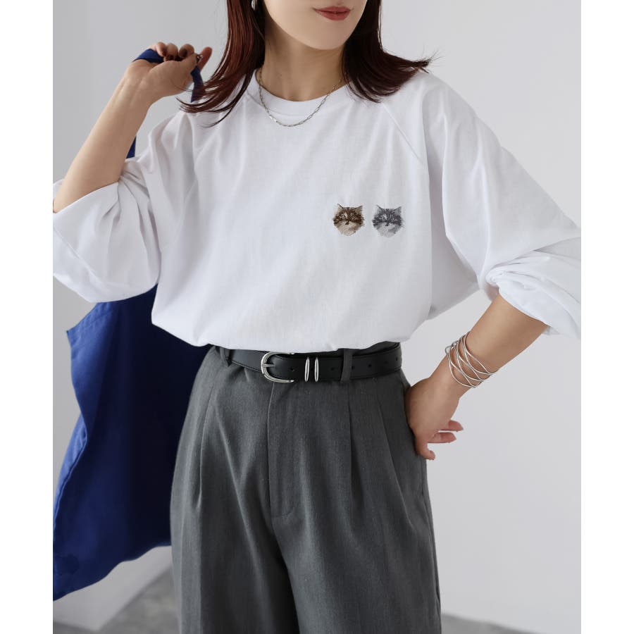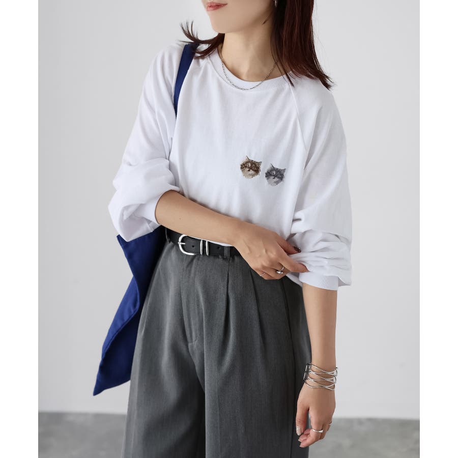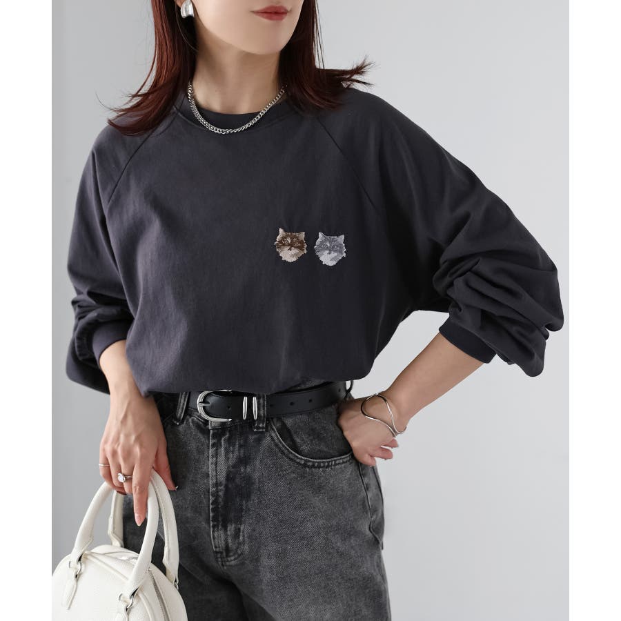 【Riberry ネコ刺繡ラグランロンT】