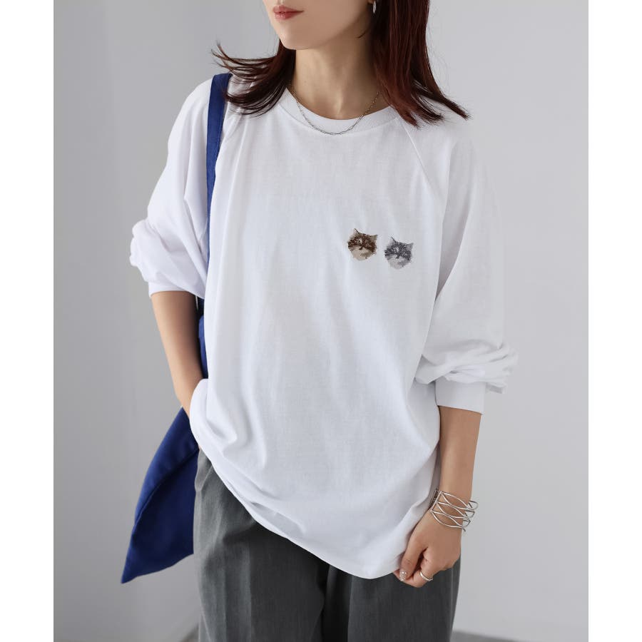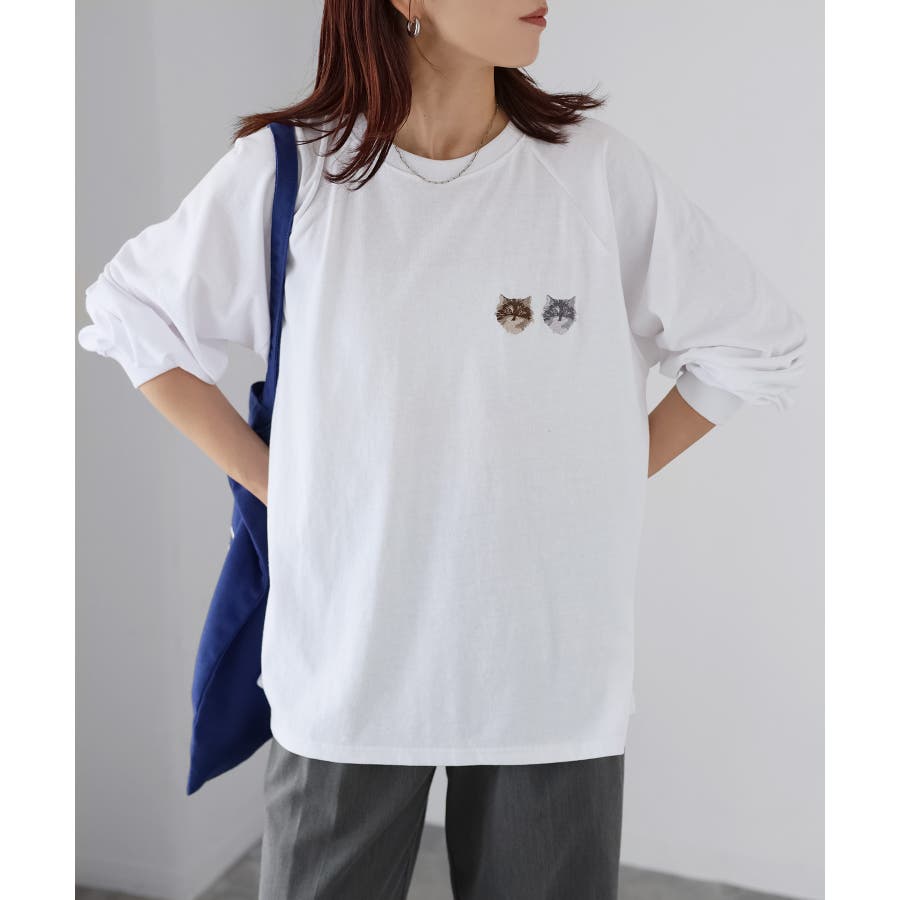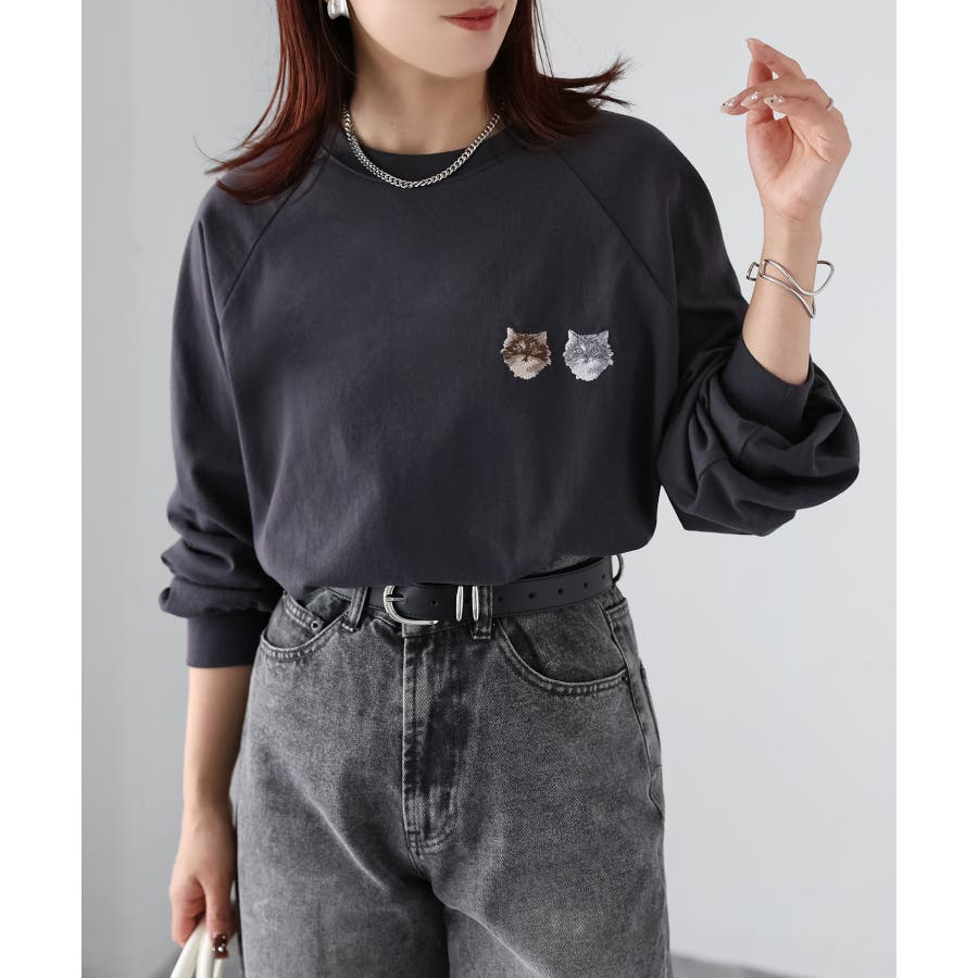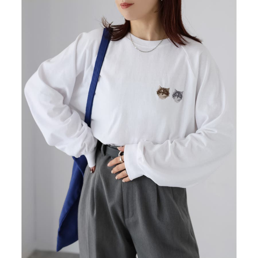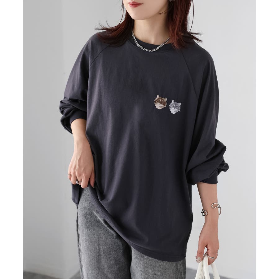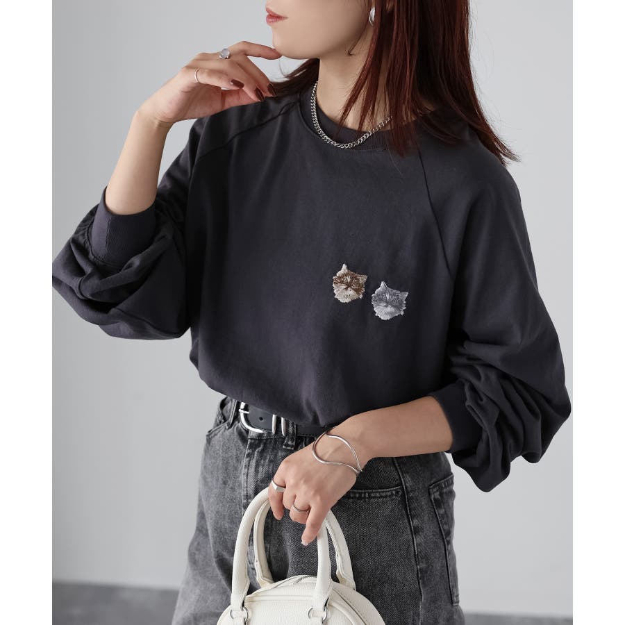ネコ刺繍ラグランロンT