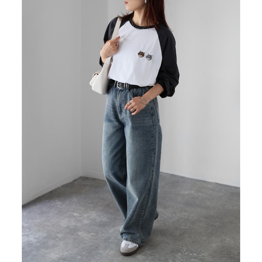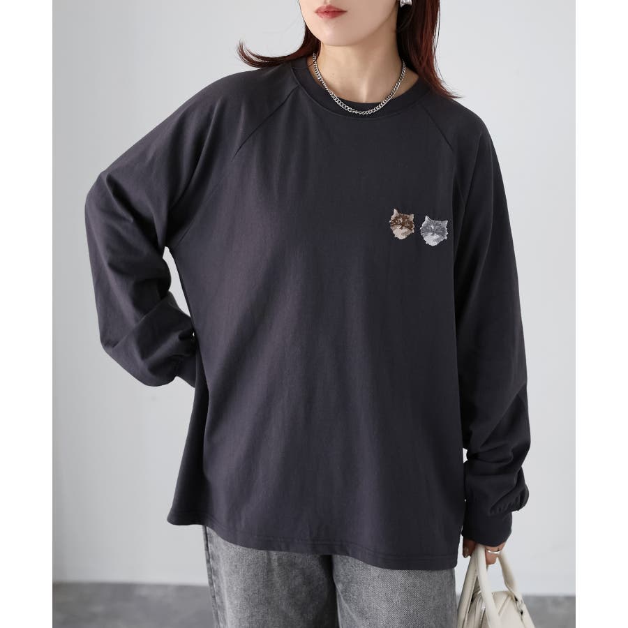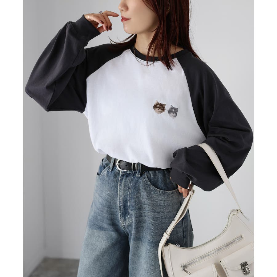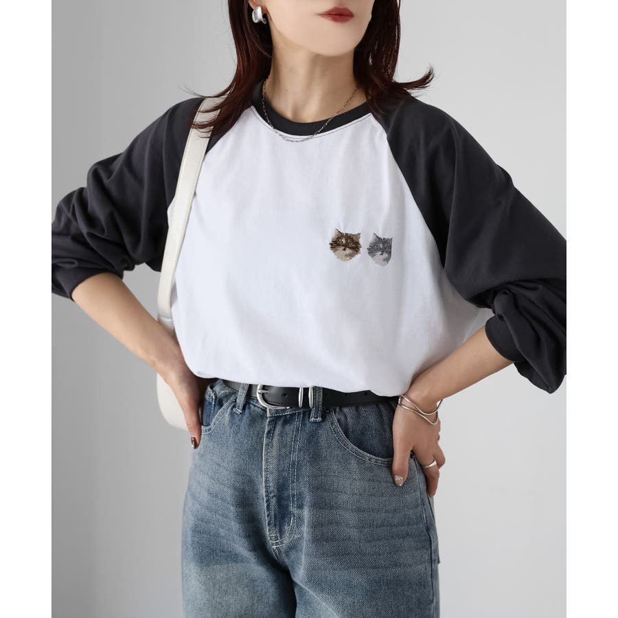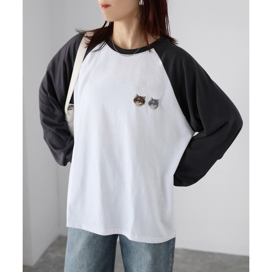 2匹のネコがキュート!着回ししやすいラグランロンT♪