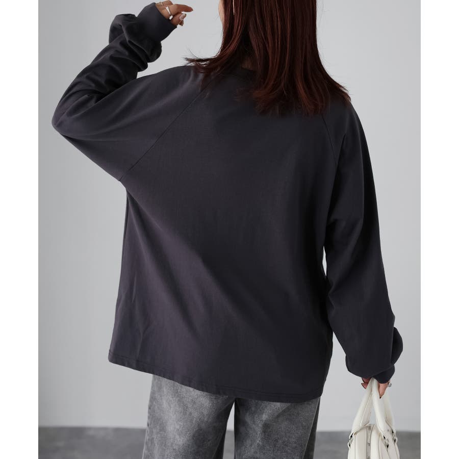 ラグランスリーブで腕周りもゆとりがあり、動きやすいデザインです。