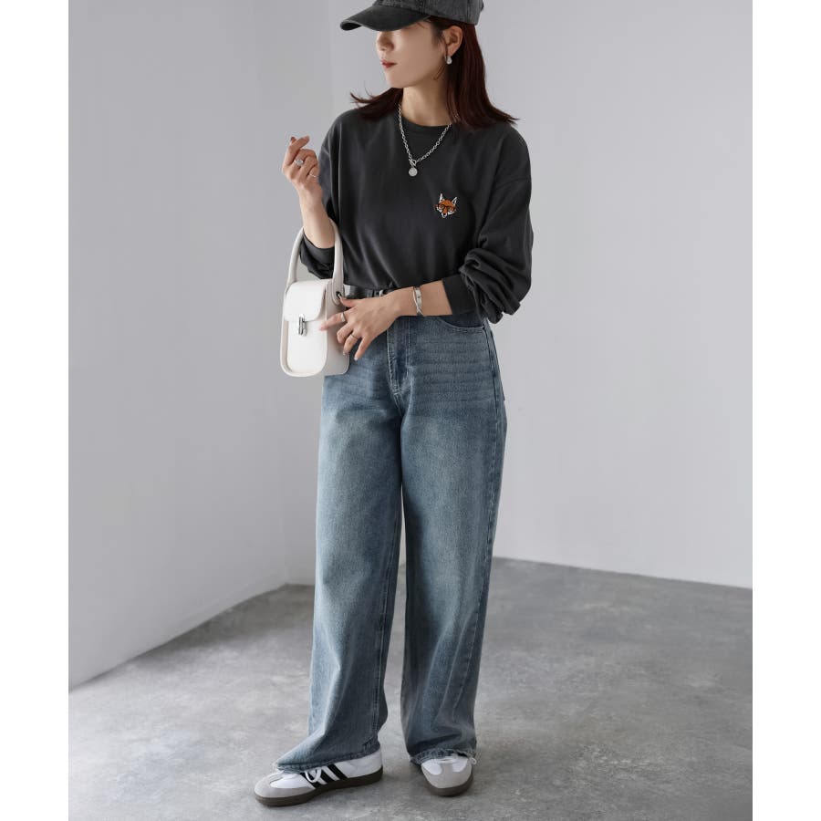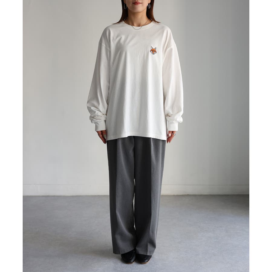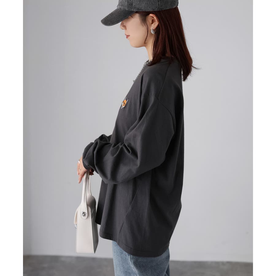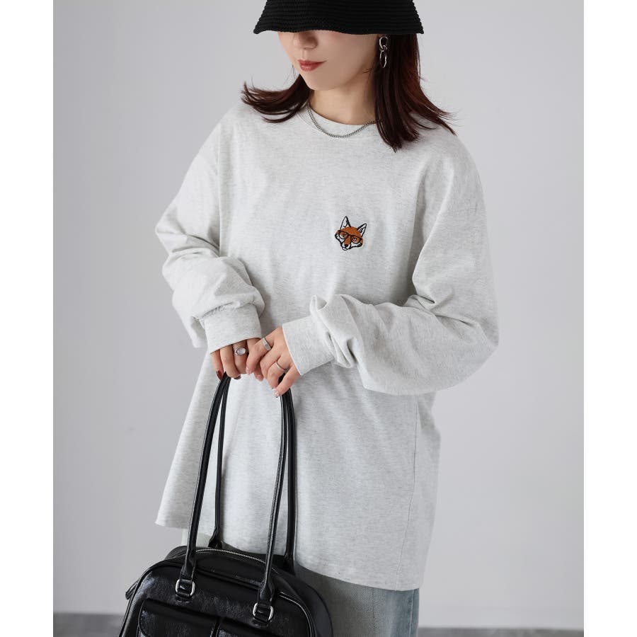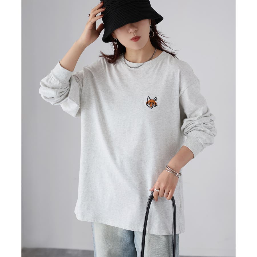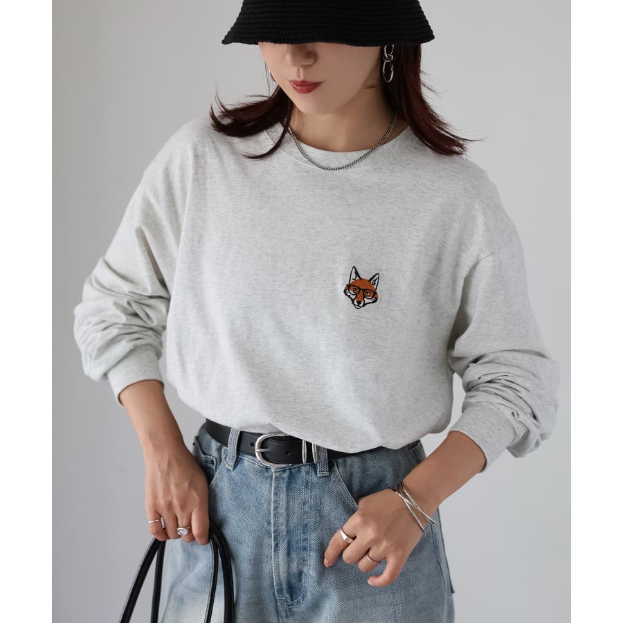 シンプルになりがちなTシャツですが、胸元のめがねキツネの刺繍がアクセントになってくれる主役級ロンTです。