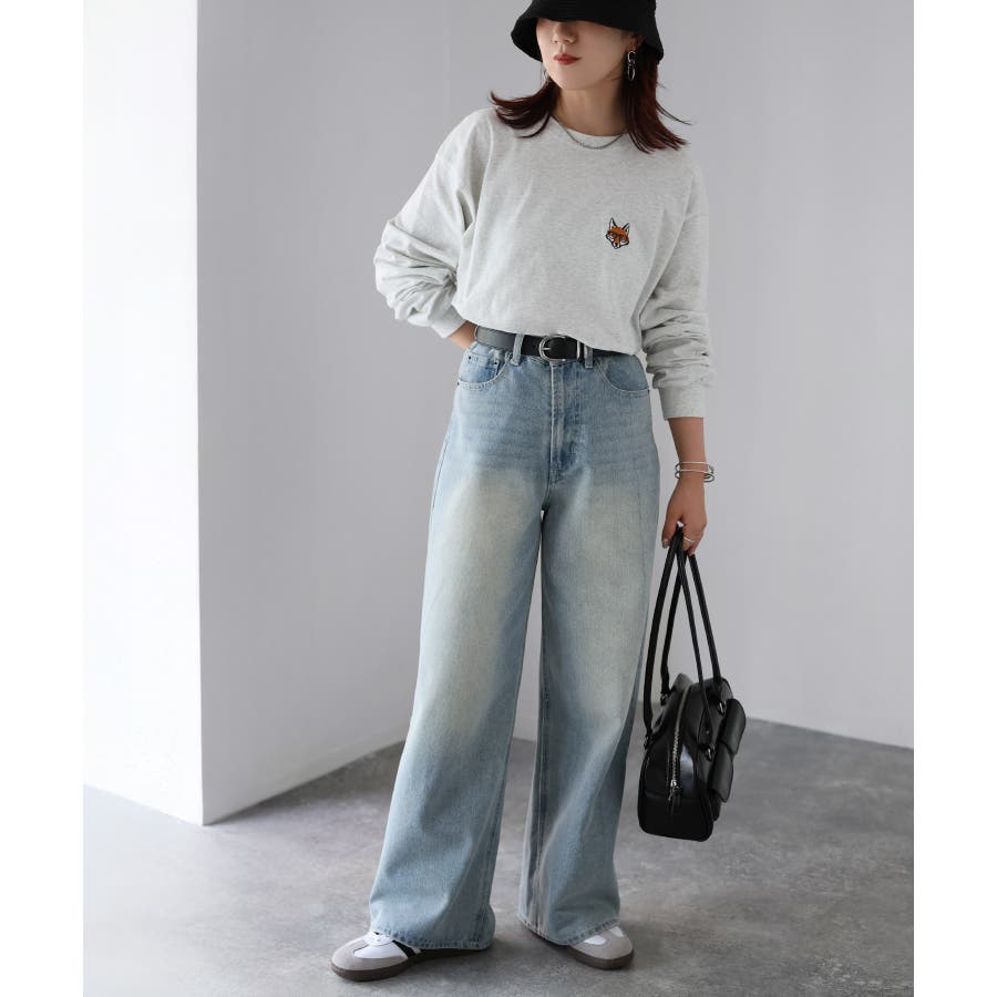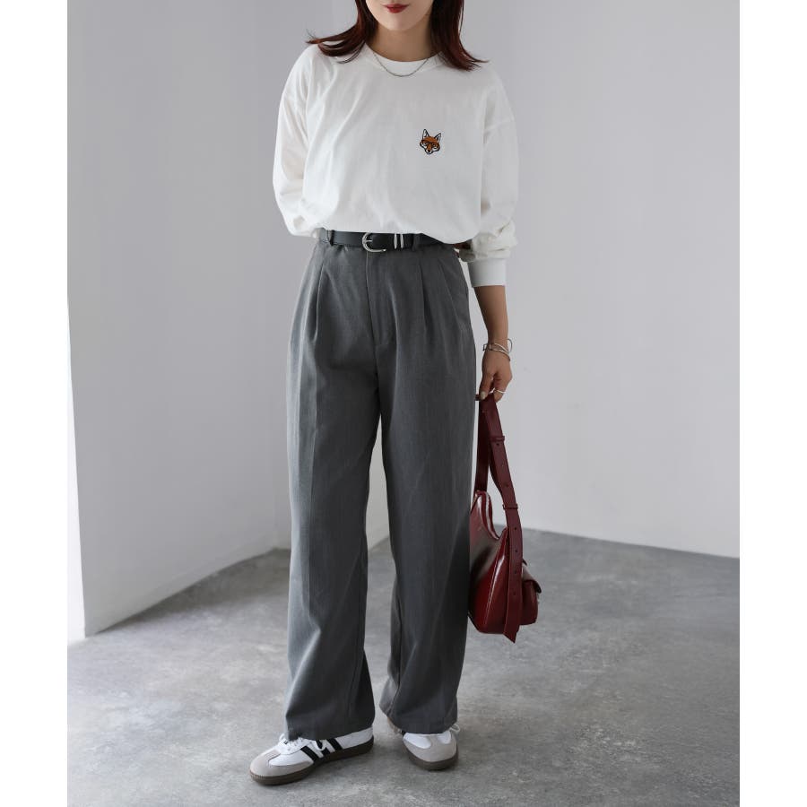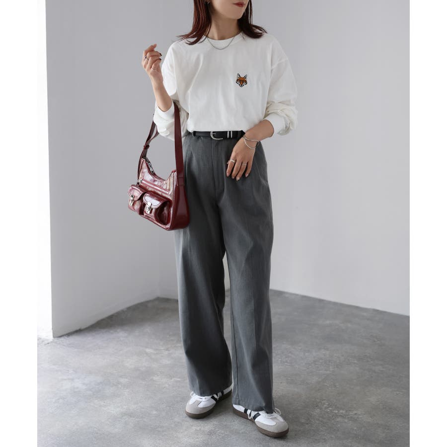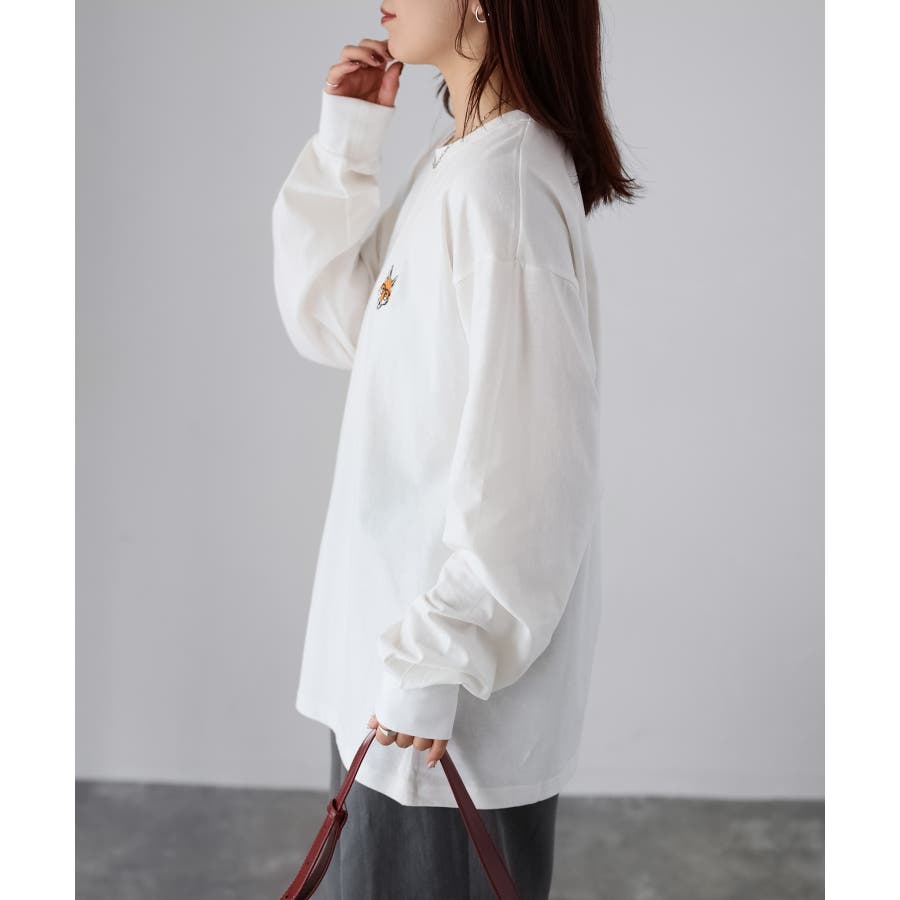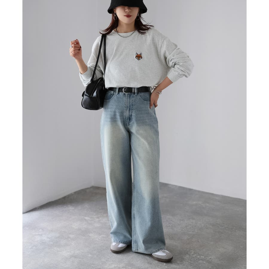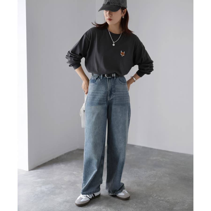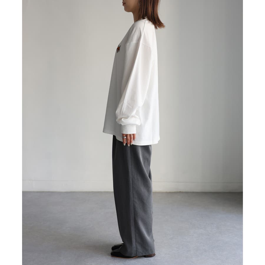 シンプルになりがちなTシャツですが、胸元のめがねキツネの刺繍がアクセントになってくれる主役級ロンTです。