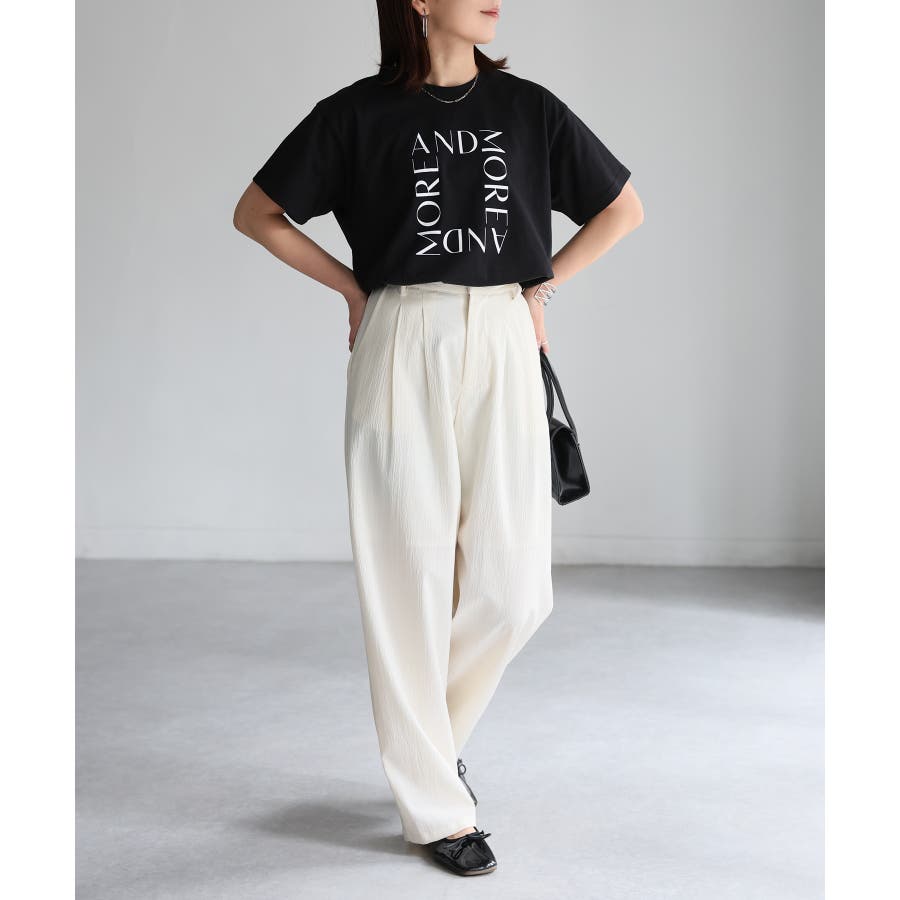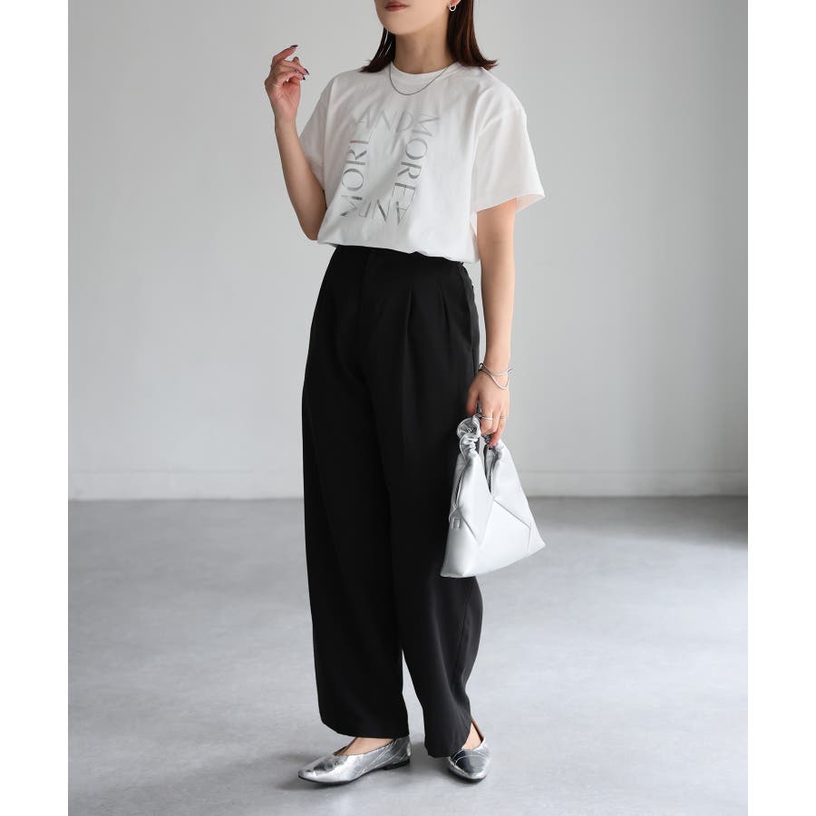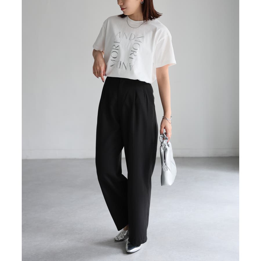 今っぽいシックなロゴデザインでボトムを選ばず、スラックスやカーブデニム・マーメイドスカートなどに合わせるのもおすすめ。
