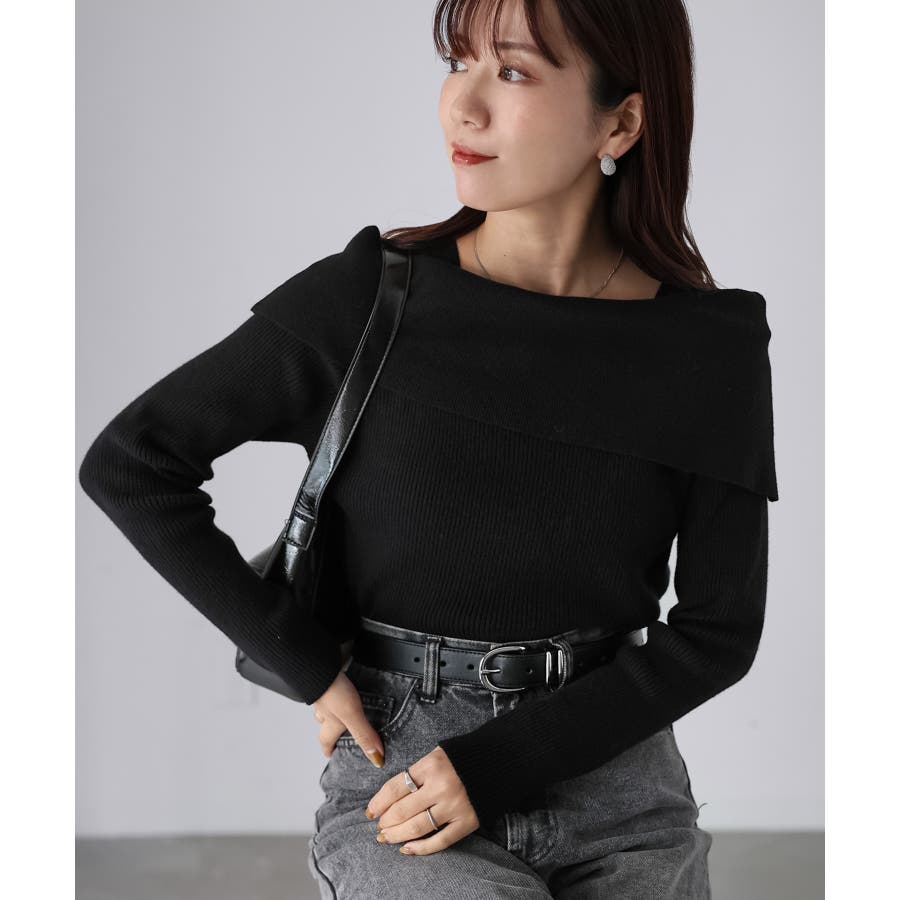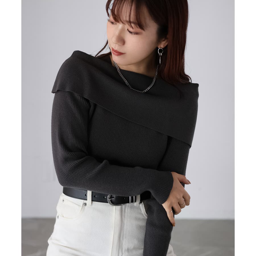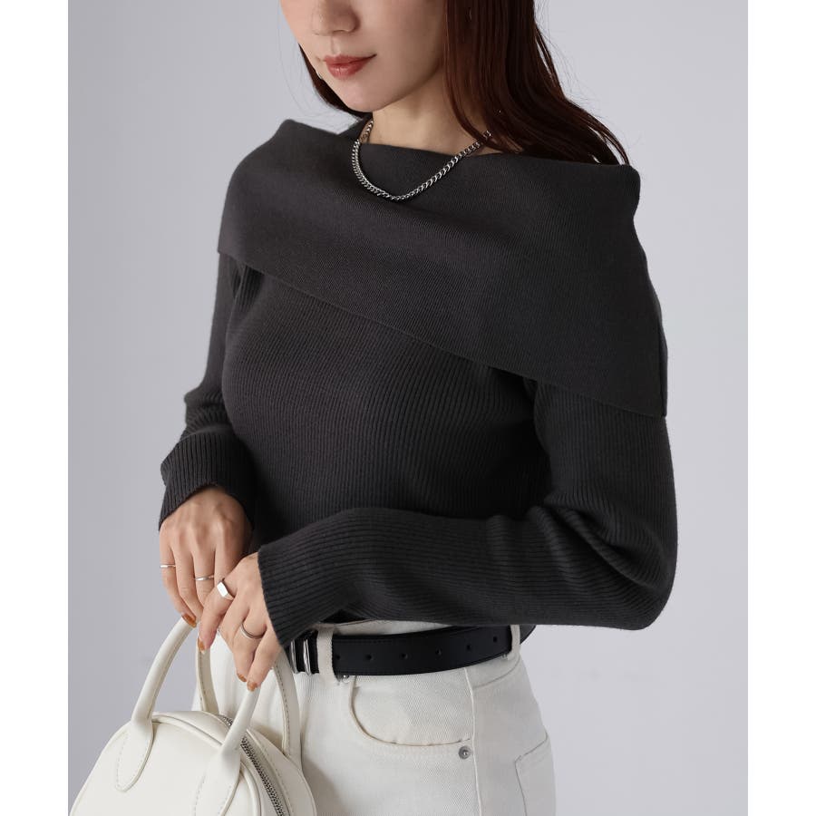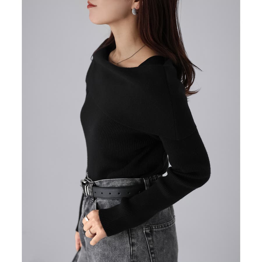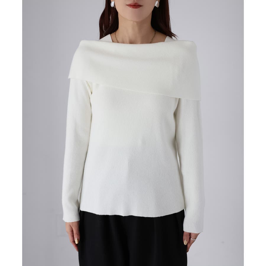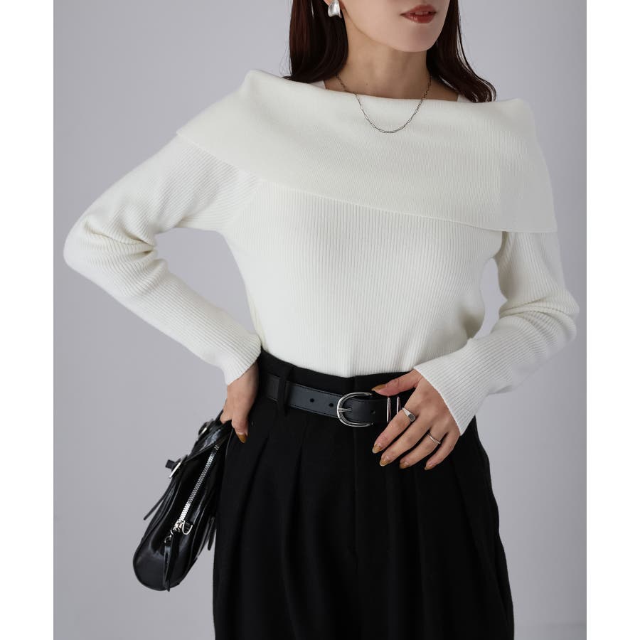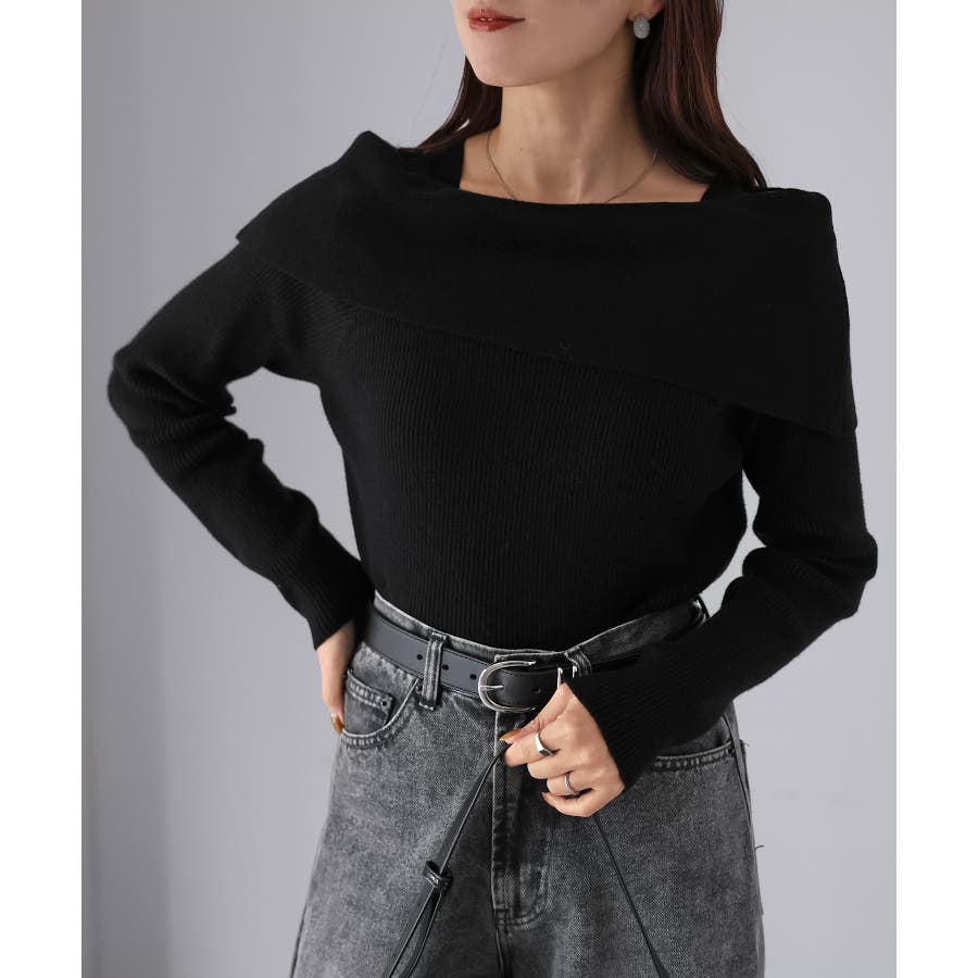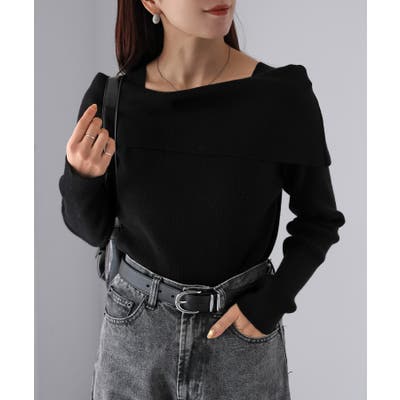 アシメオフショルニット