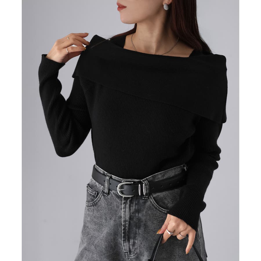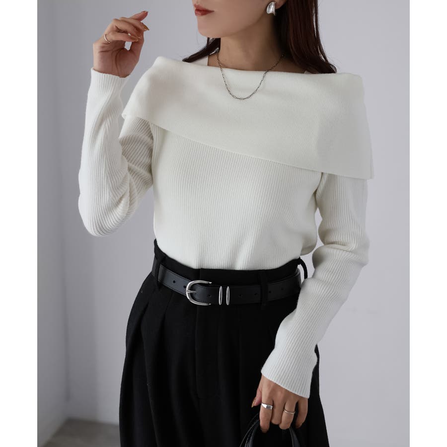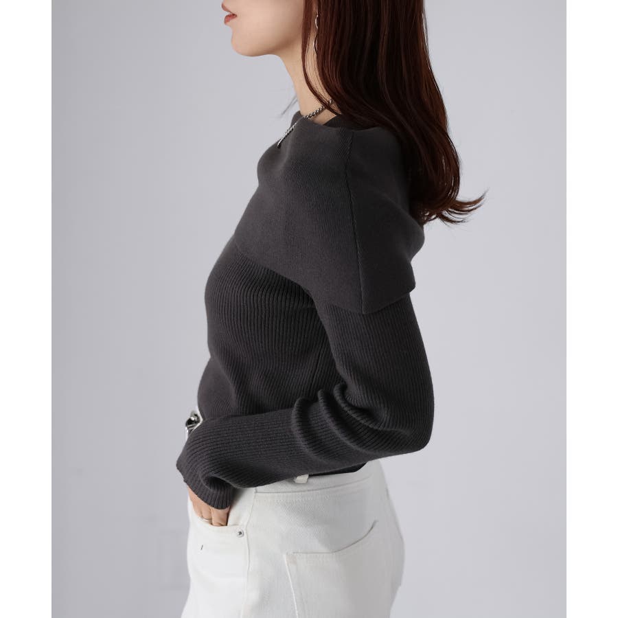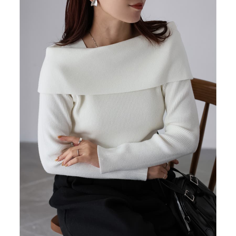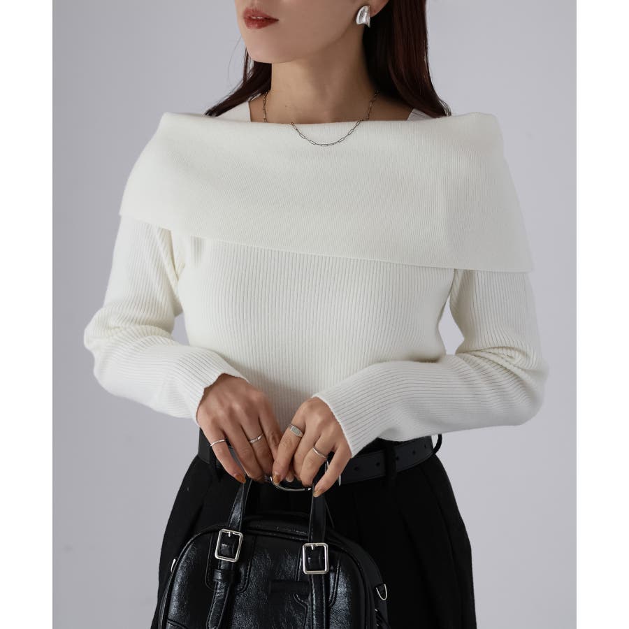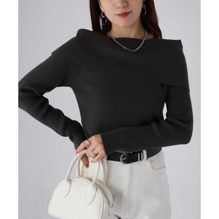 アシメオフショルニット