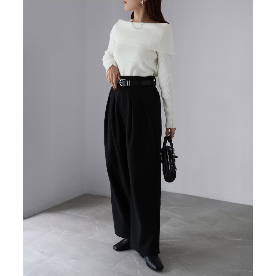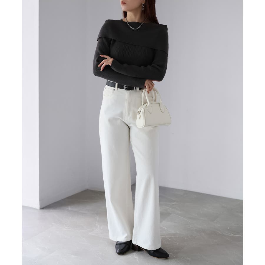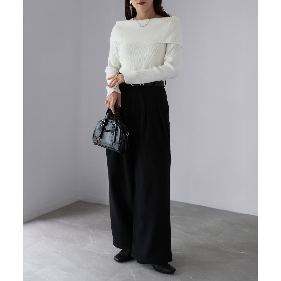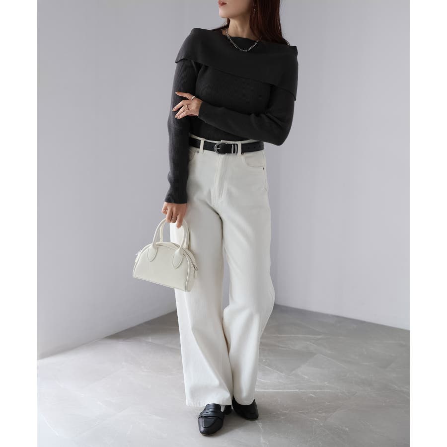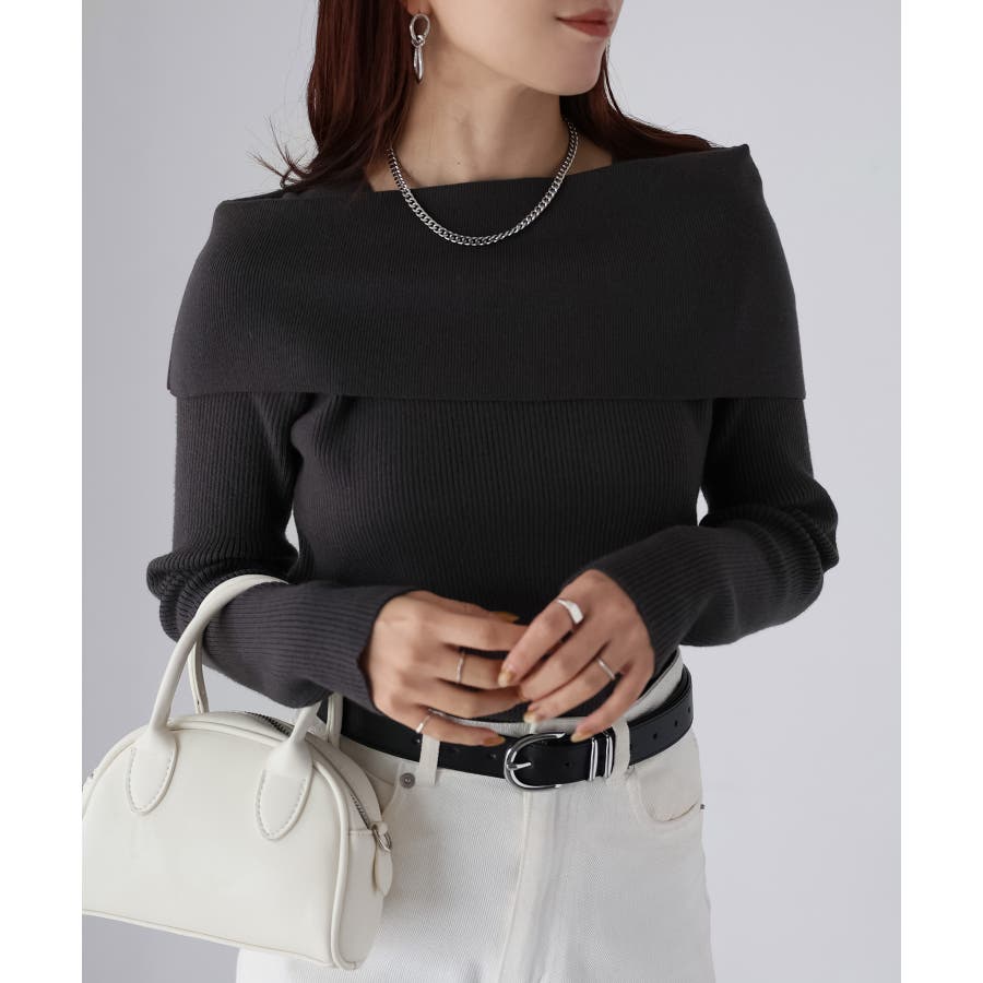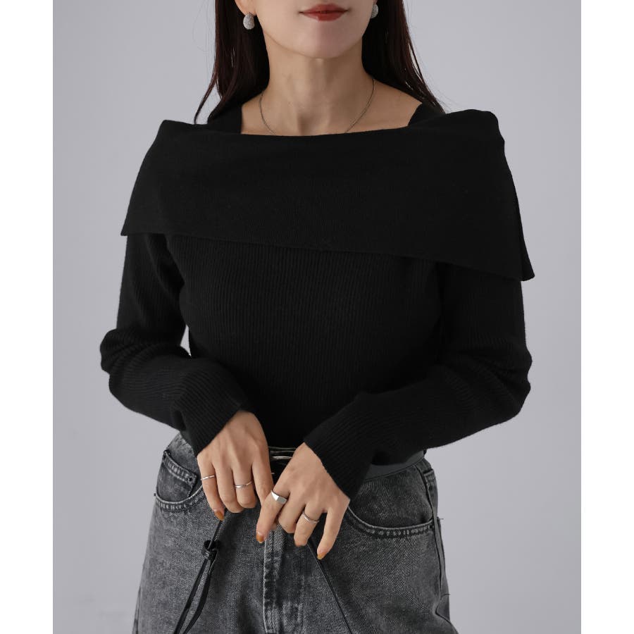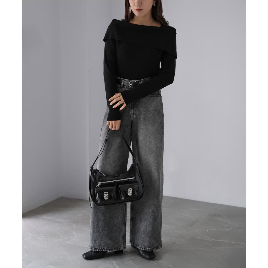 アシメオフショルニット
