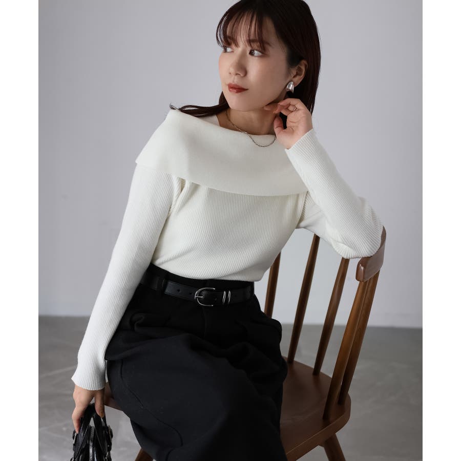 上品さと抜け感を兼ね備えた、アシメオフショルダーニットが登場しました。