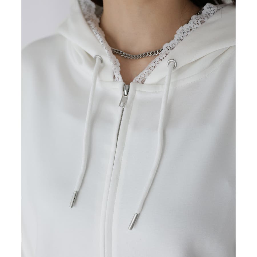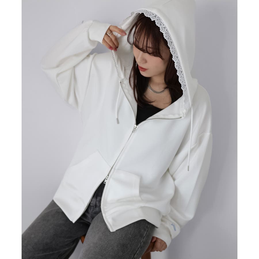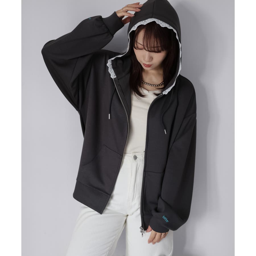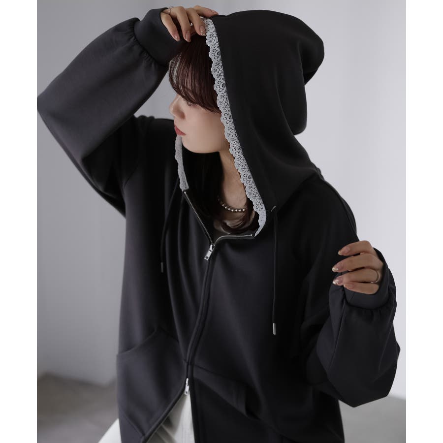 最大のポイントは、フード部分にドッキングされたトレンド感のあるレースディティール。
