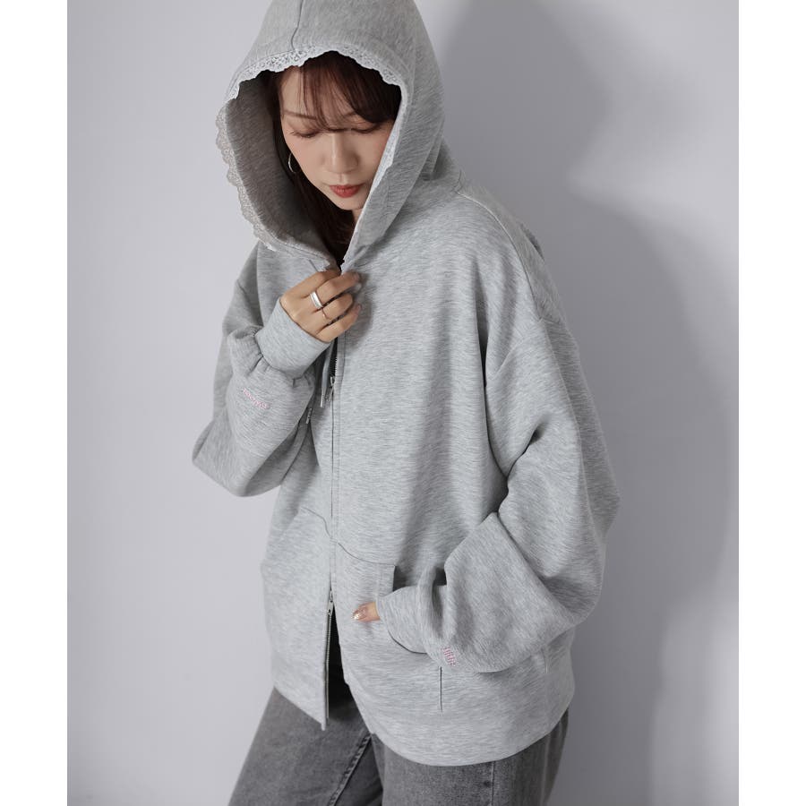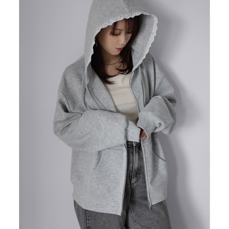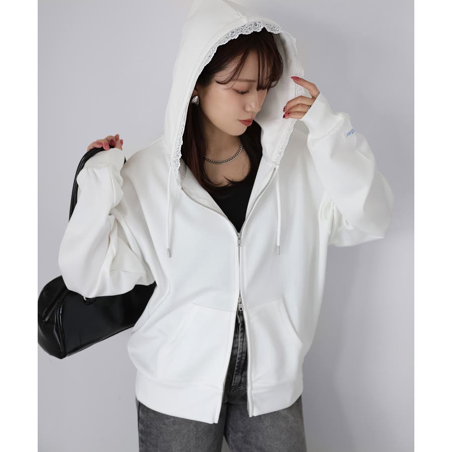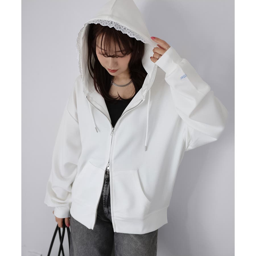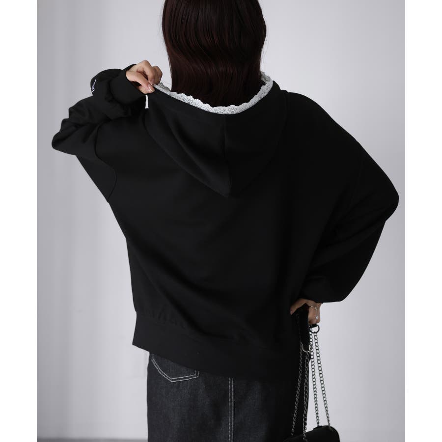 最大のポイントは、フード部分にドッキングされたトレンド感のあるレースディティール。