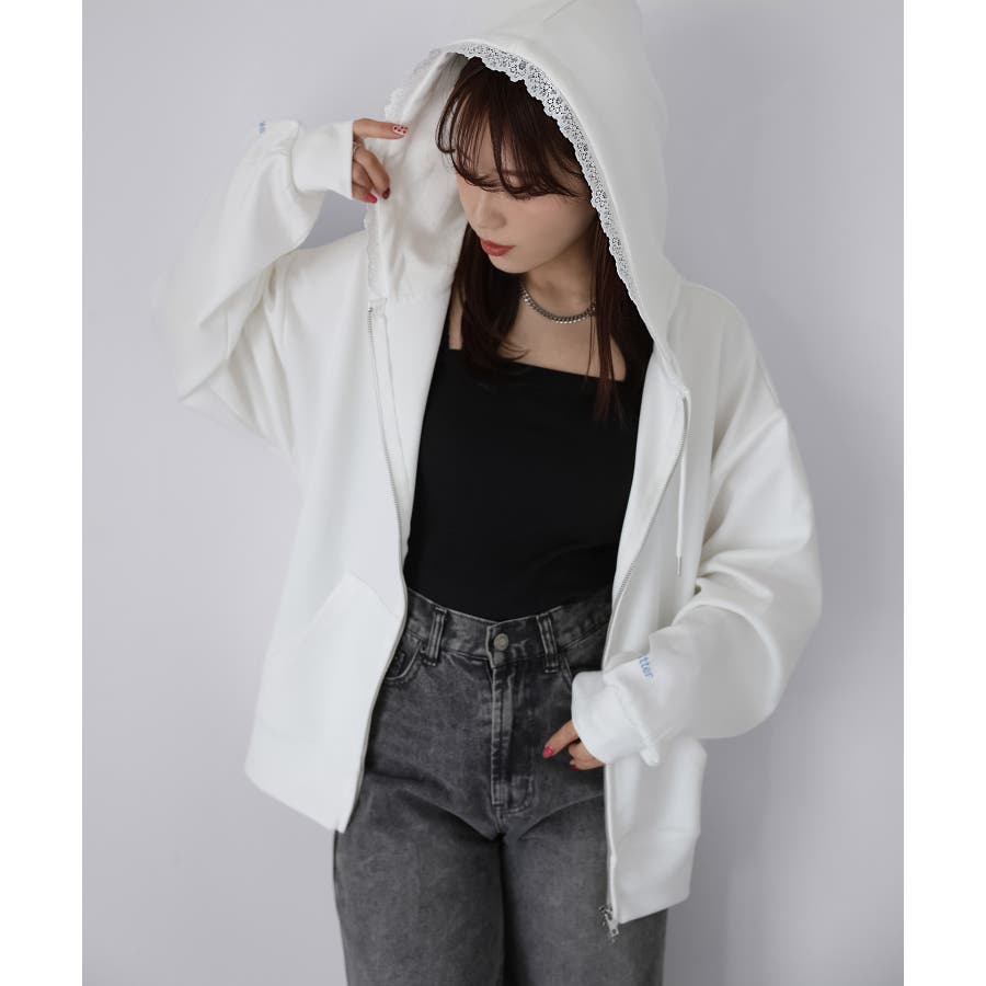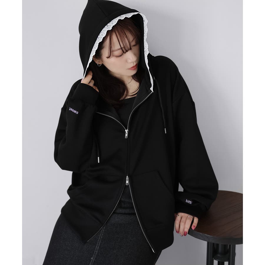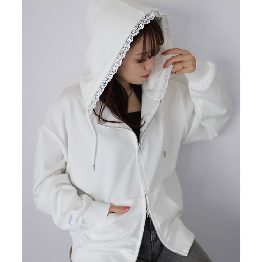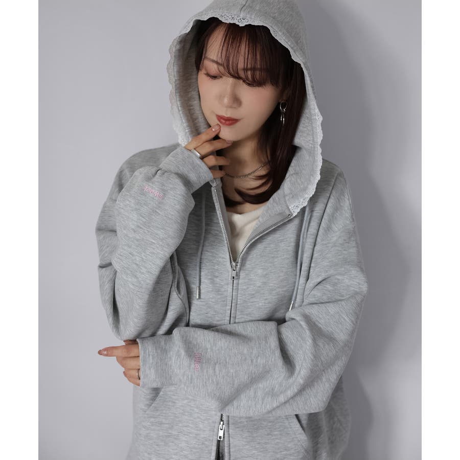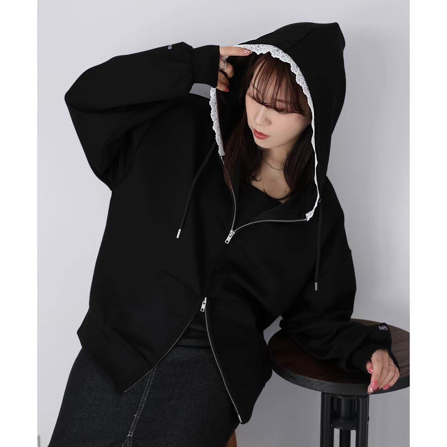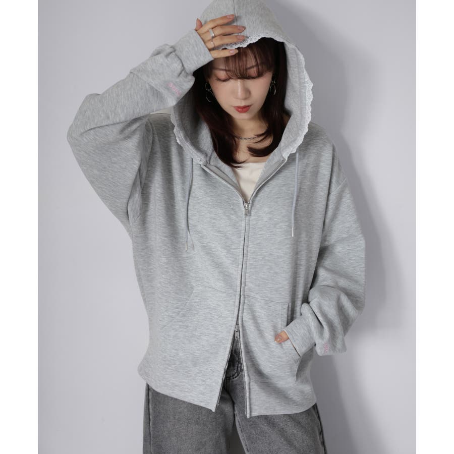 レースドッキング×ロゴ刺繍が映えるダブルジップパーカー♪