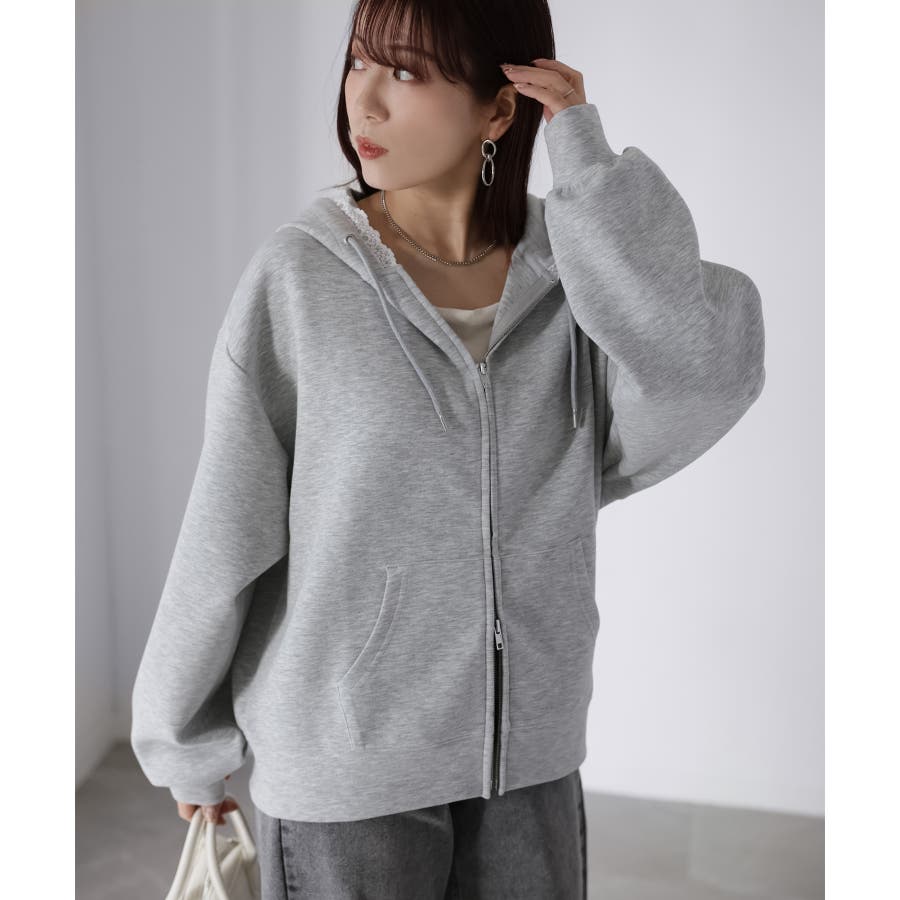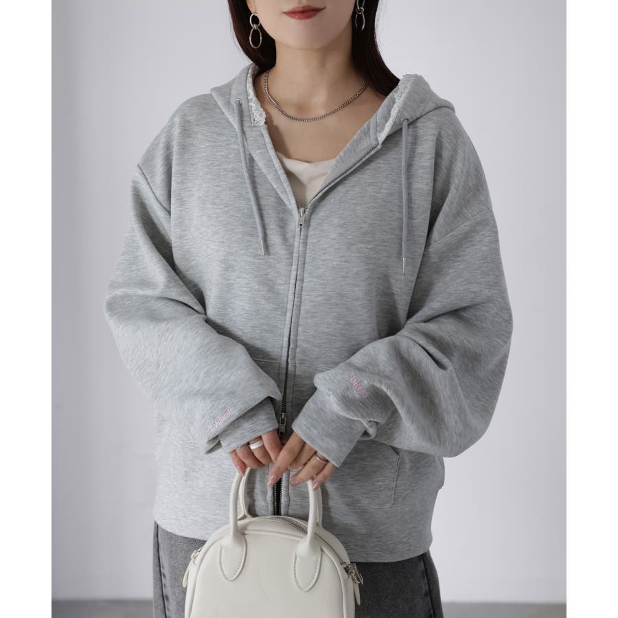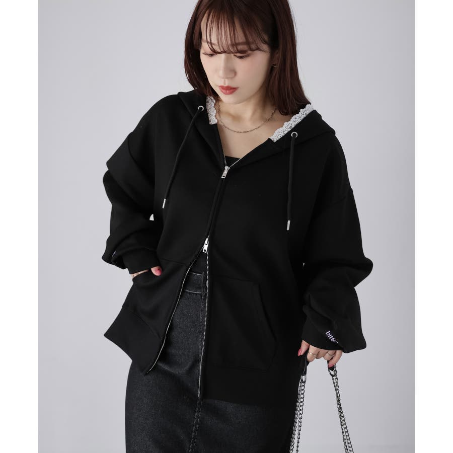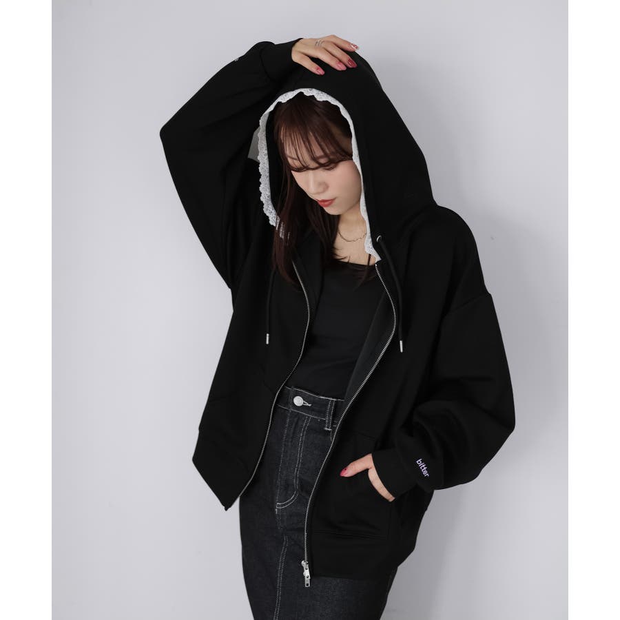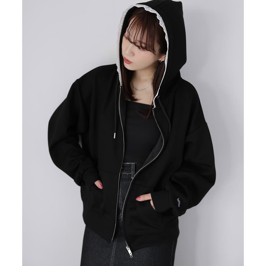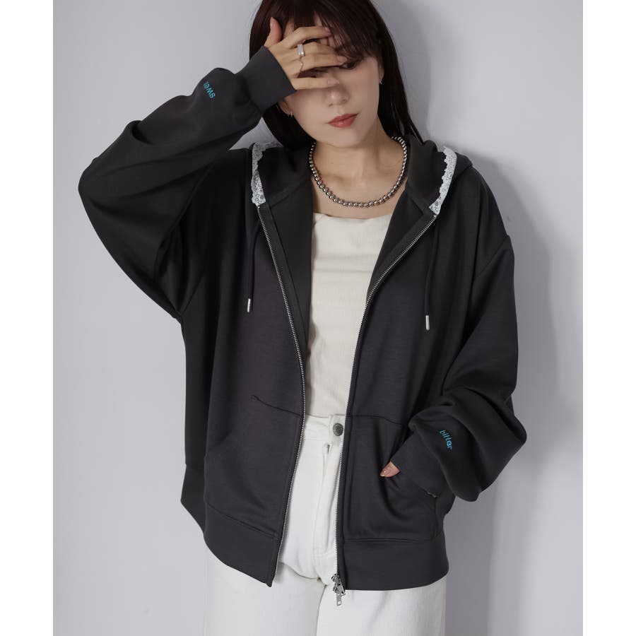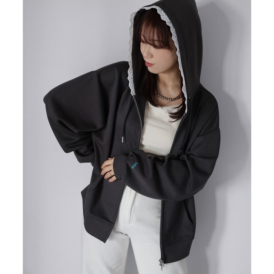 レースドッキング×ロゴ刺繍が映えるダブルジップパーカー♪