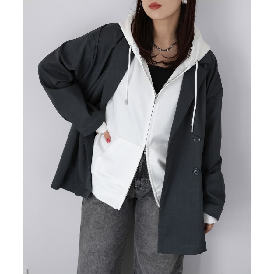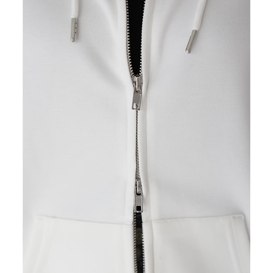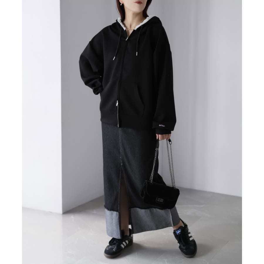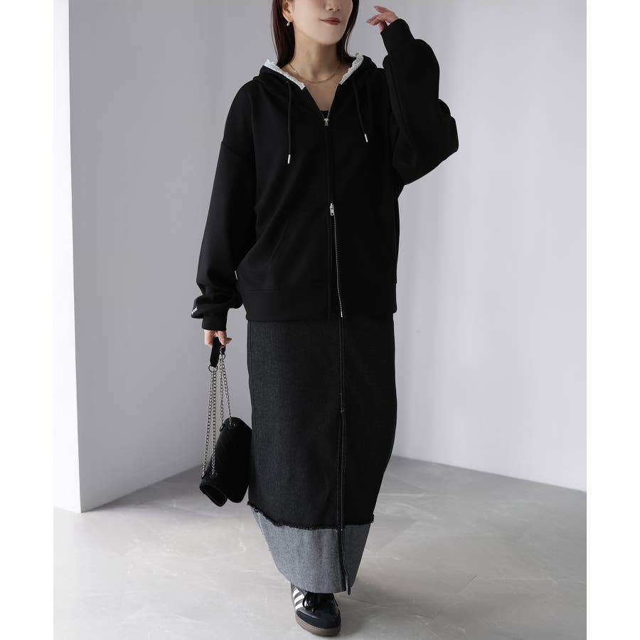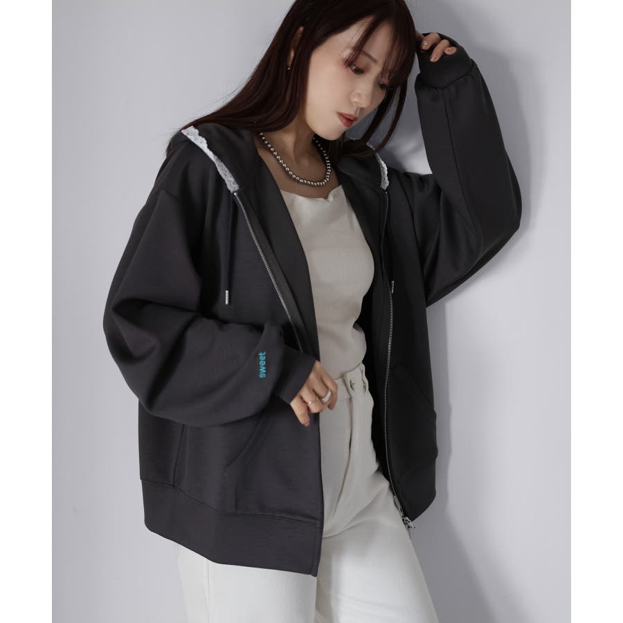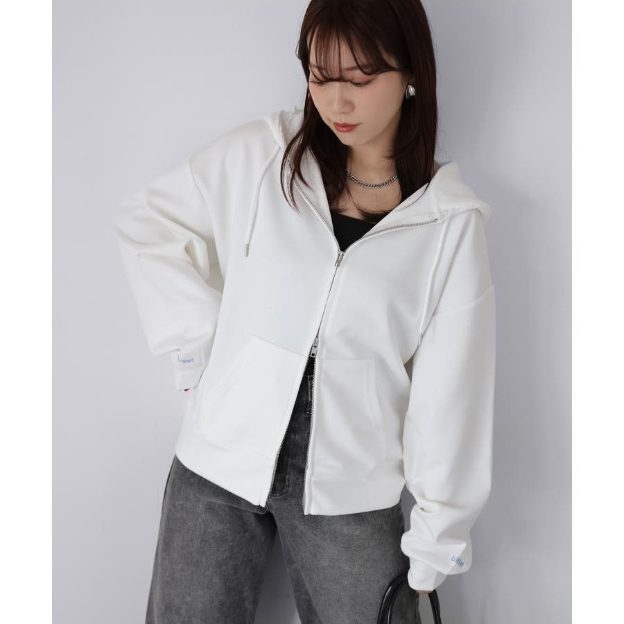 ベーシックなジップパーカーをベースに、今っぽさと遊び心をプラスした一枚です。