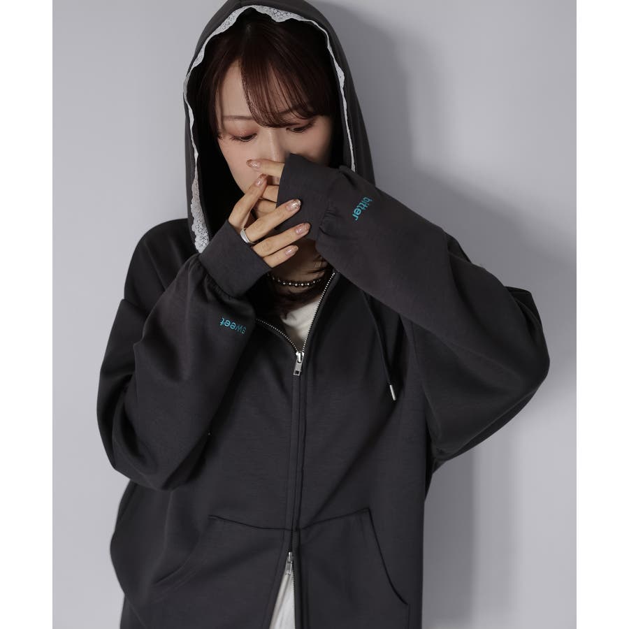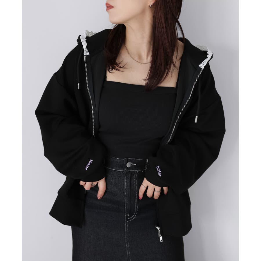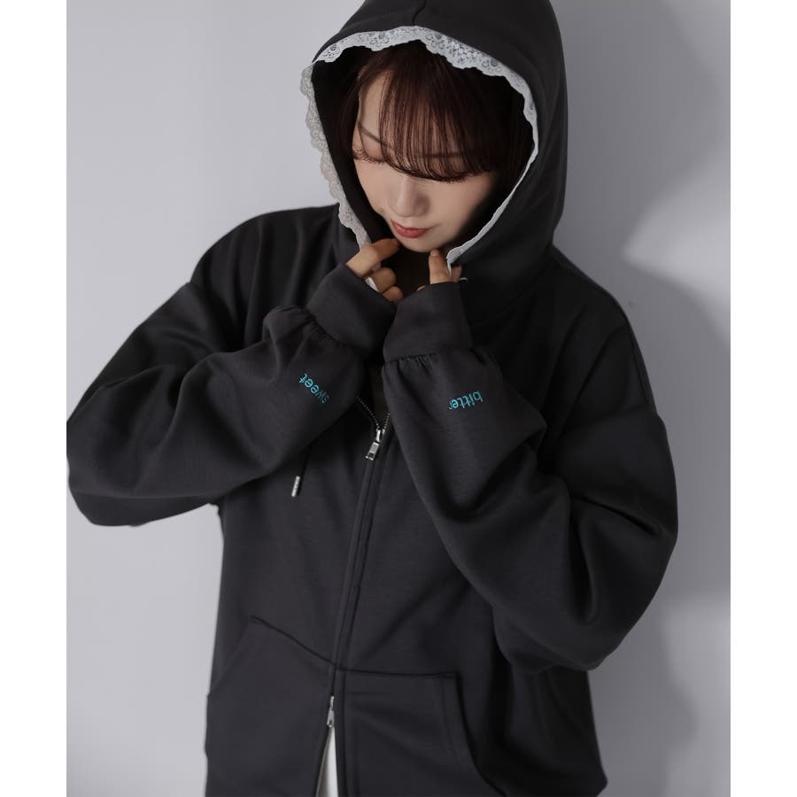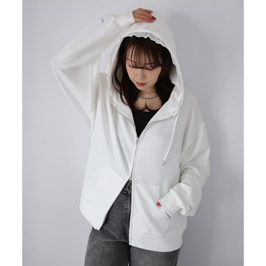 【Riberry 袖ロゴ刺繍レースダブルジップパーカー】