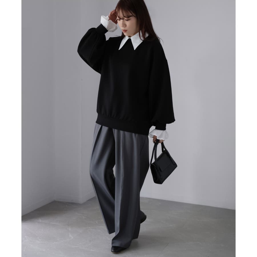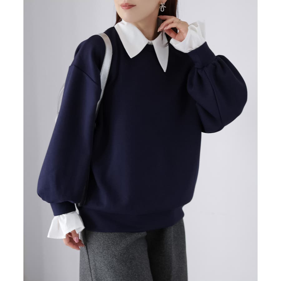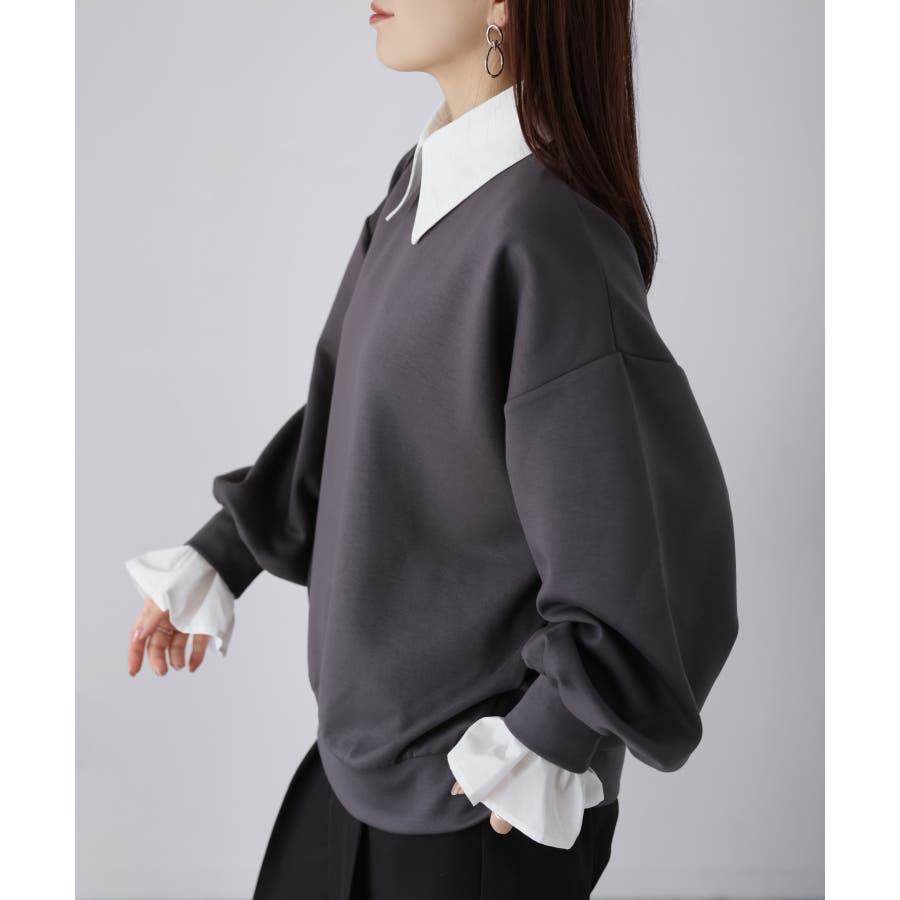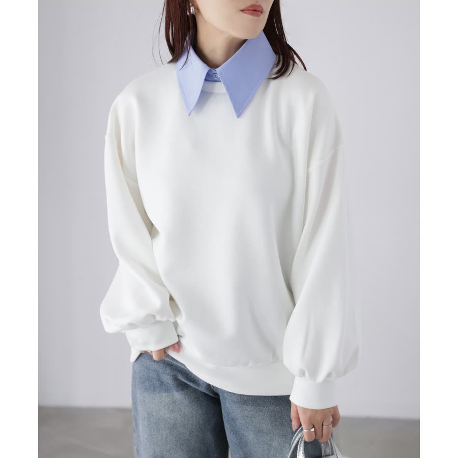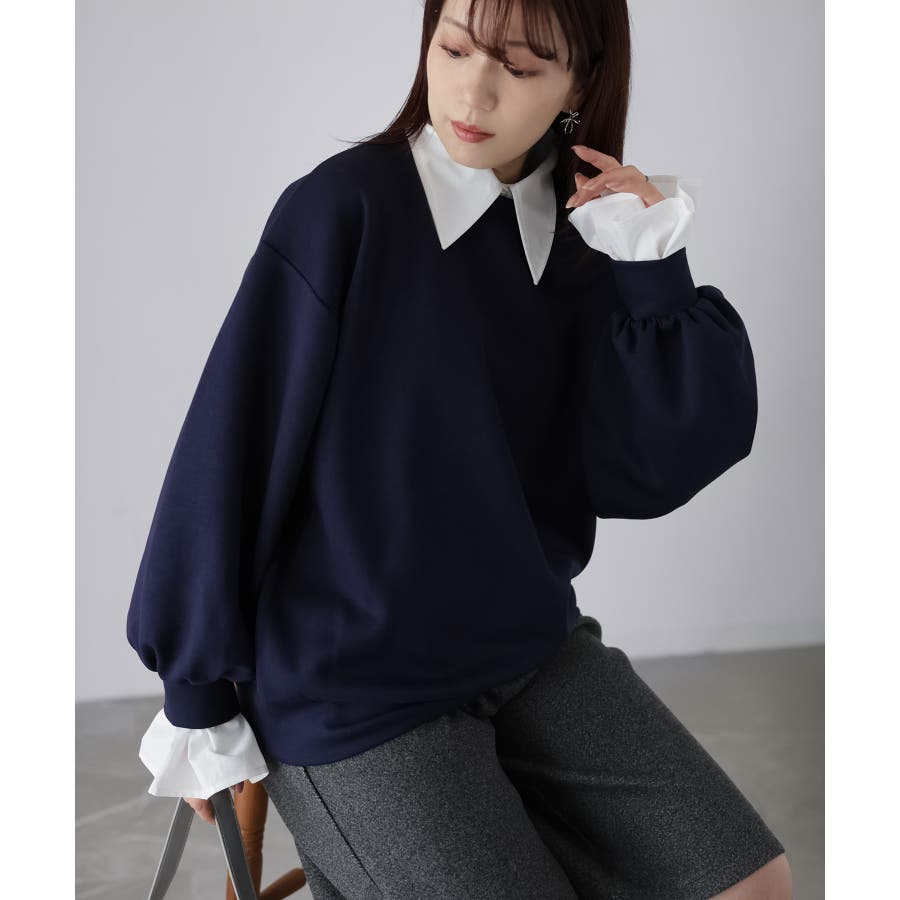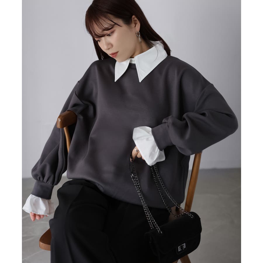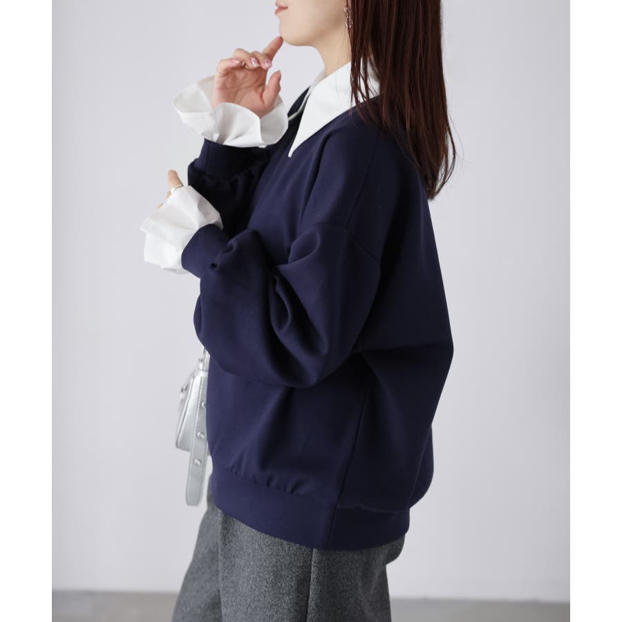 襟・袖付きで着ればブラウスライクな上品スタイルに、外せばシンプルで抜け感のあるスウェットとして着用でき、オンオフ問わず活躍します。