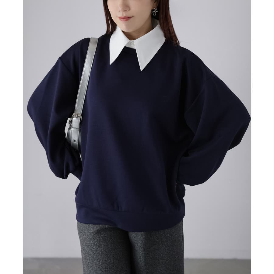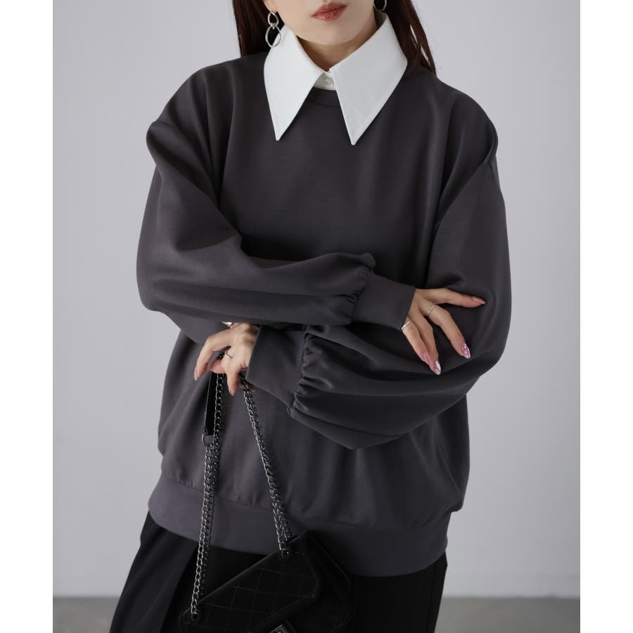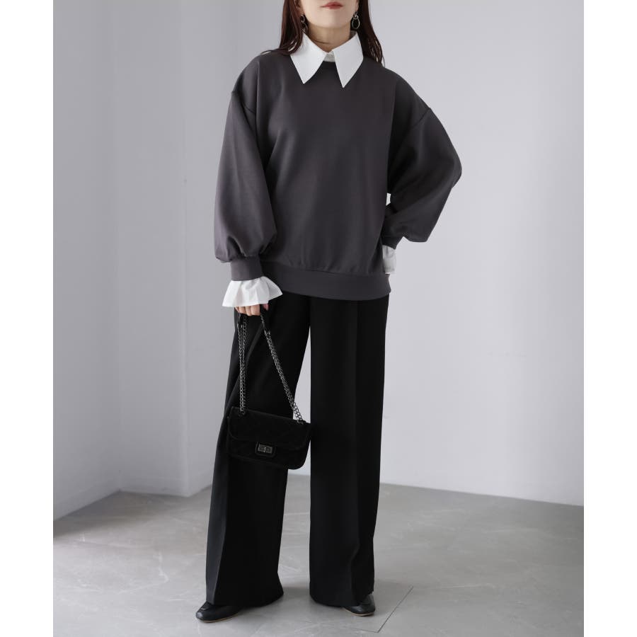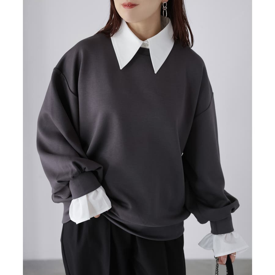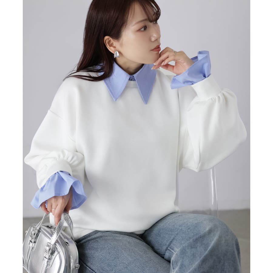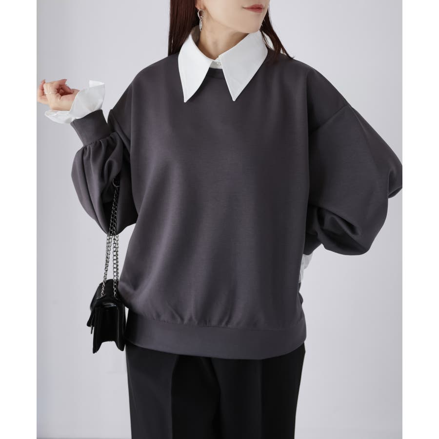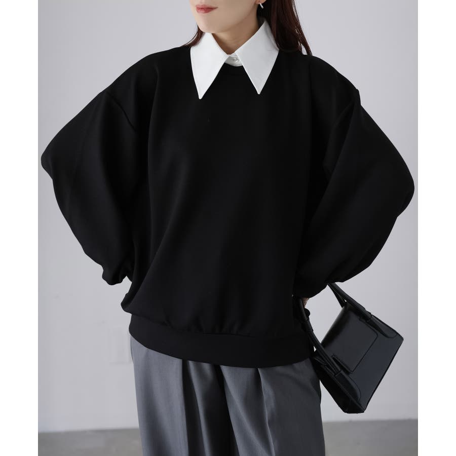 襟・袖付きで着ればブラウスライクな上品スタイルに、外せばシンプルで抜け感のあるスウェットとして着用でき、オンオフ問わず活躍します。
