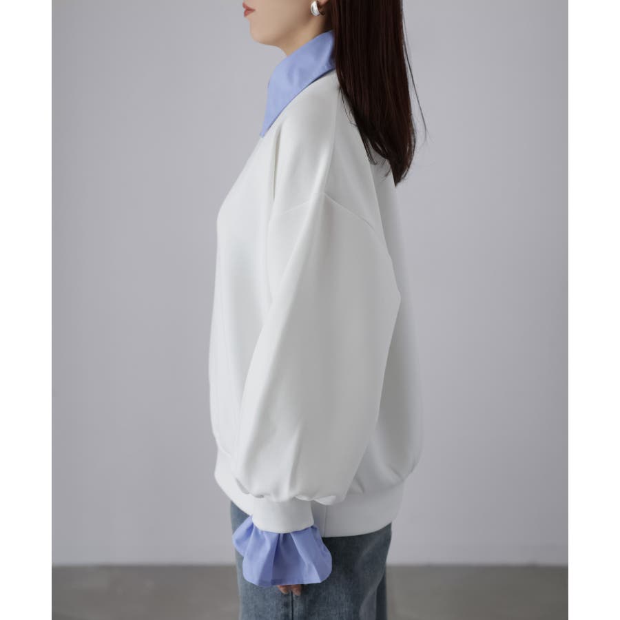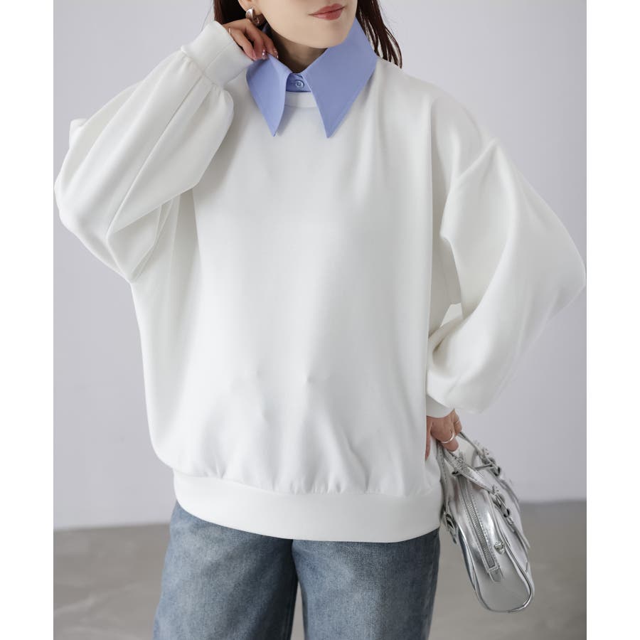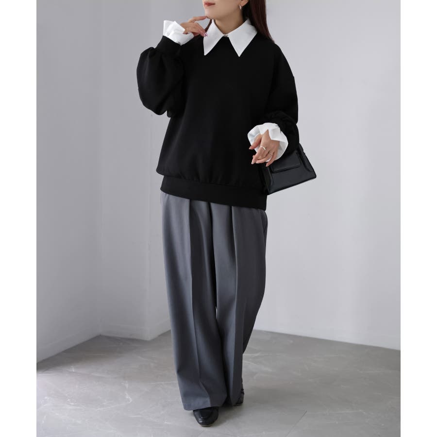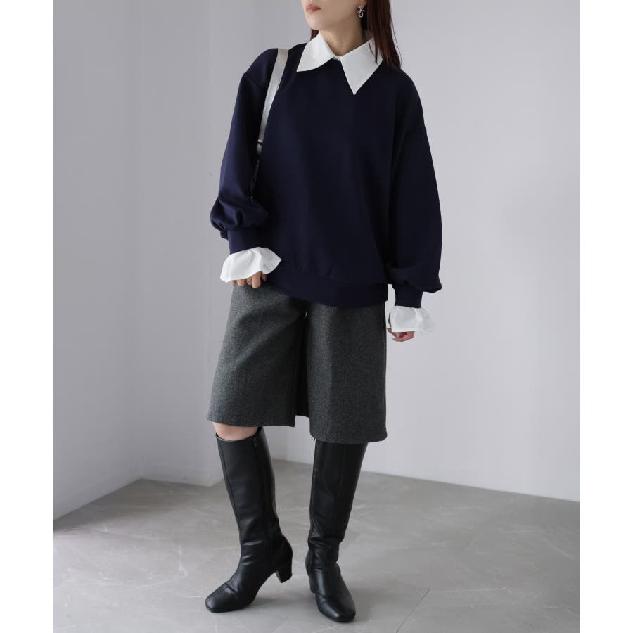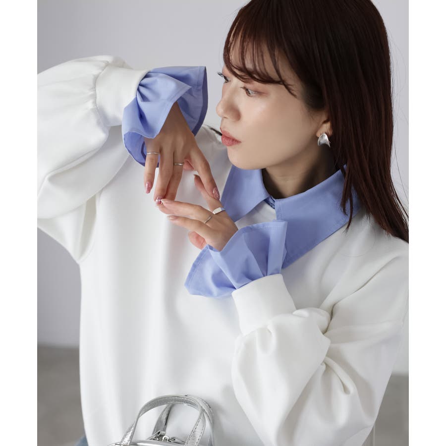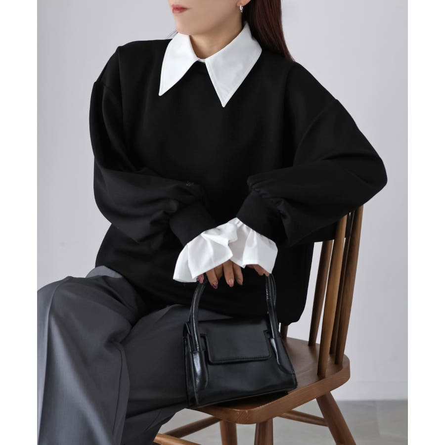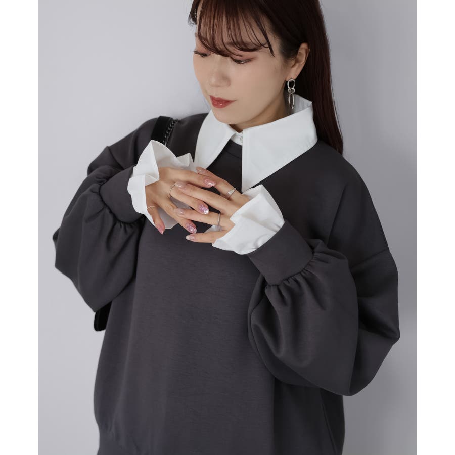 襟・袖付きで着ればブラウスライクな上品スタイルに、外せばシンプルで抜け感のあるスウェットとして着用でき、オンオフ問わず活躍します。