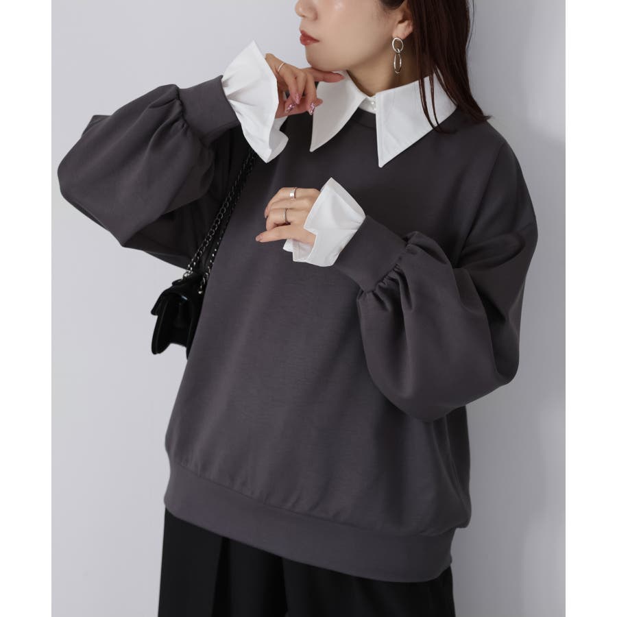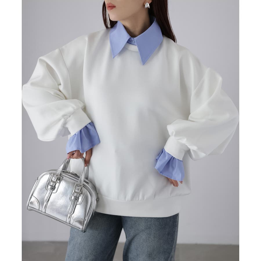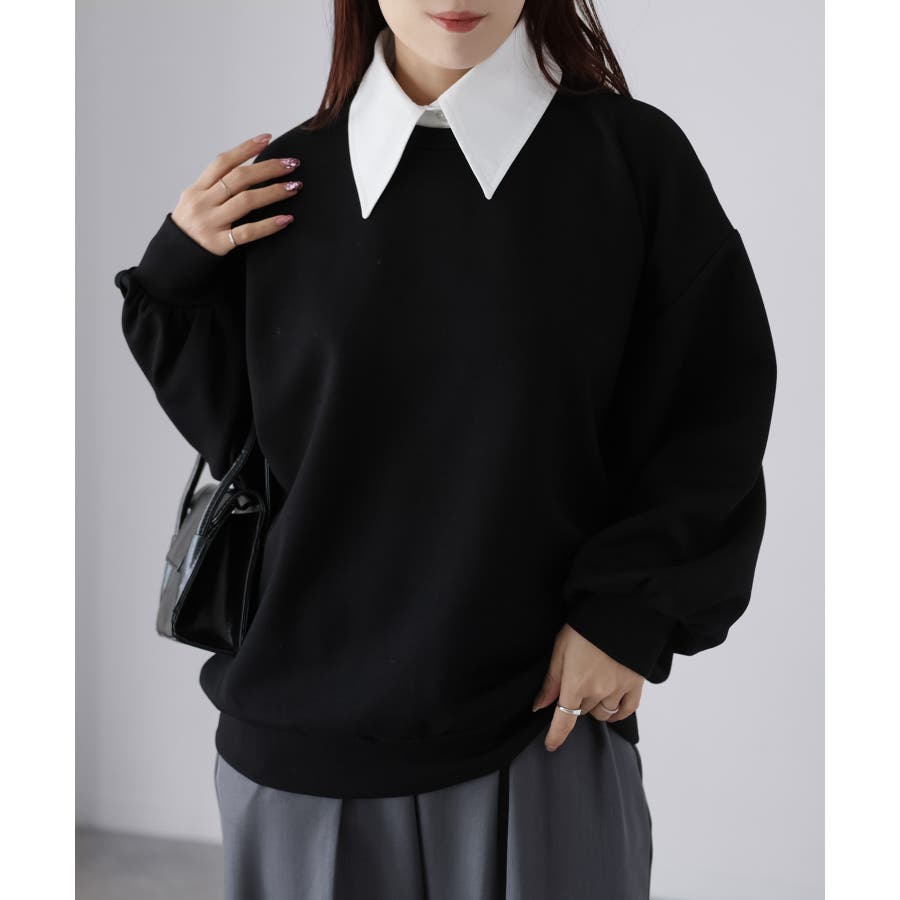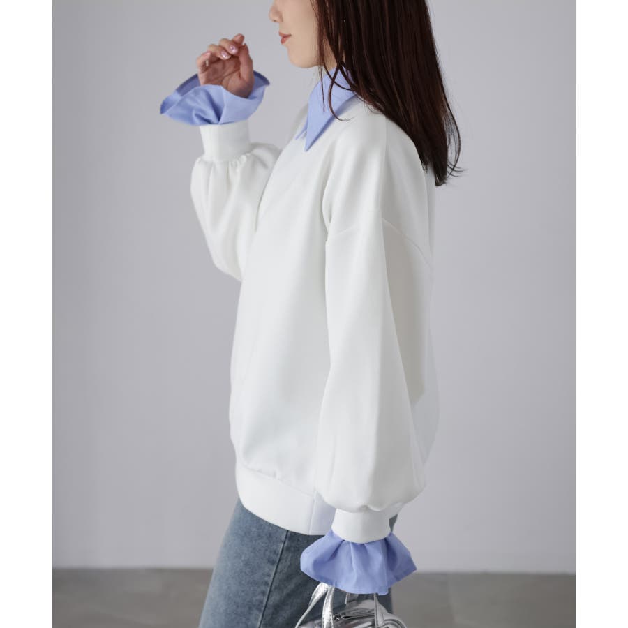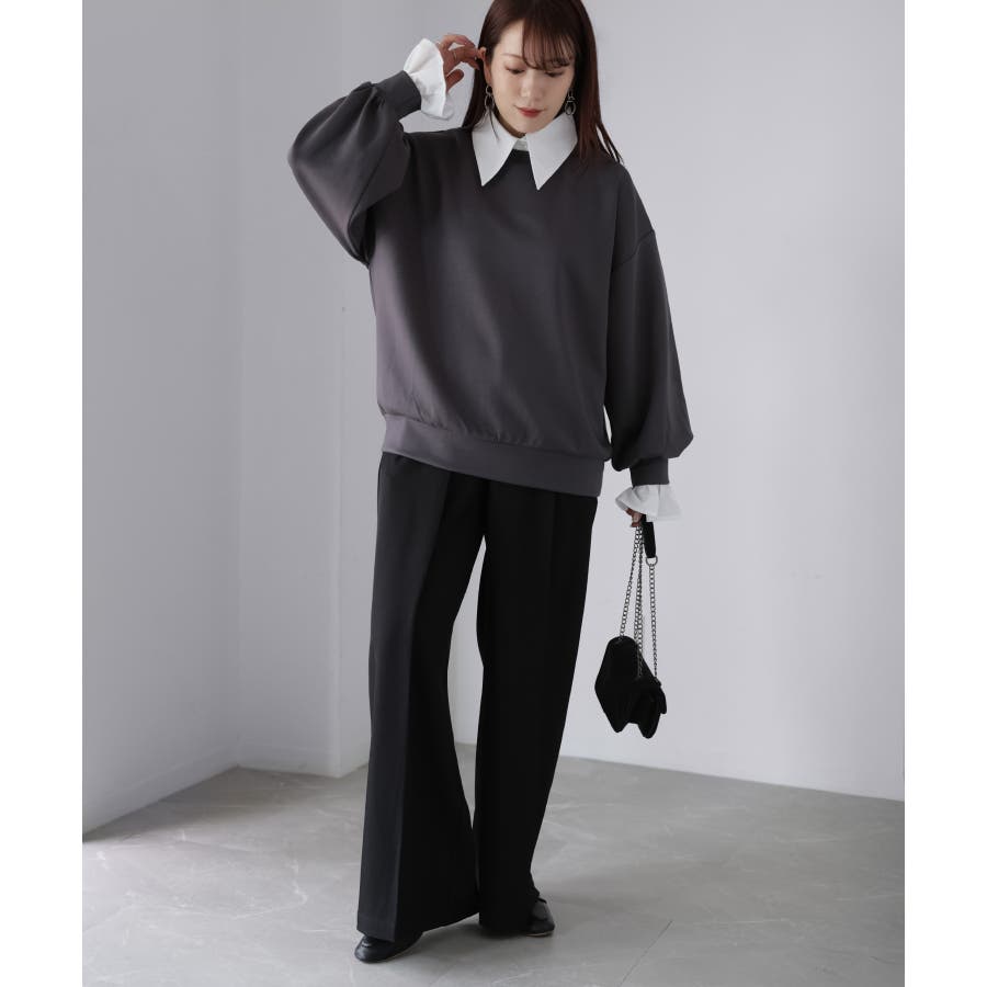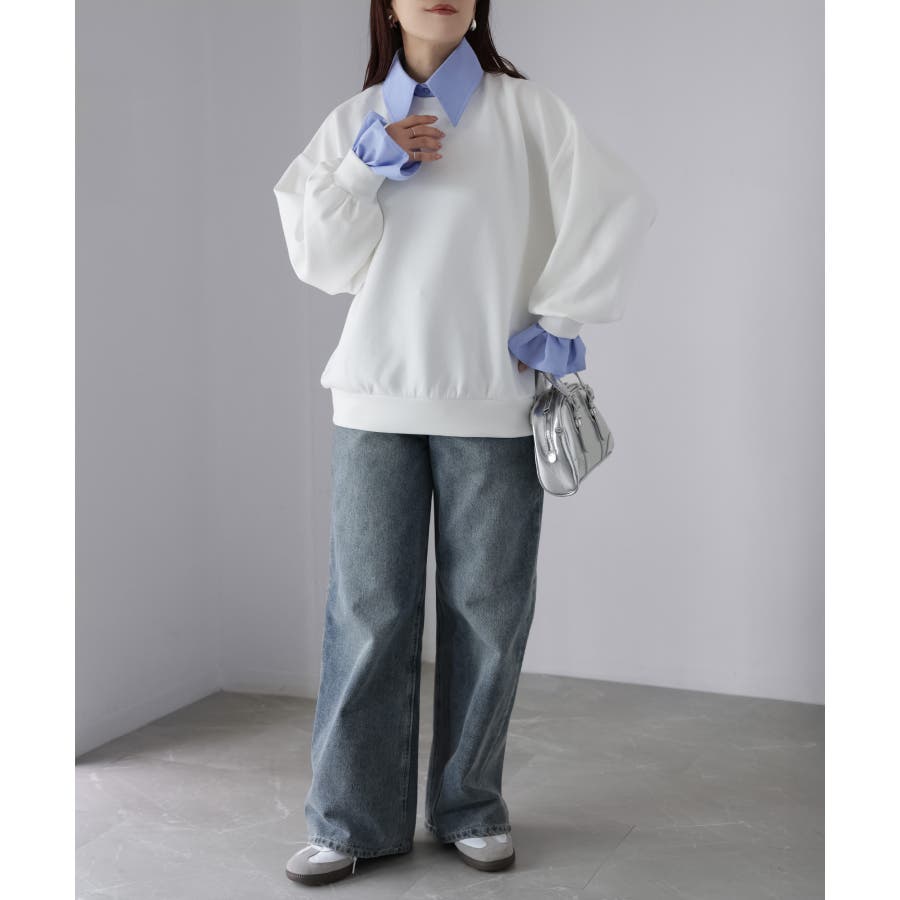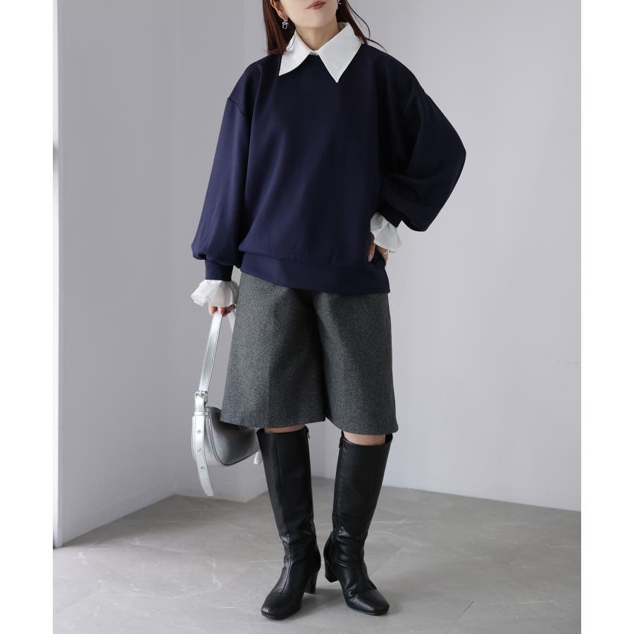 襟・袖付きで着ればブラウスライクな上品スタイルに、外せばシンプルで抜け感のあるスウェットとして着用でき、オンオフ問わず活躍します。