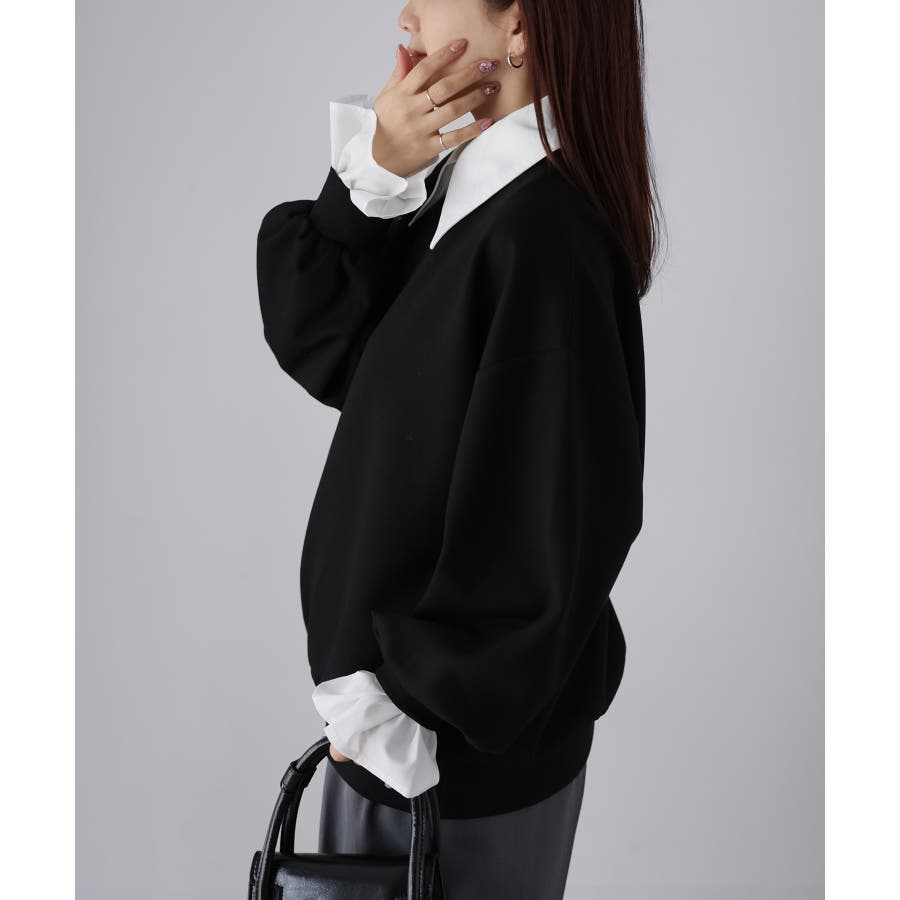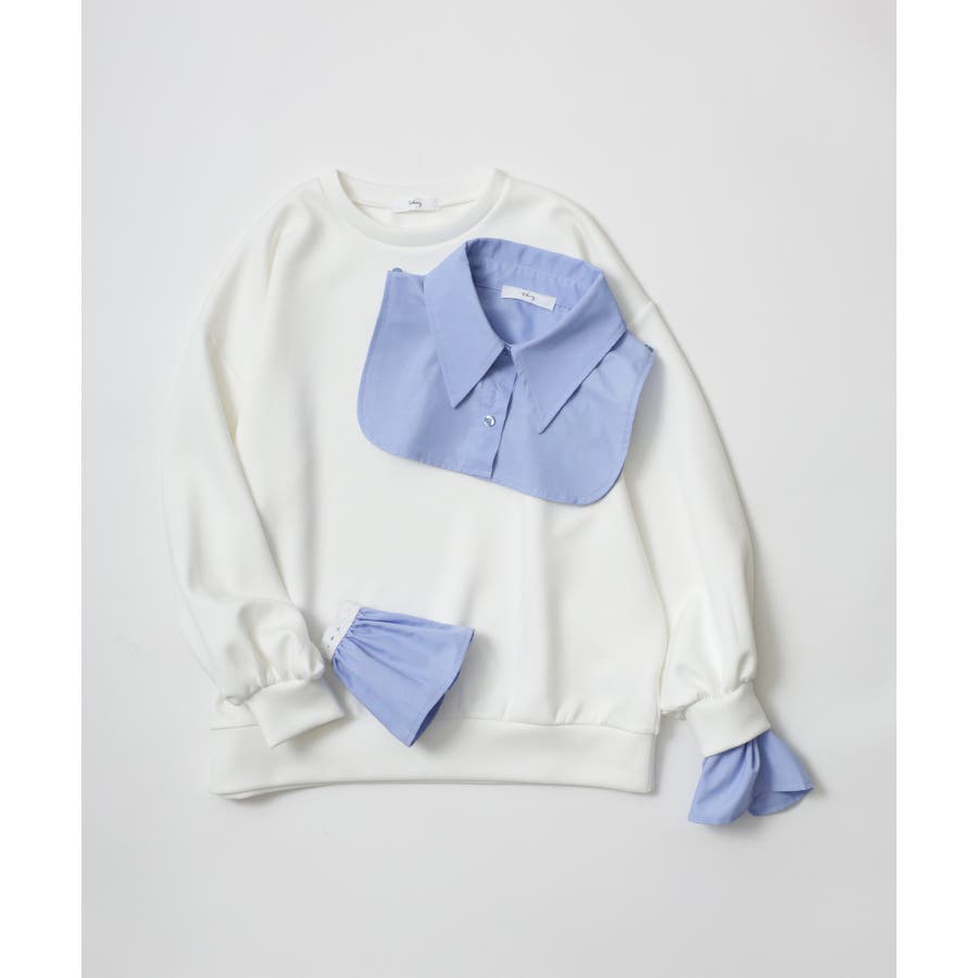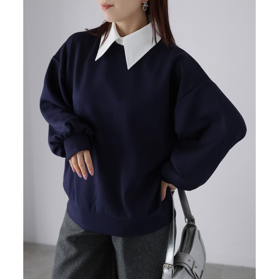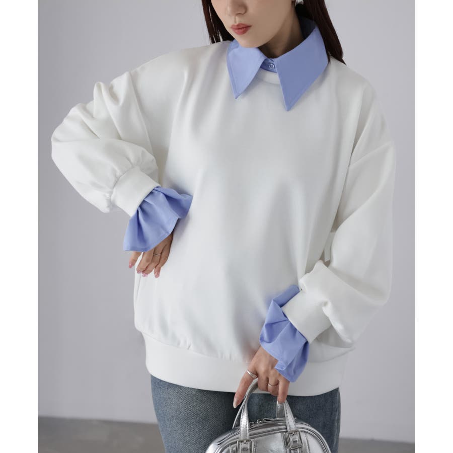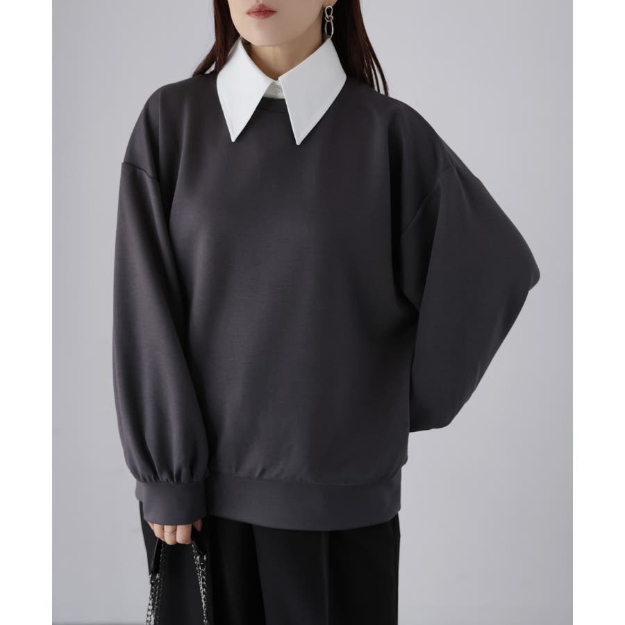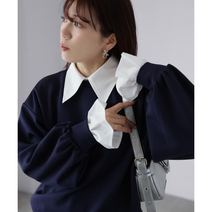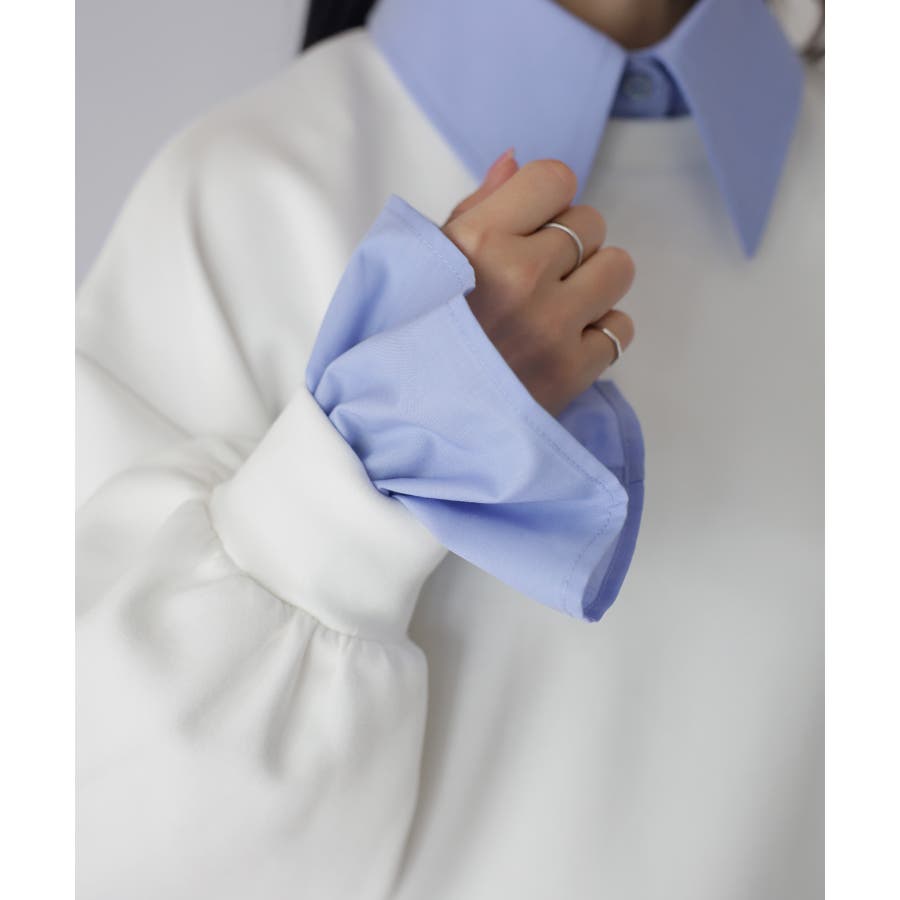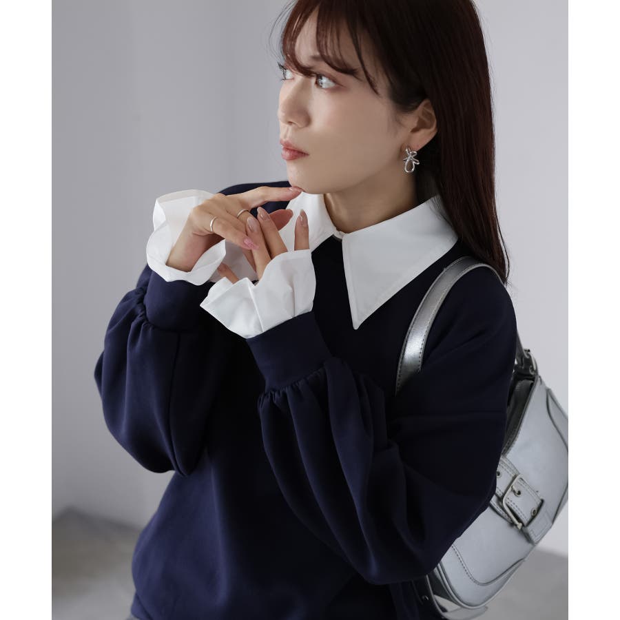 襟・袖付きで着ればブラウスライクな上品スタイルに、外せばシンプルで抜け感のあるスウェットとして着用でき、オンオフ問わず活躍します。