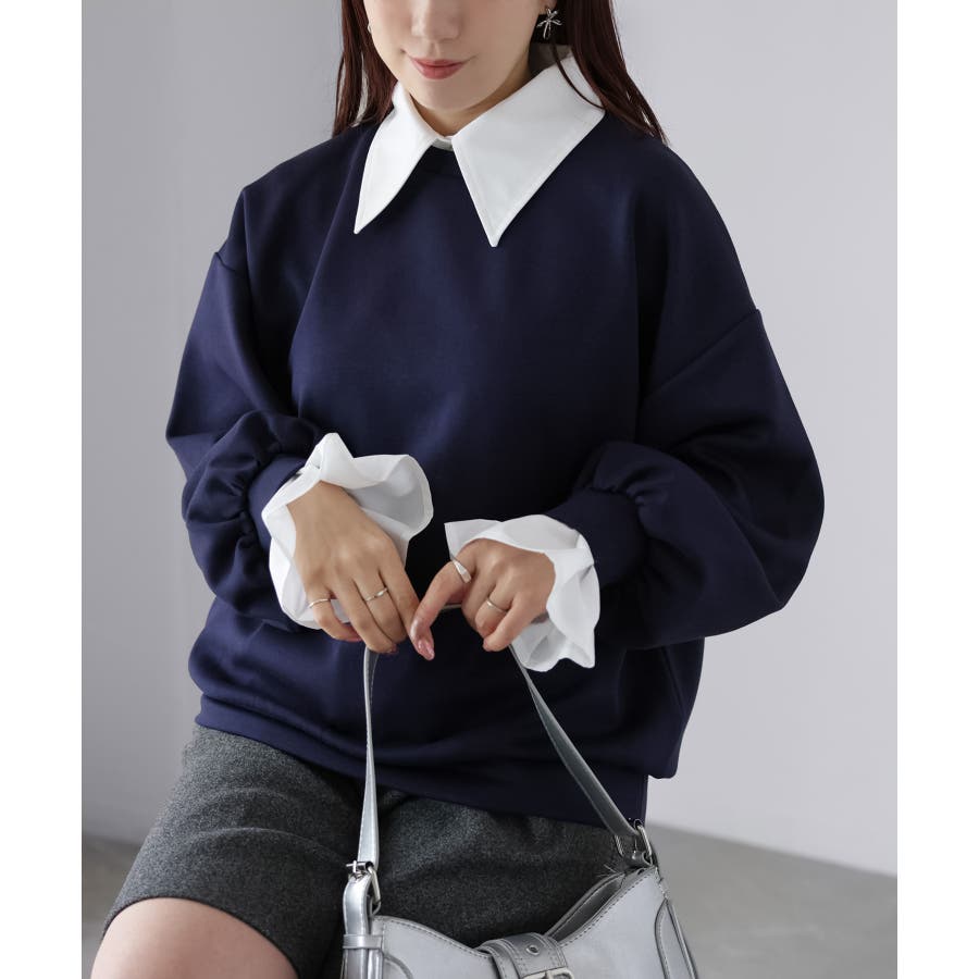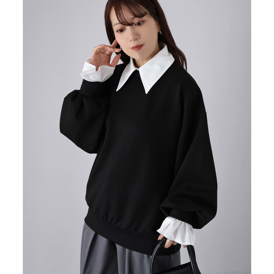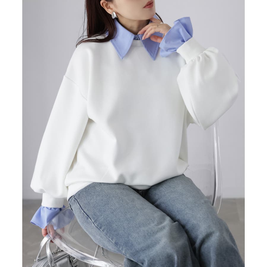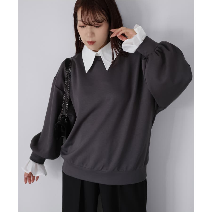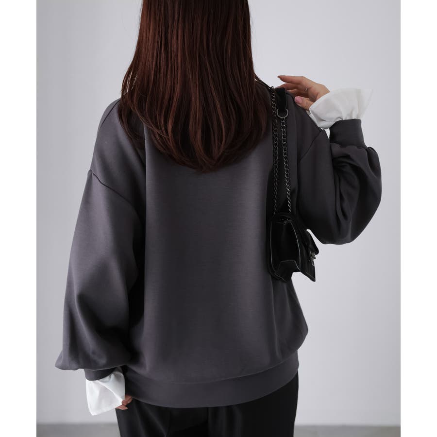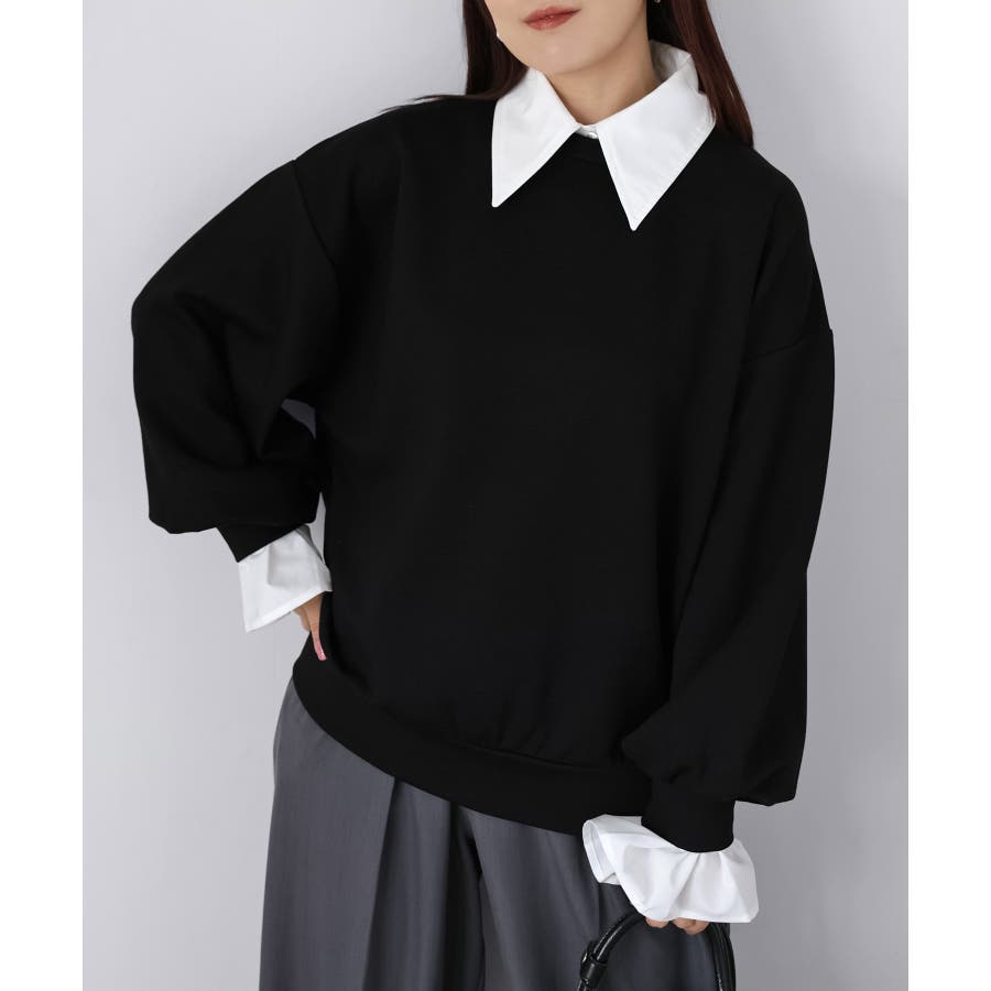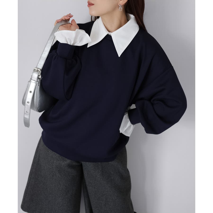 襟・袖付きで着ればブラウスライクな上品スタイルに、外せばシンプルで抜け感のあるスウェットとして着用でき、オンオフ問わず活躍します。