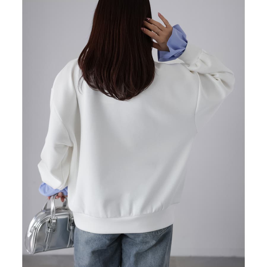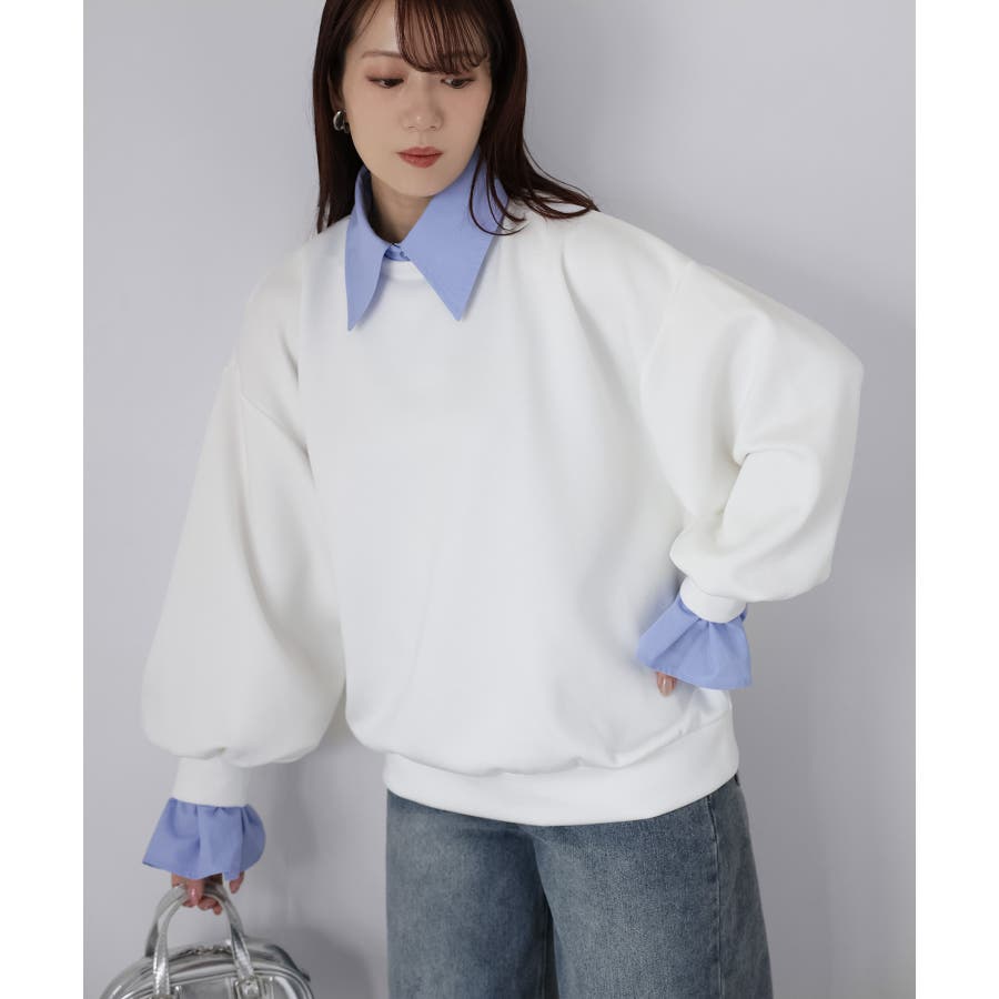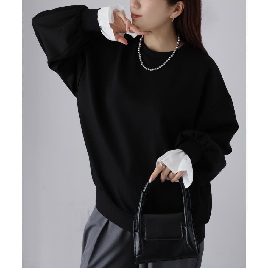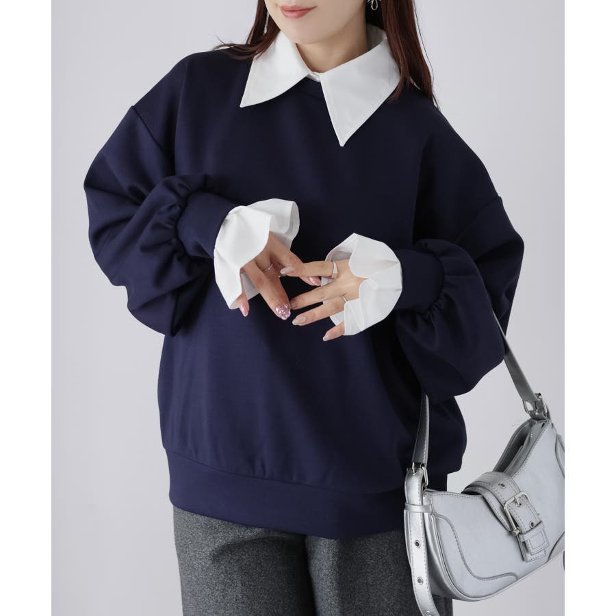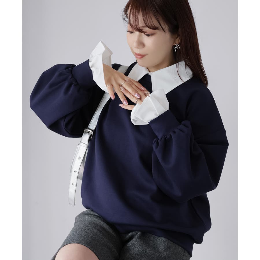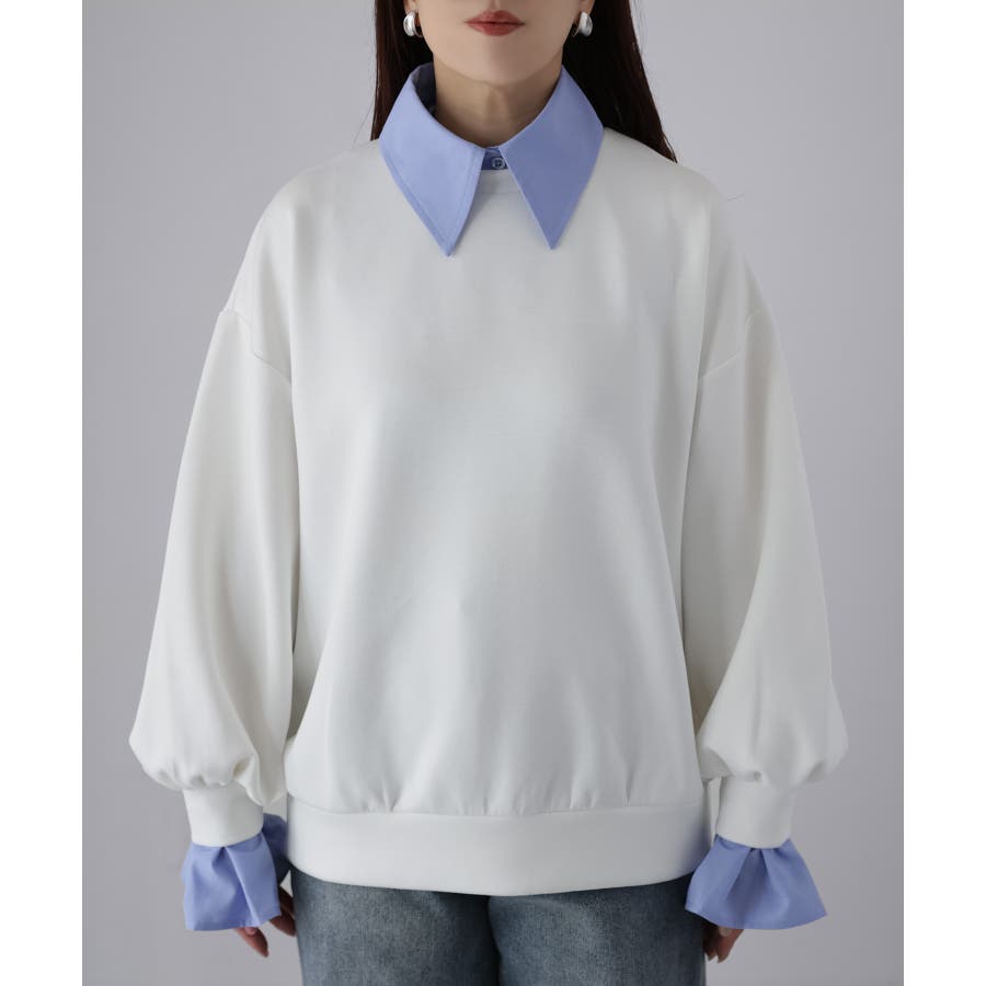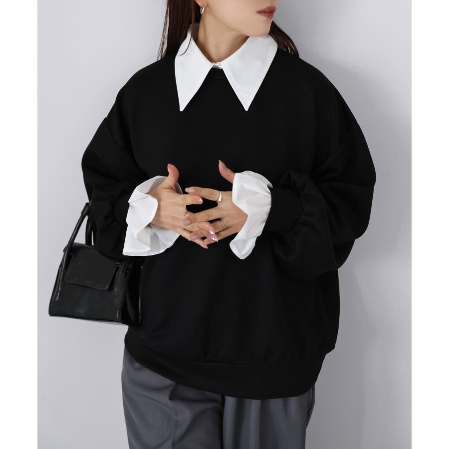 襟・袖付きで着ればブラウスライクな上品スタイルに、外せばシンプルで抜け感のあるスウェットとして着用でき、オンオフ問わず活躍します。