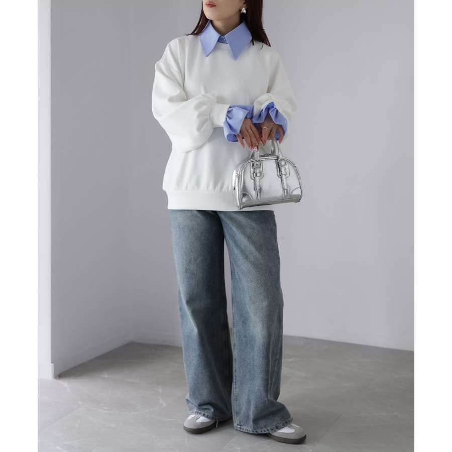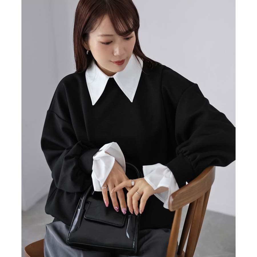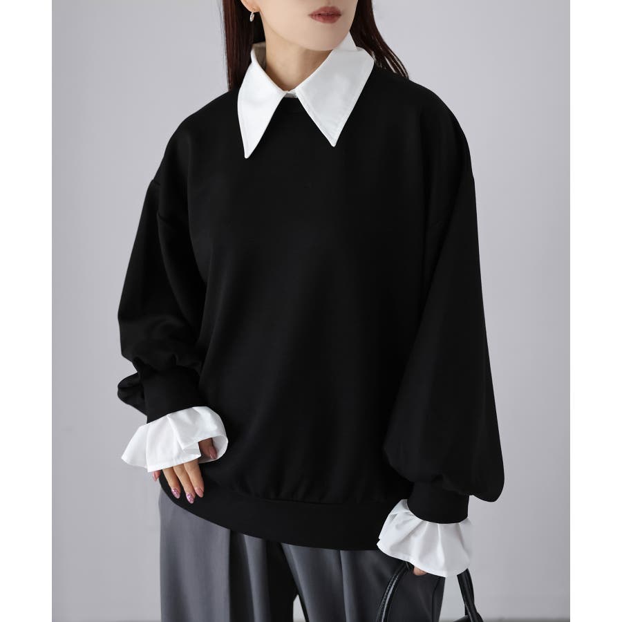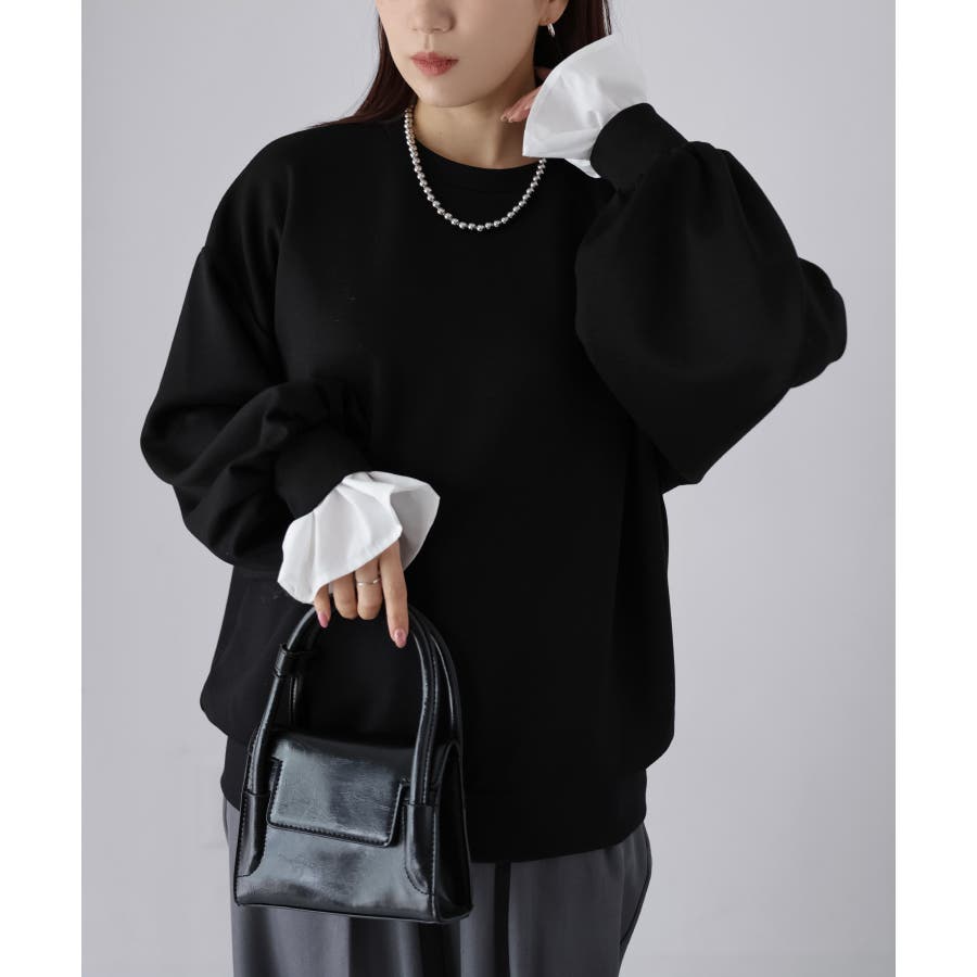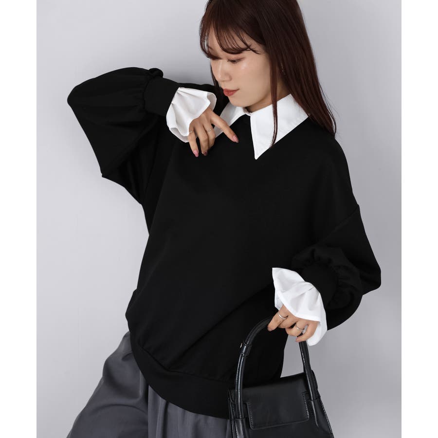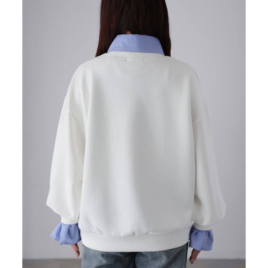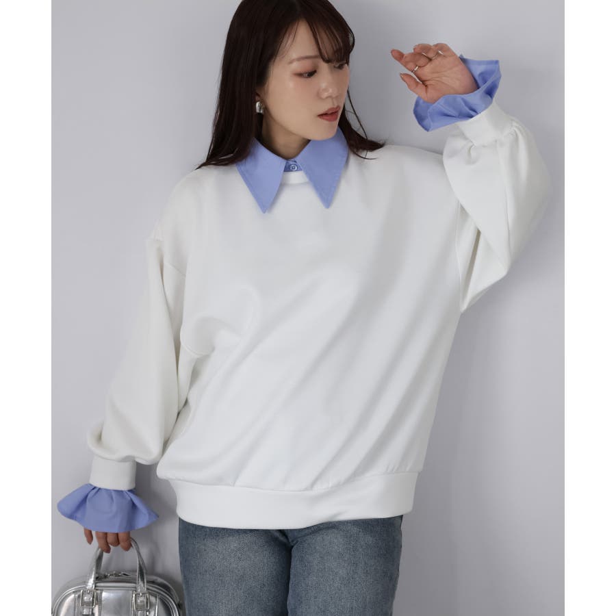 襟・袖付きで着ればブラウスライクな上品スタイルに、外せばシンプルで抜け感のあるスウェットとして着用でき、オンオフ問わず活躍します。