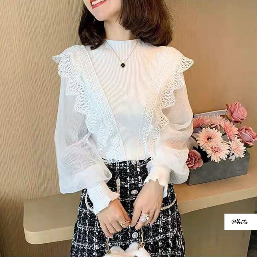 袖シースルーフリルトップス