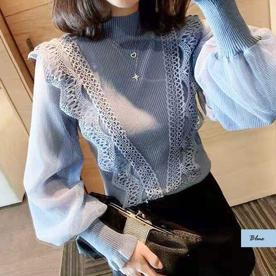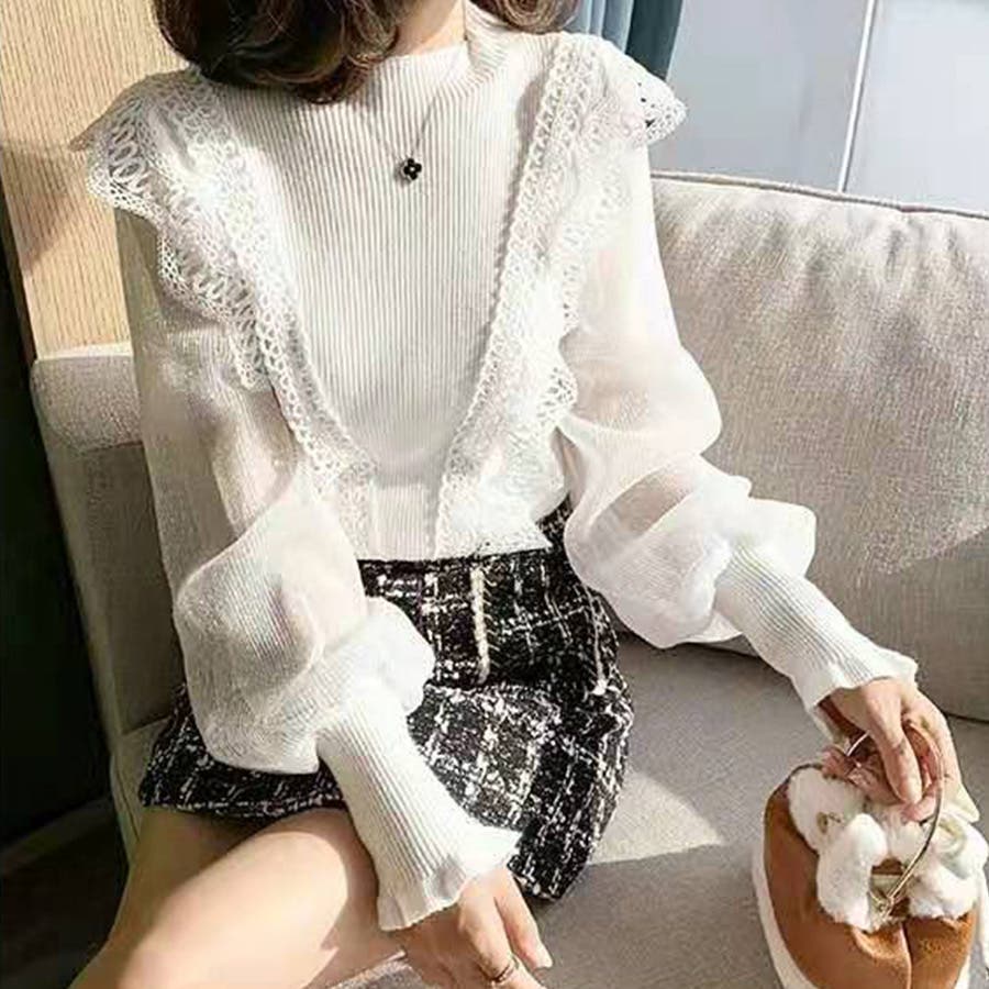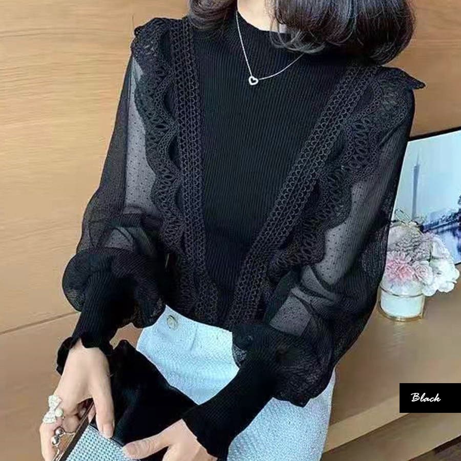 袖シースルーフリルトップス シアー ブラウス