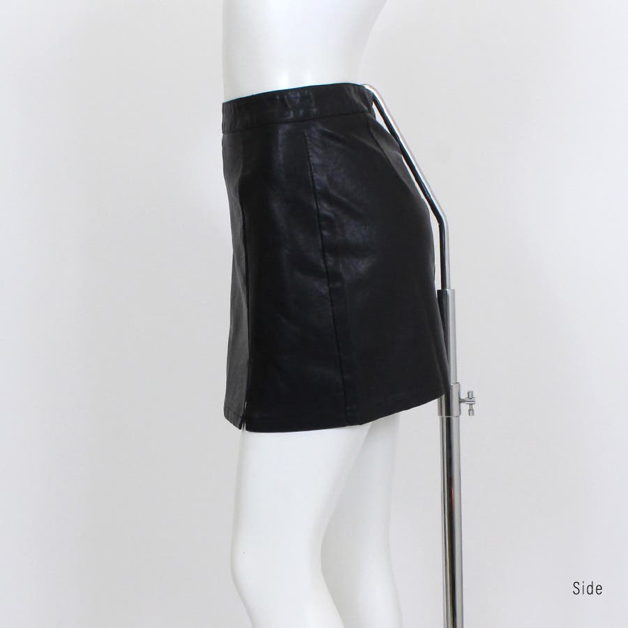 やわらかく滑らかなフェイクレザーを使用したクールな1枚!サイドのスリットがアクセントに。裏地はパンツ仕様でミニ丈でも安心の履き心地です。どんなトップスにも好相性でコーデにクールさをプラスできる、大活躍間違いなしのアイテムです。3サイズ展開なのも嬉しいポイント!