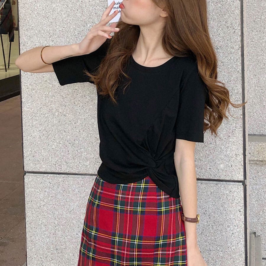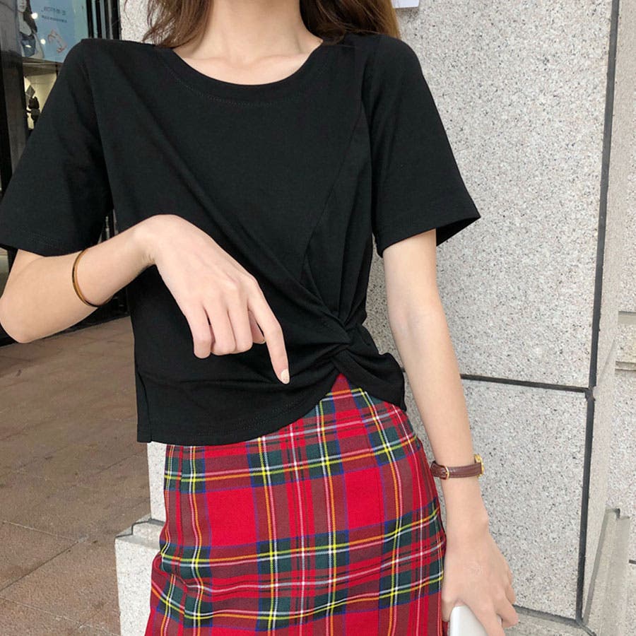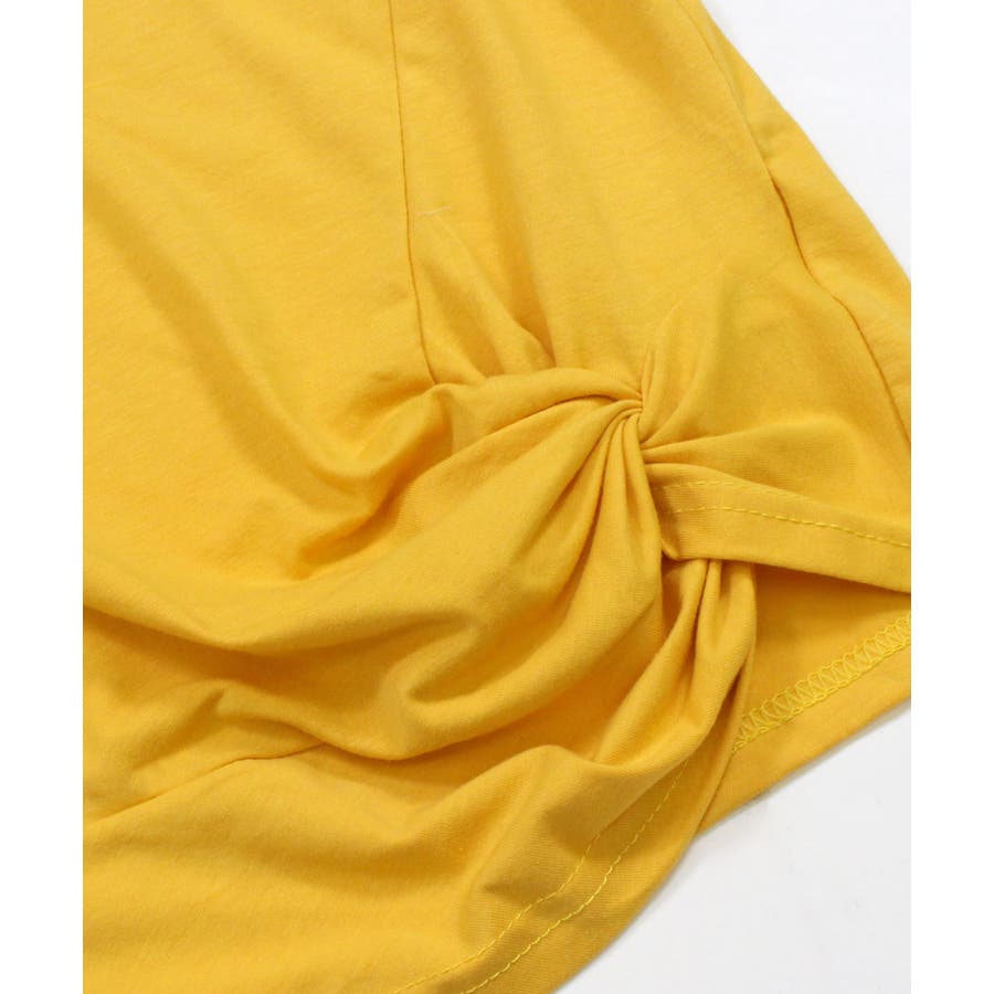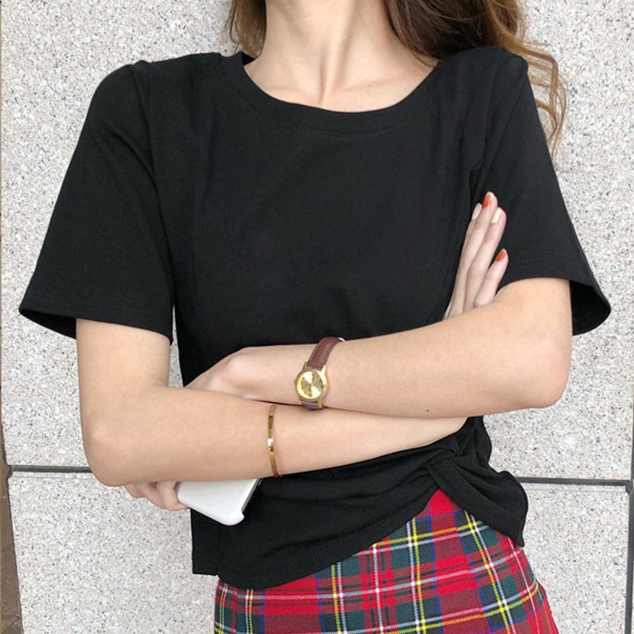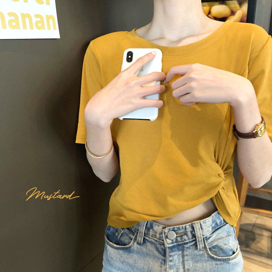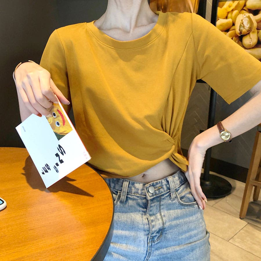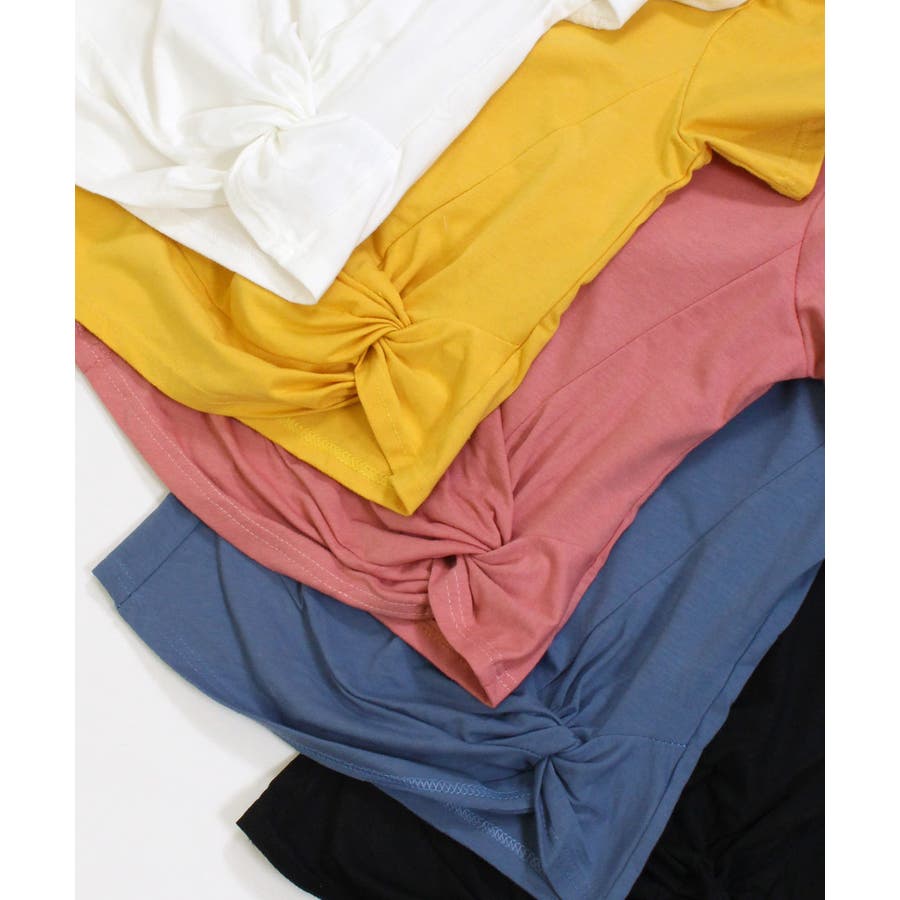くしゅっとリボンのようにねじった裾のデザインがポイント。程よくからだにフィットして女性らしいシルエットに。コーデのバランスもとりやすいショート丈で、どんなボトムとも好相性です。