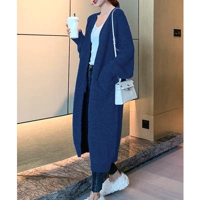 インナーを選ばない深めのVネックで着まわしやすいデザイン。ボタンなどがない着流しのデザインで、ゆったりとストレスフリーな着心地。伸縮性もあり、ふっくらやわらかい暖かみのあるアクリル生地です。