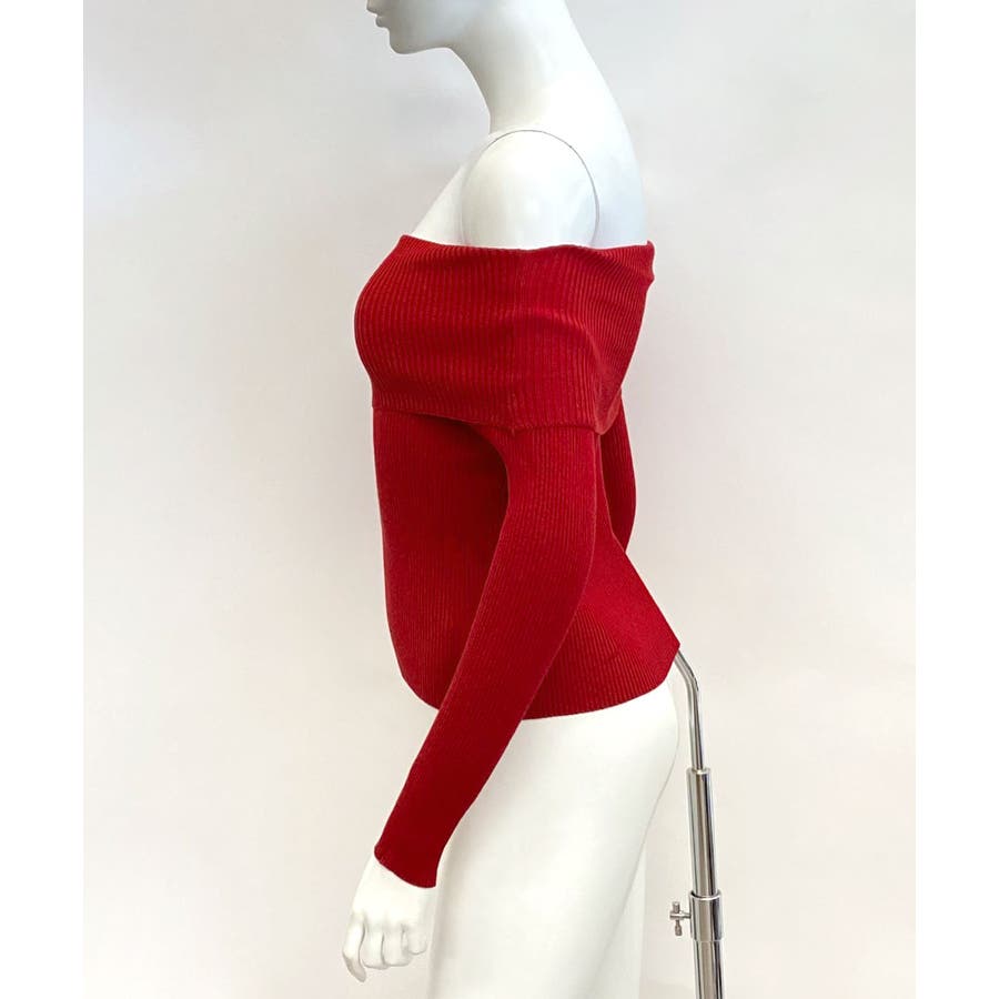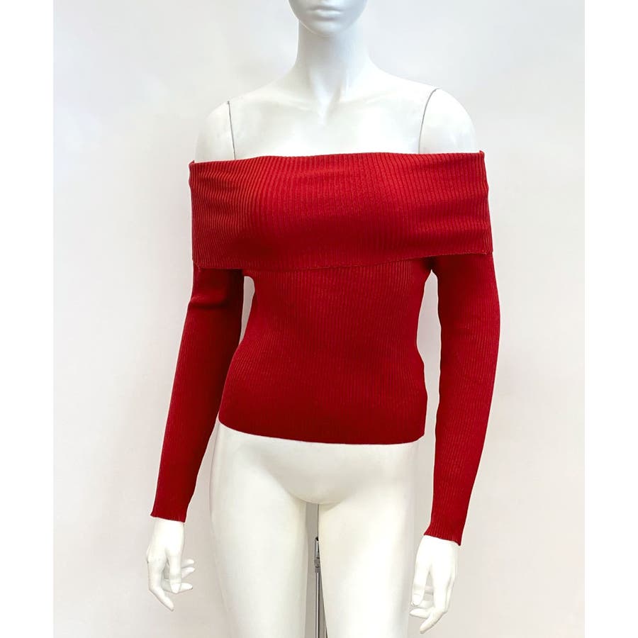 オフショルリブニット