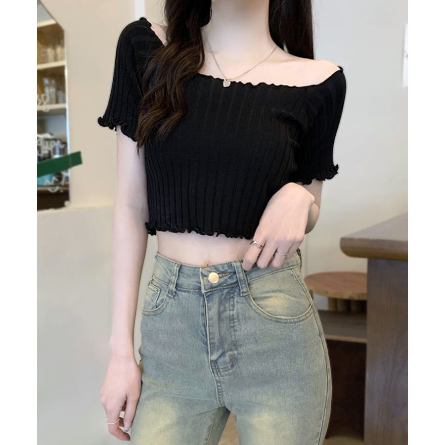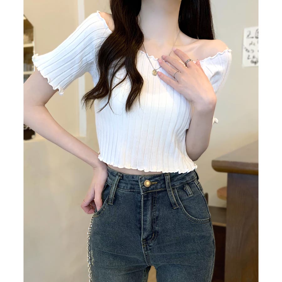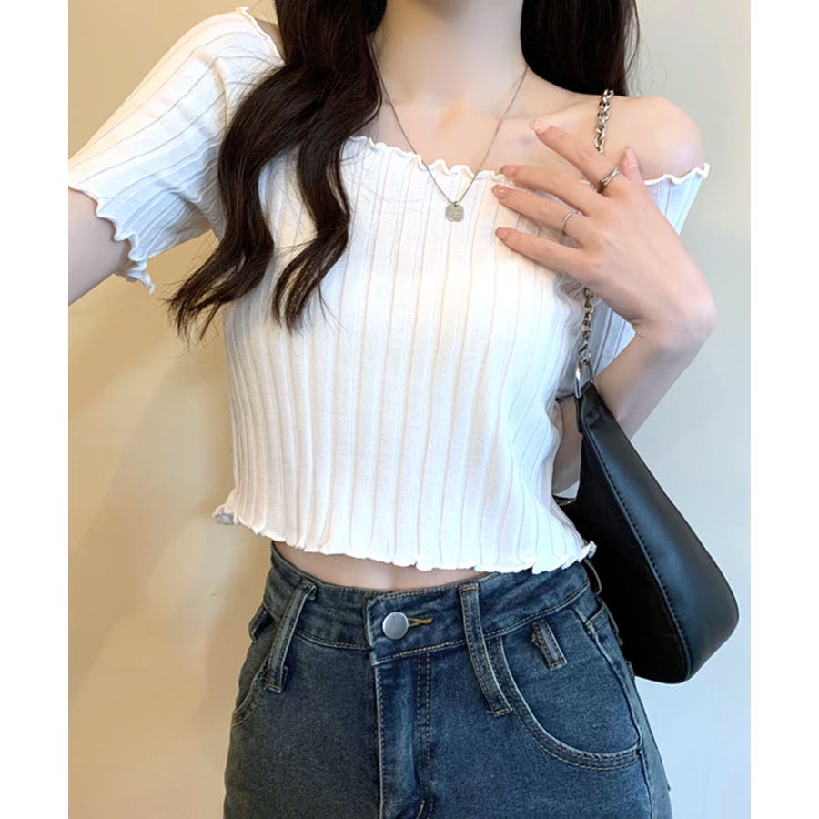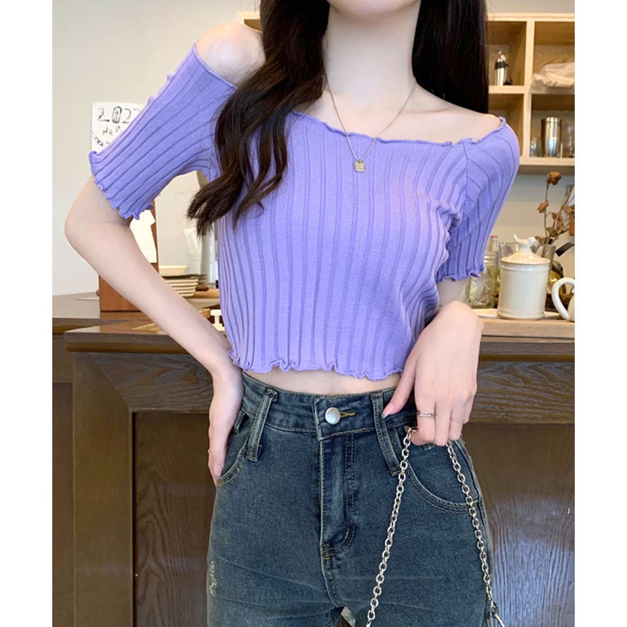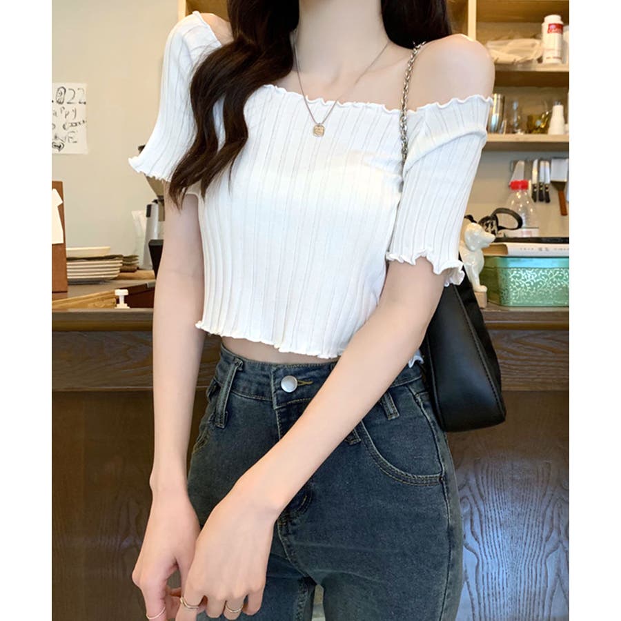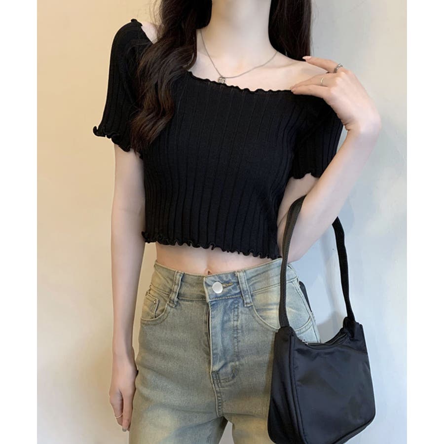 控えめなフリルなので、普通のフリルよりも取り入れやすくおすすめです◎伸縮性の良いリブ素材なのでオフショルとしても着用できます。からだにほどよくフィットするやわらか素材でストレスフリーな着心地。ボリュームのあるボトムでメリハリをつけるスタイリングがおすすめです。
