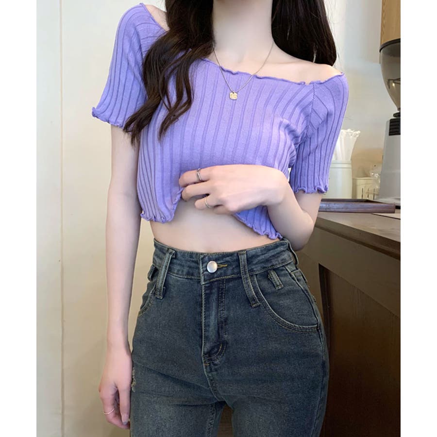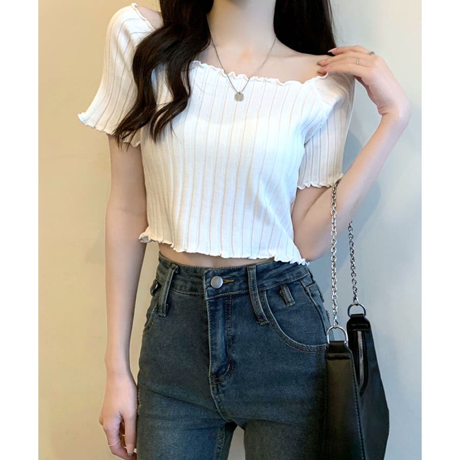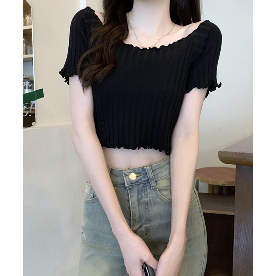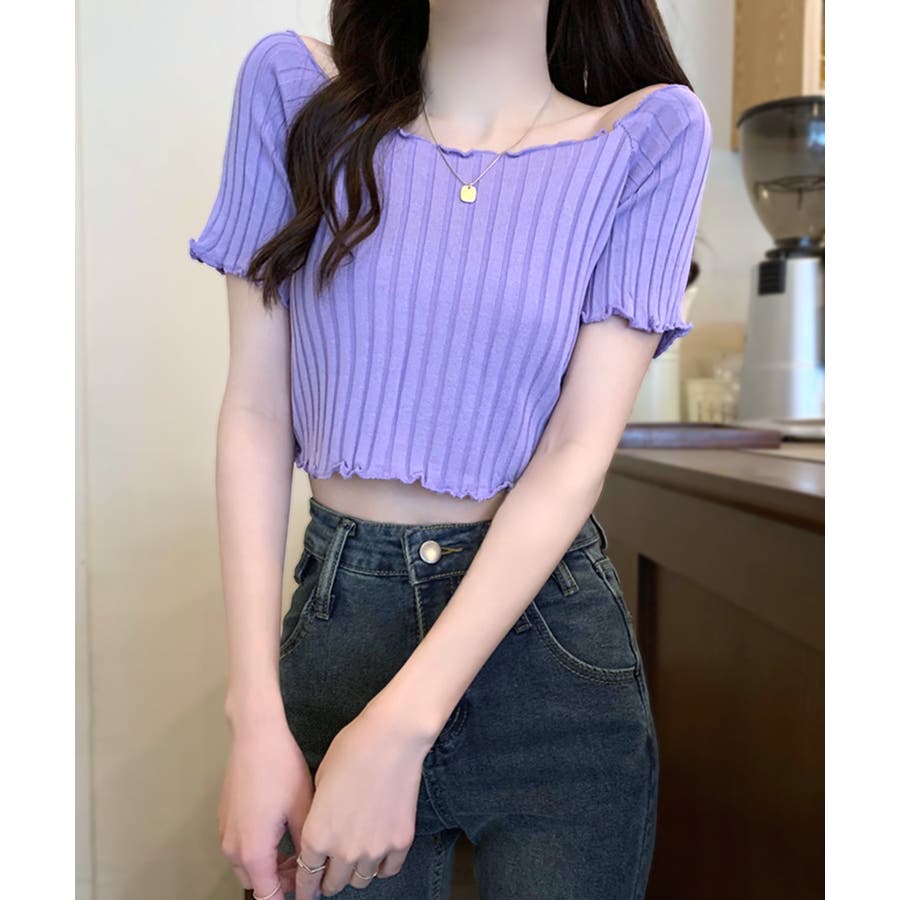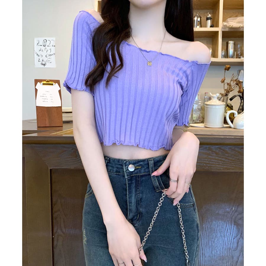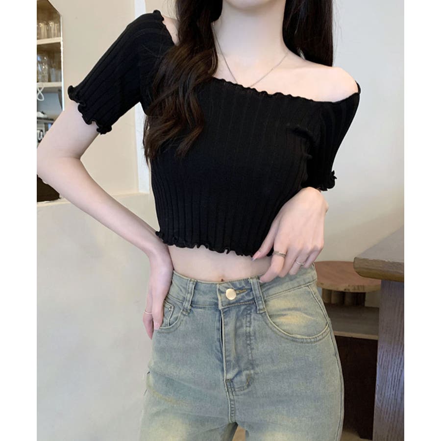 控えめなフリルなので、普通のフリルよりも取り入れやすくおすすめです◎伸縮性の良いリブ素材なのでオフショルとしても着用できます。からだにほどよくフィットするやわらか素材でストレスフリーな着心地。ボリュームのあるボトムでメリハリをつけるスタイリングがおすすめです。
