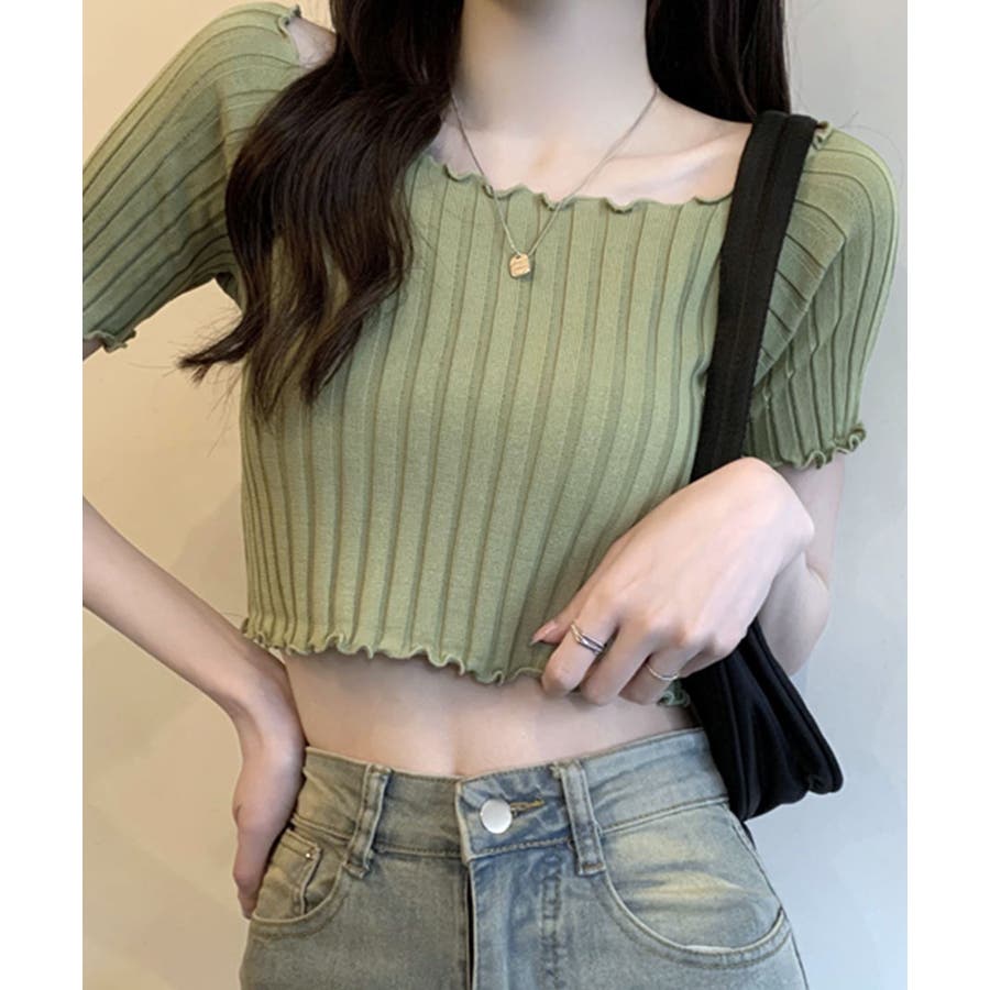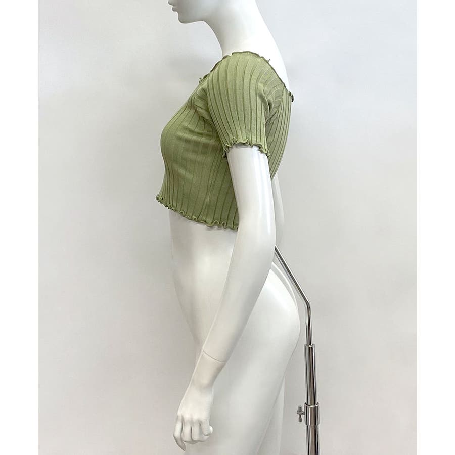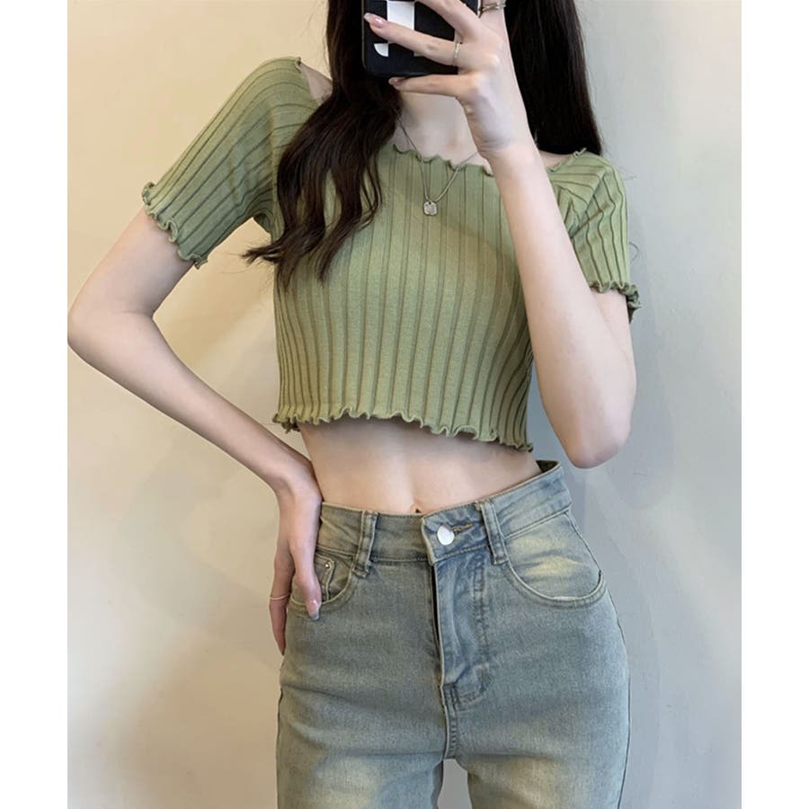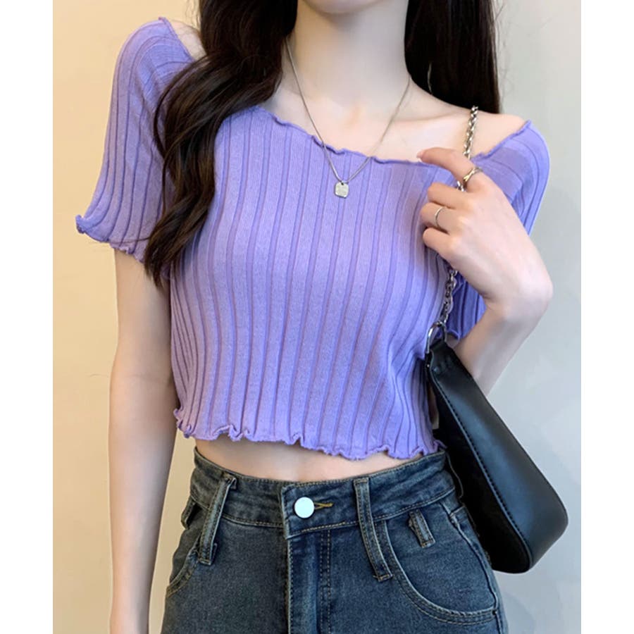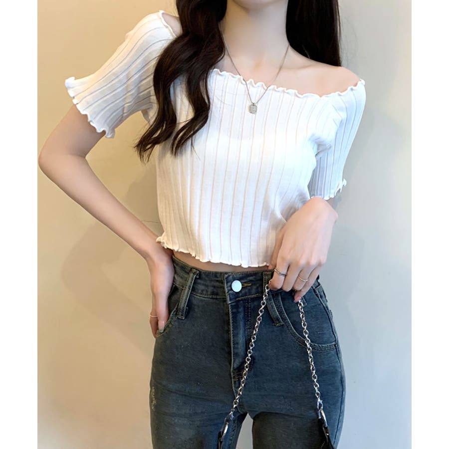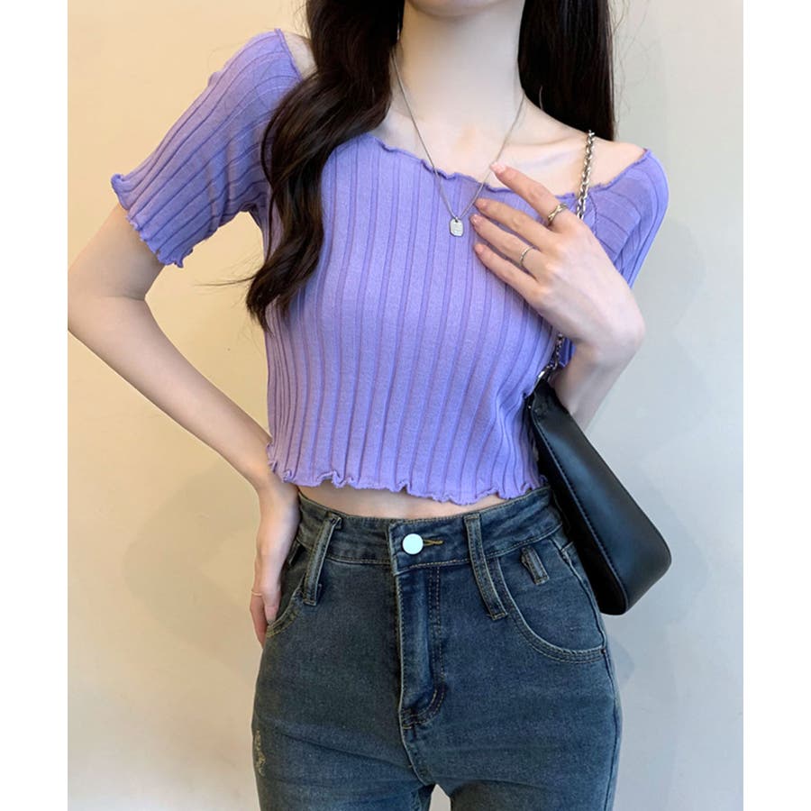 控えめなフリルなので、普通のフリルよりも取り入れやすくおすすめです◎伸縮性の良いリブ素材なのでオフショルとしても着用できます。からだにほどよくフィットするやわらか素材でストレスフリーな着心地。ボリュームのあるボトムでメリハリをつけるスタイリングがおすすめです。