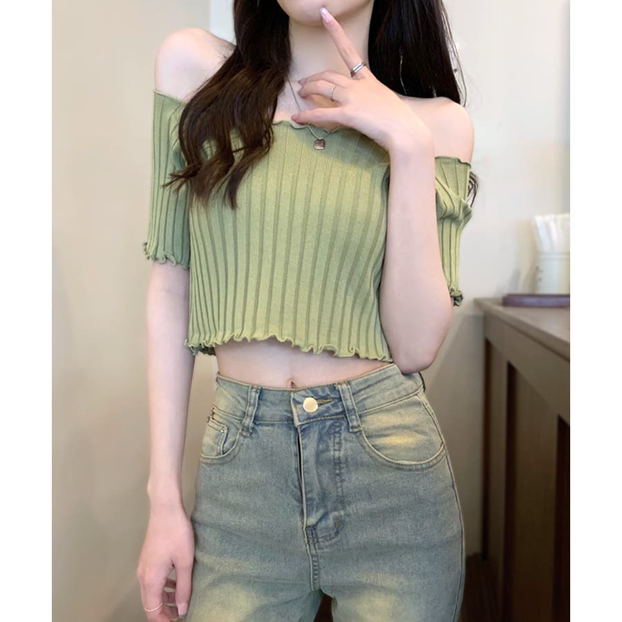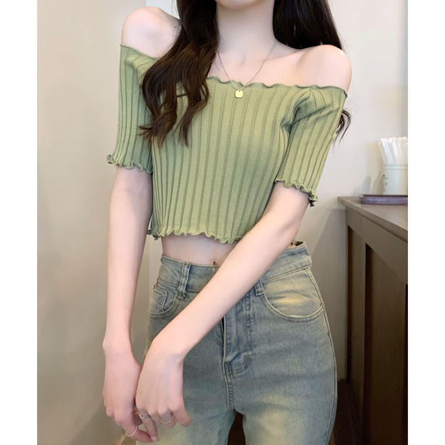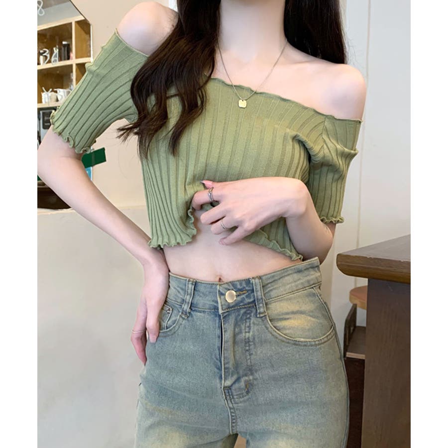 オフショルにもなる2WAYデザイン リブトップス メロウフリル